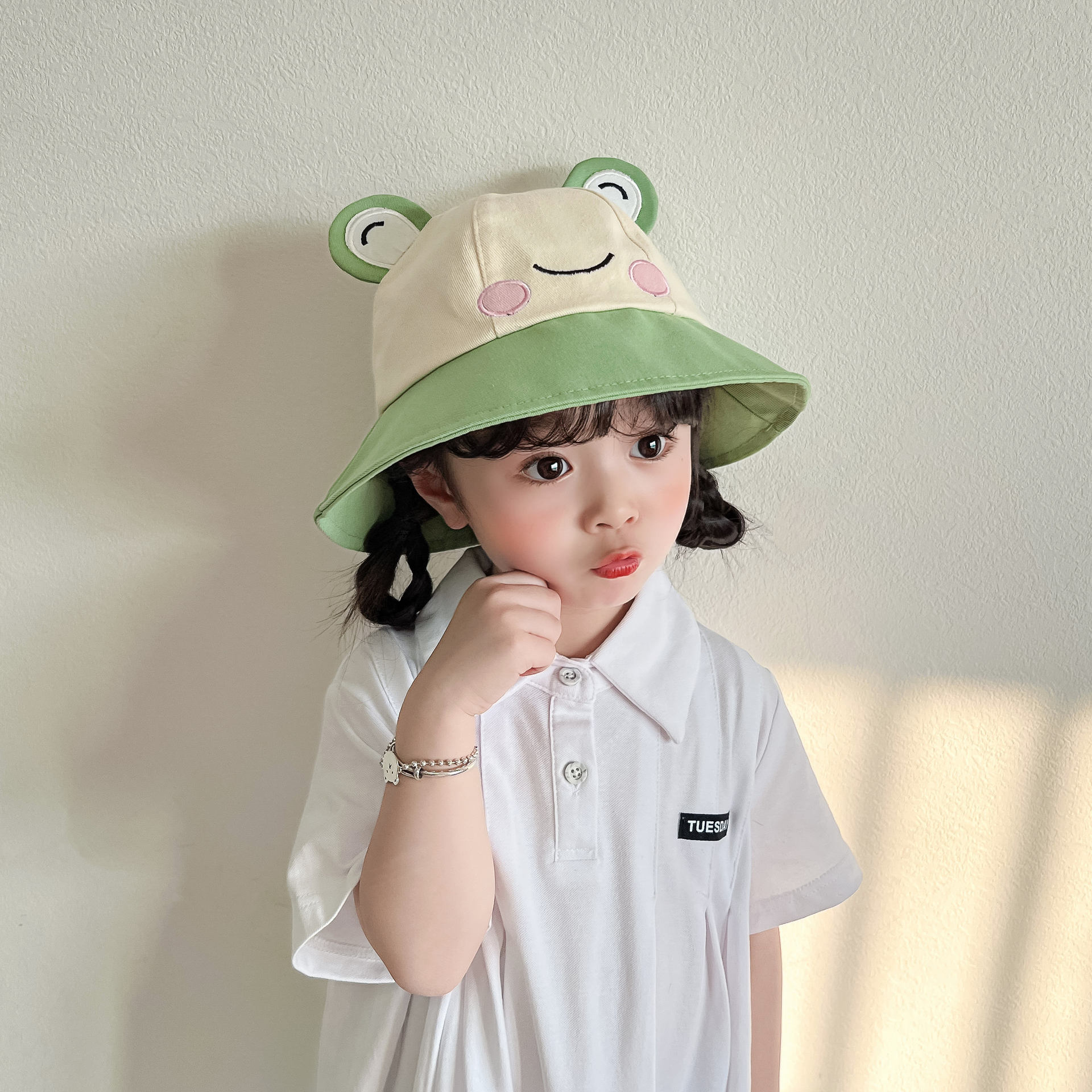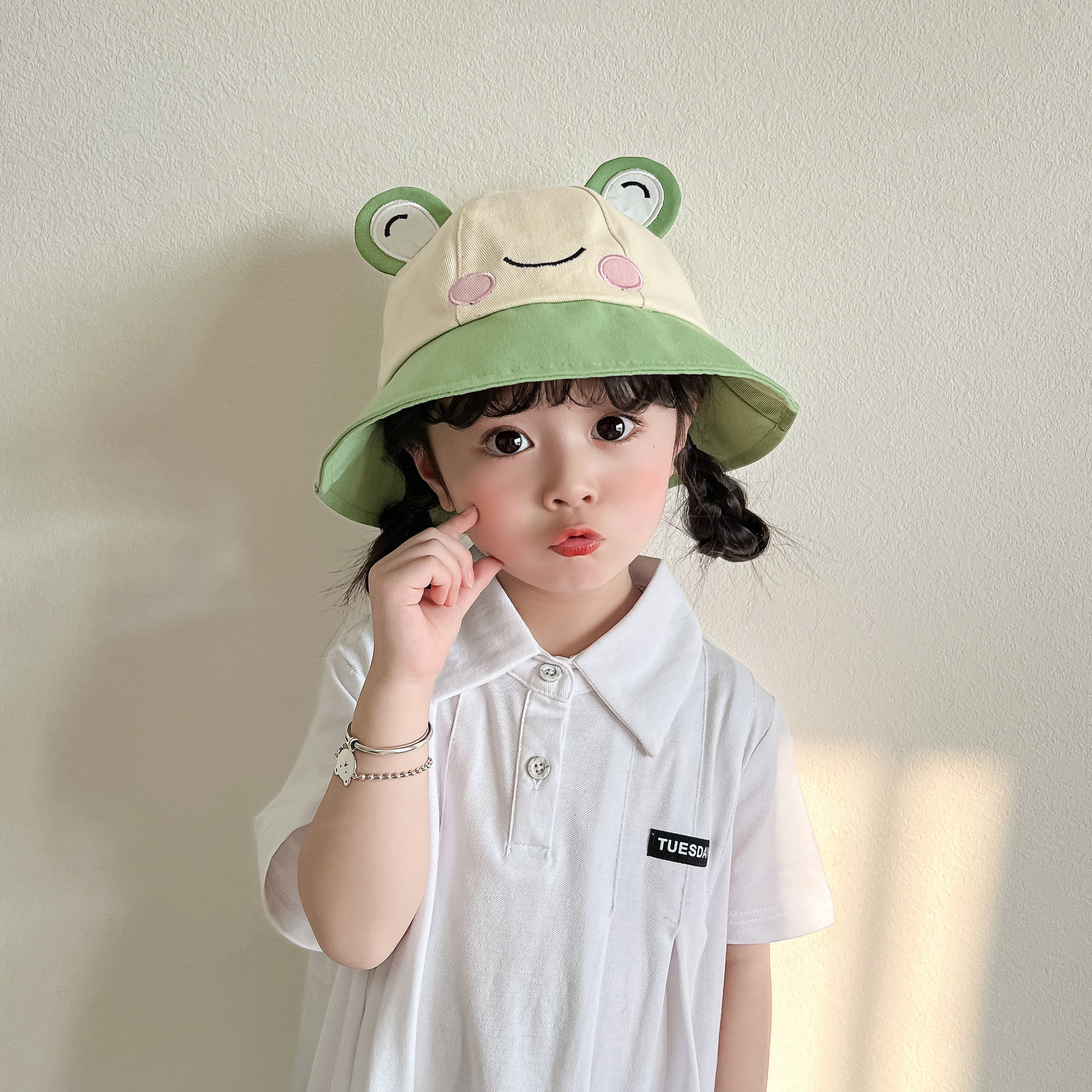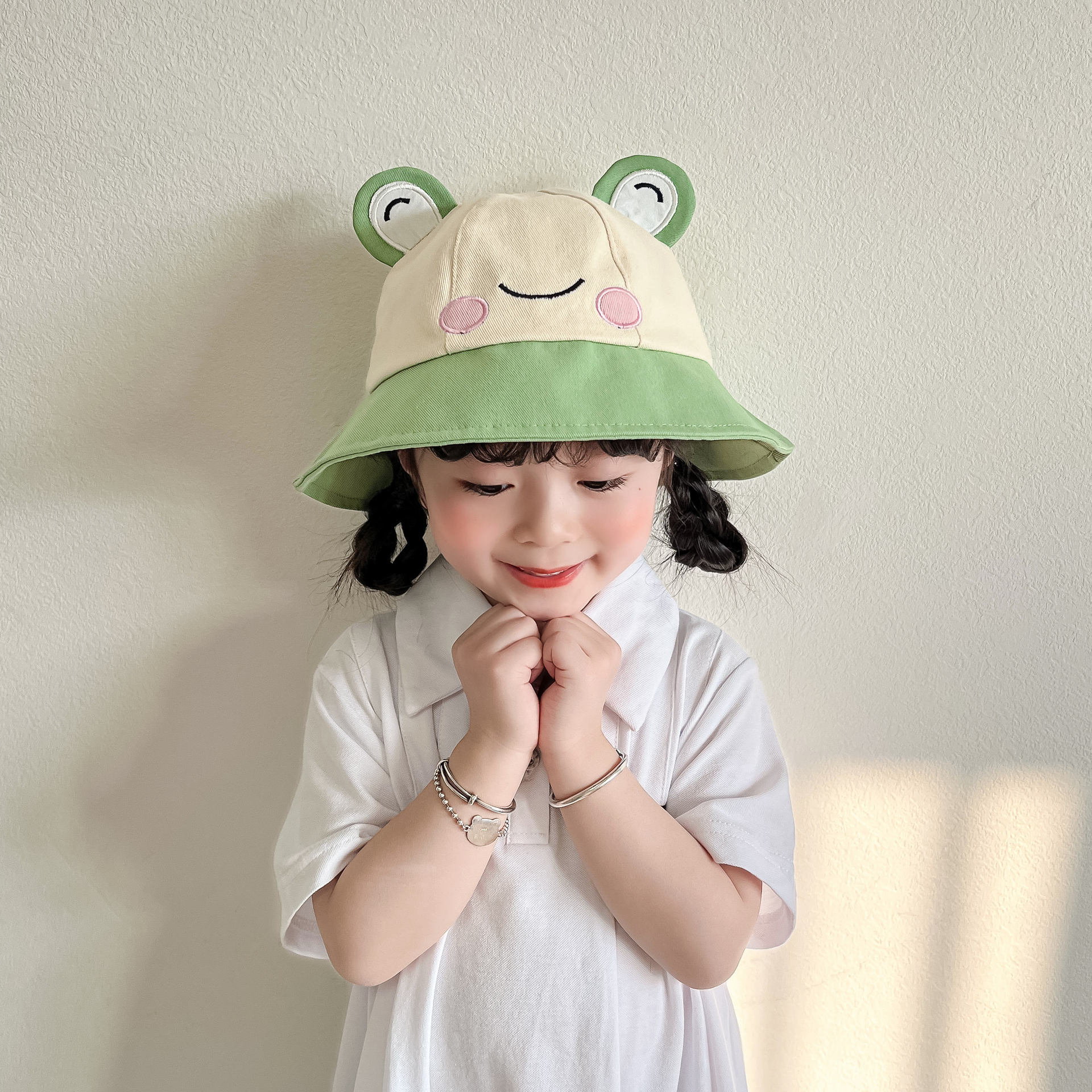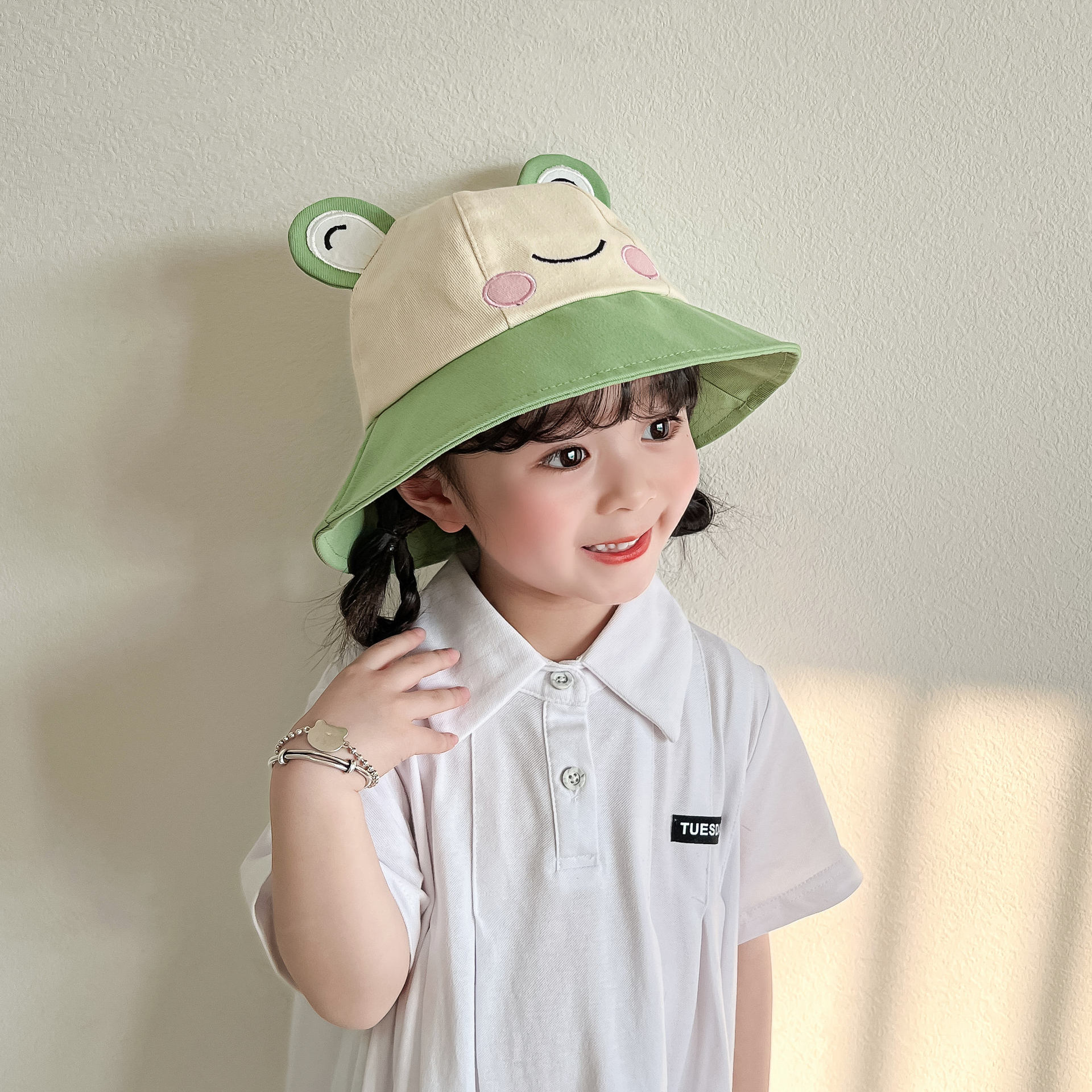 새로운 어린이 어부 모자 남자와 여자의 귀여운 팬더 개구리 작은 동물 수 놓은 선 스크린 모자 야외 스포츠 태양 모자