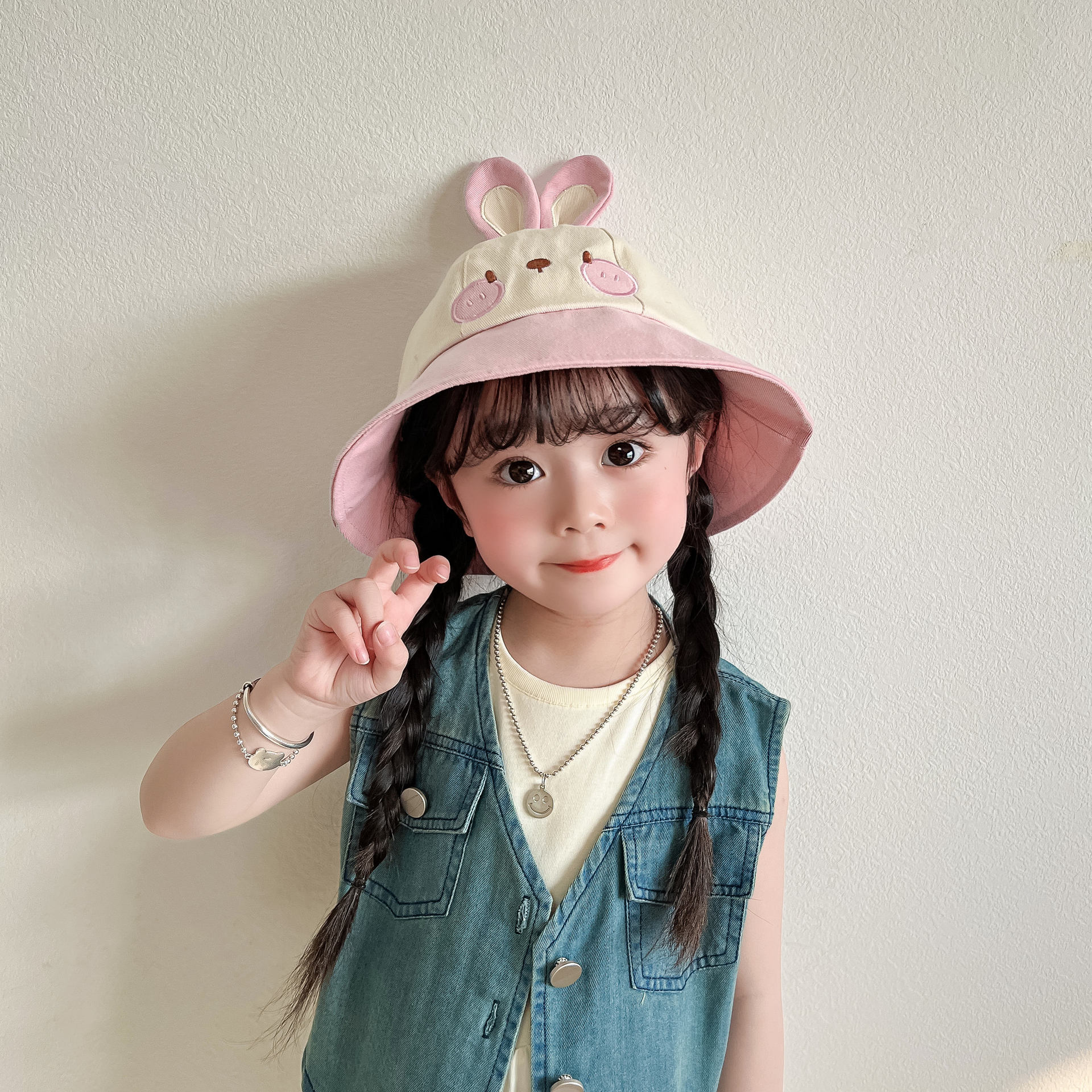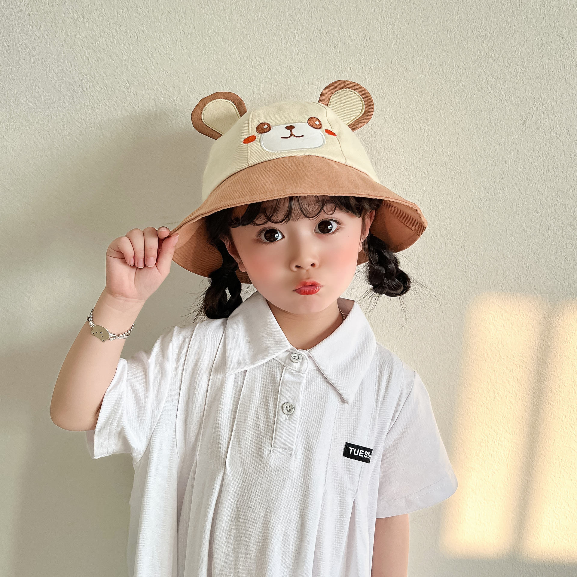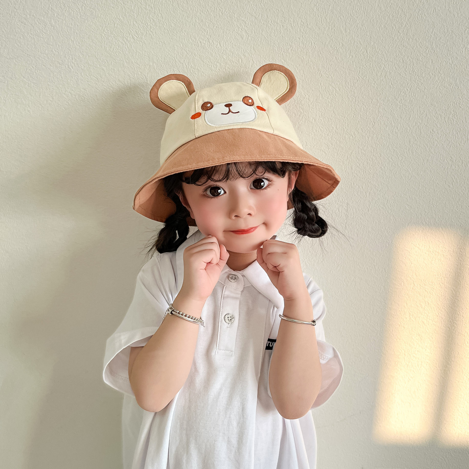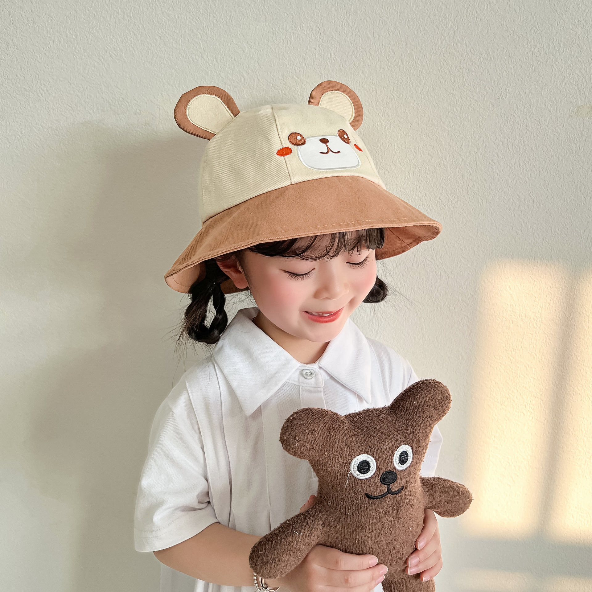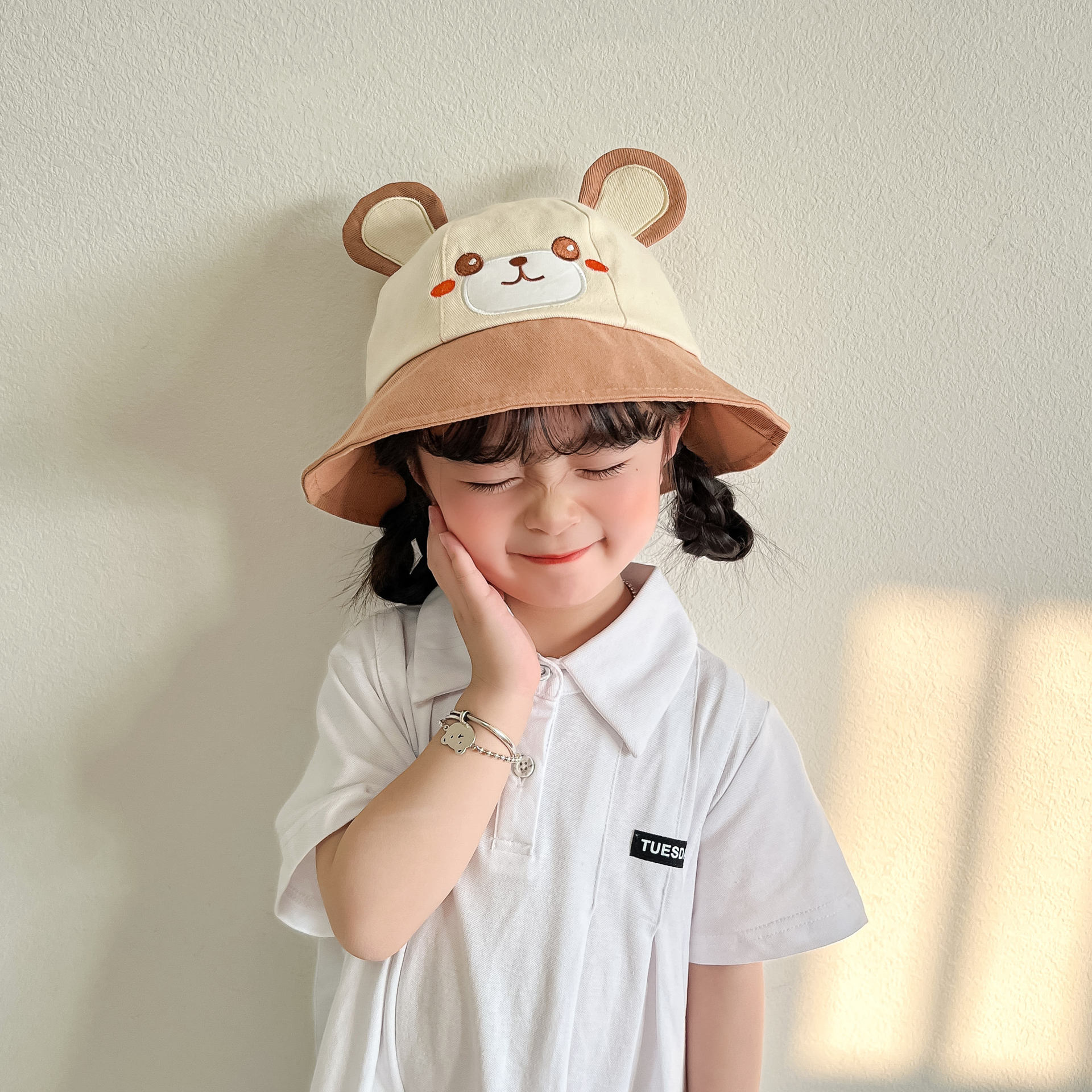 새로운 어린이 어부 모자 남자와 여자의 귀여운 팬더 개구리 작은 동물 수 놓은 선 스크린 모자 야외 스포츠 태양 모자