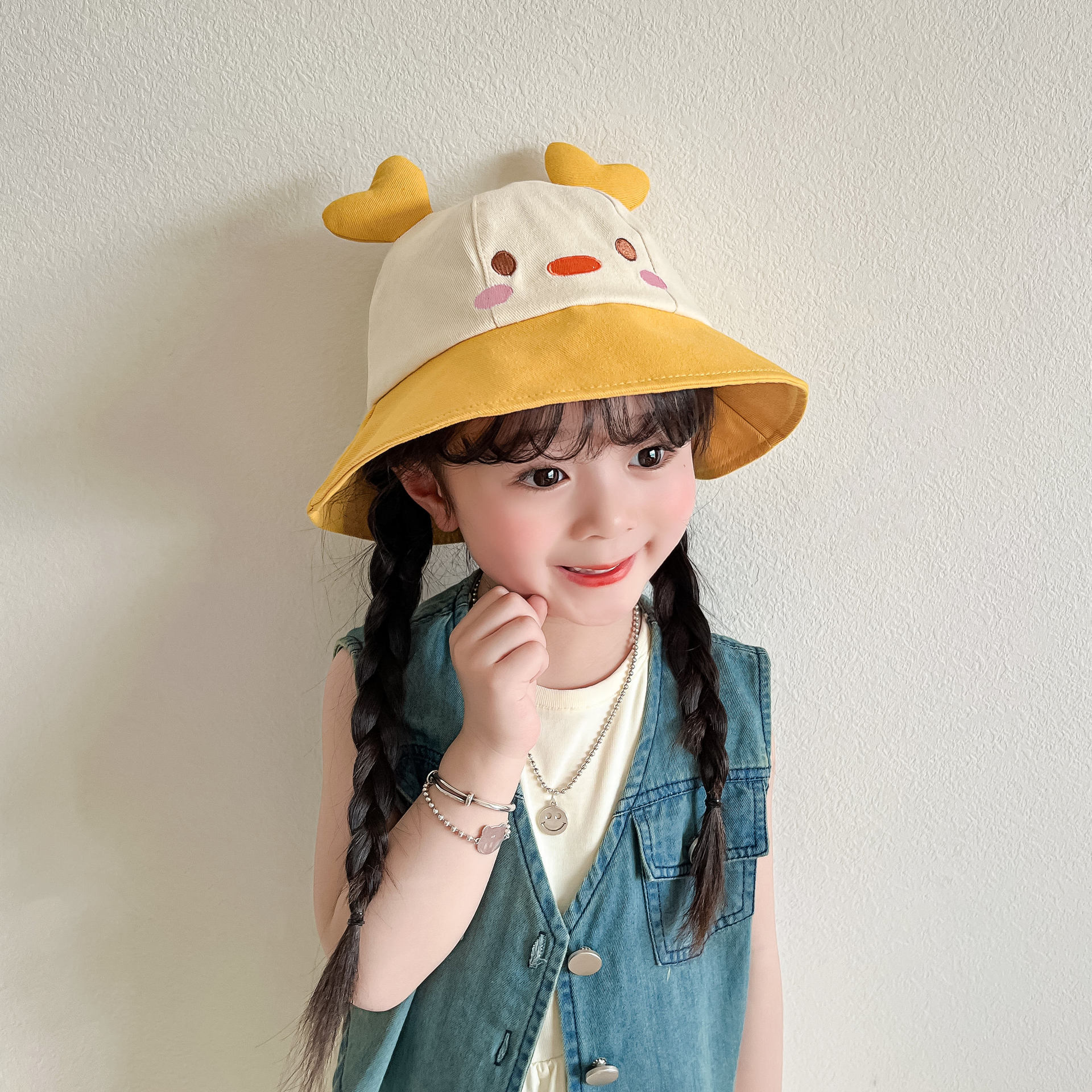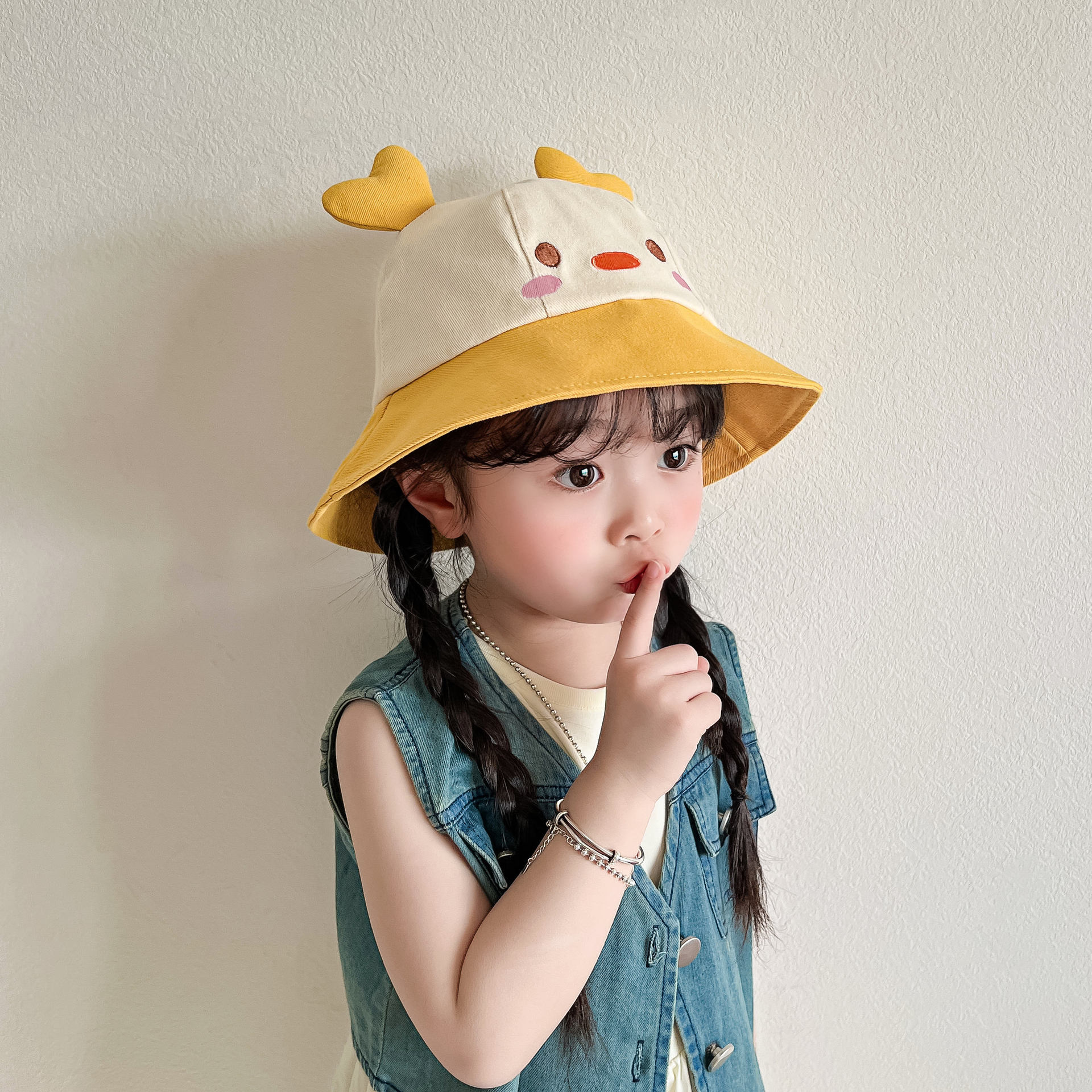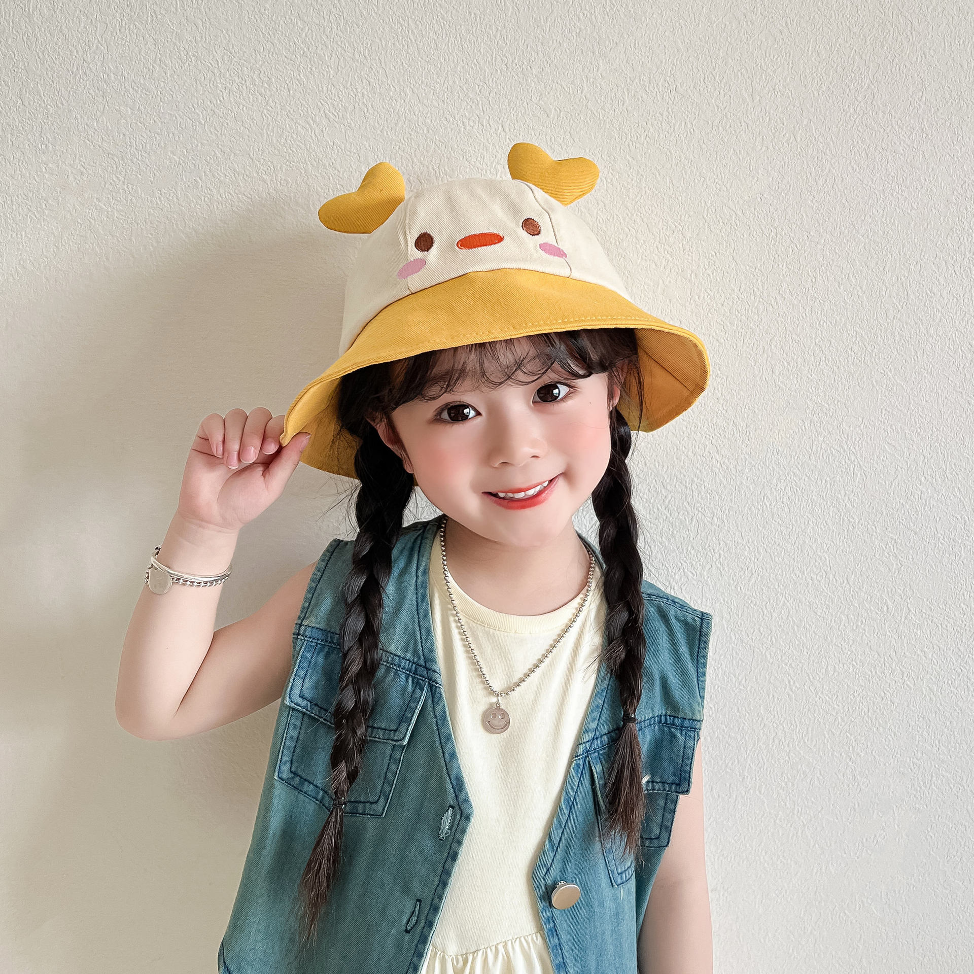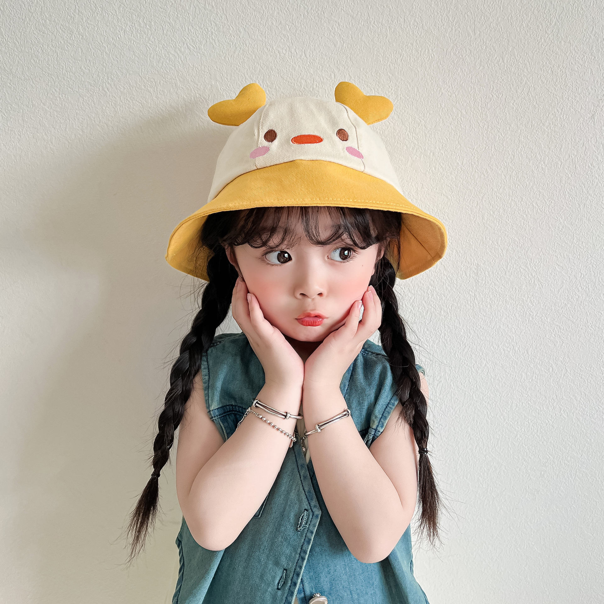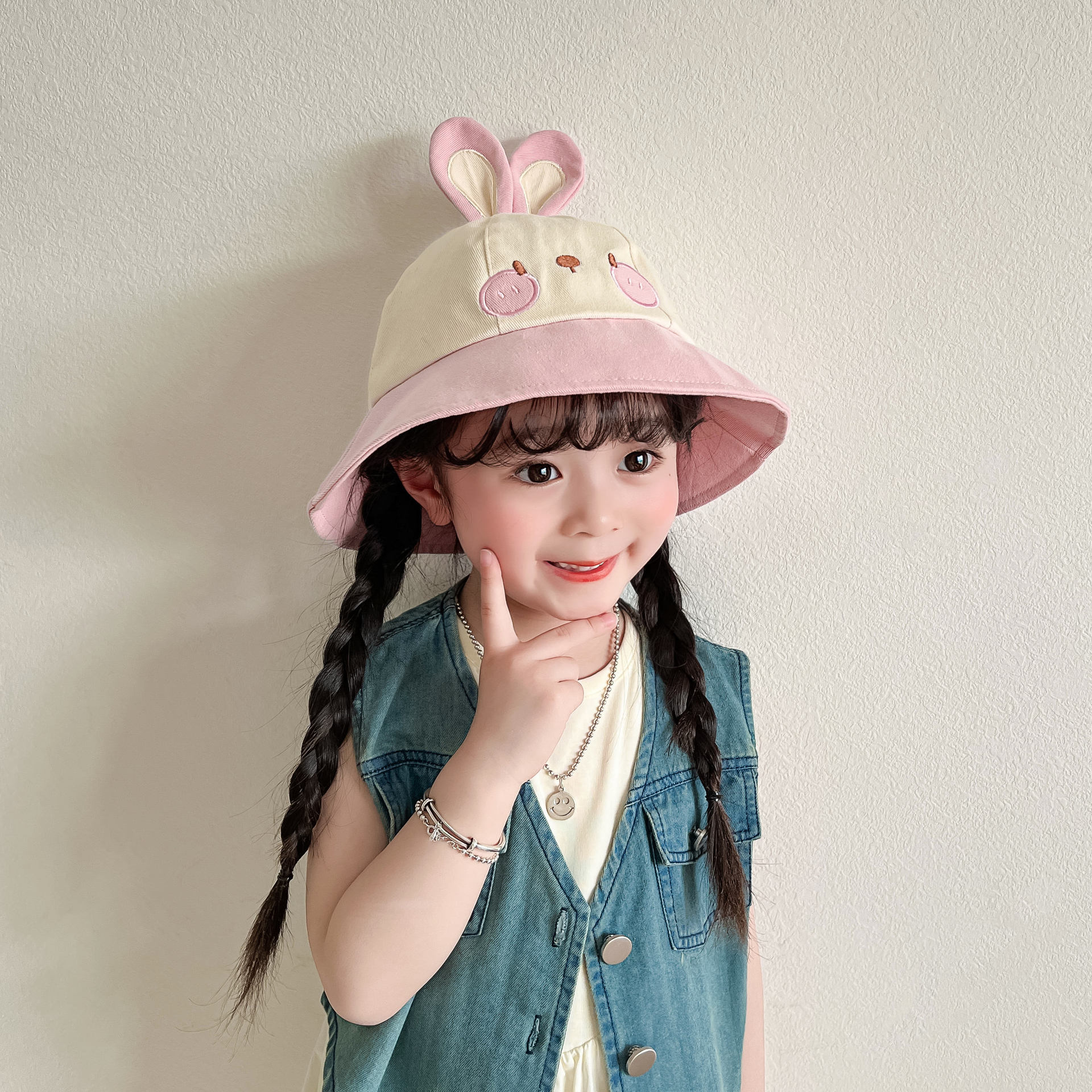 새로운 어린이 어부 모자 남자와 여자의 귀여운 팬더 개구리 작은 동물 수 놓은 선 스크린 모자 야외 스포츠 태양 모자