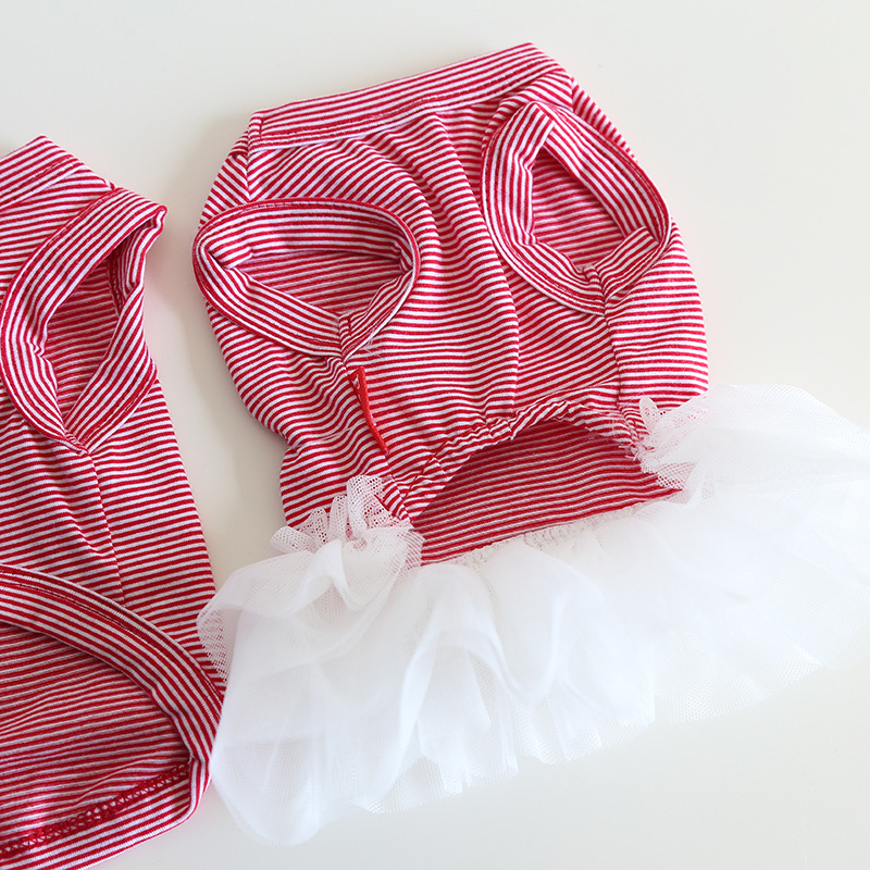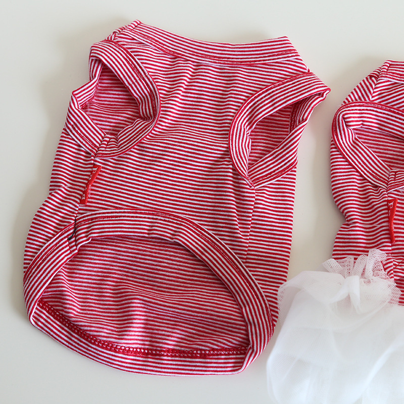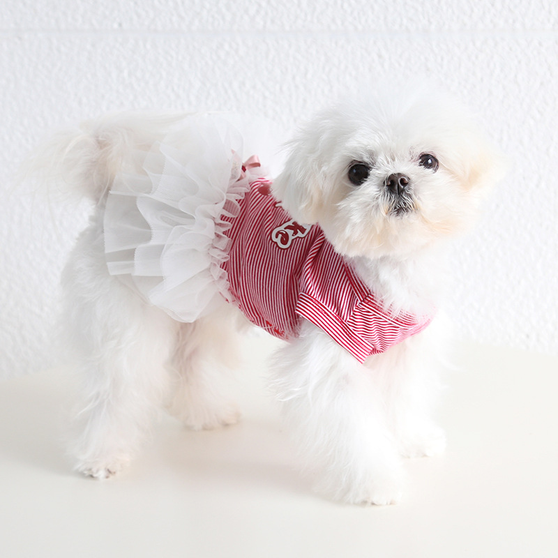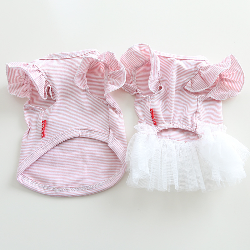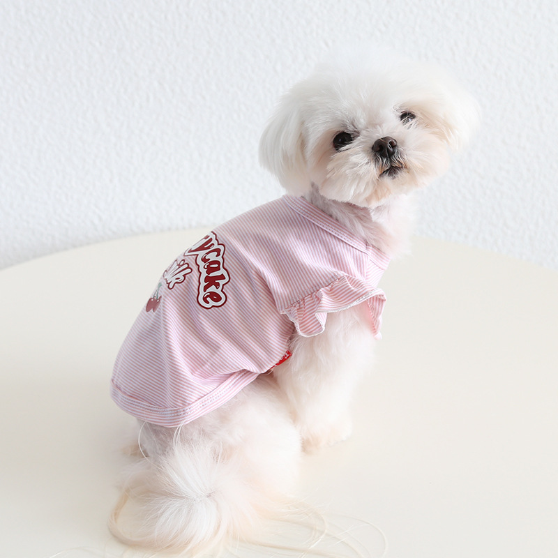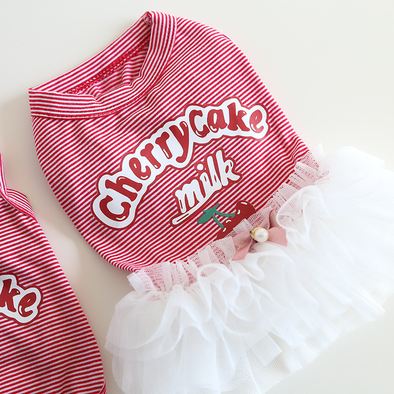 봄과 여름 새로운 개 고양이 의류 애완 동물 옷을 2024 피트 스타일 체리 비행 소매 핑크 커플 옷