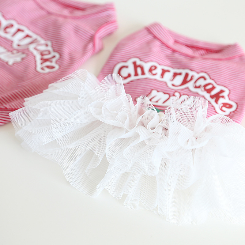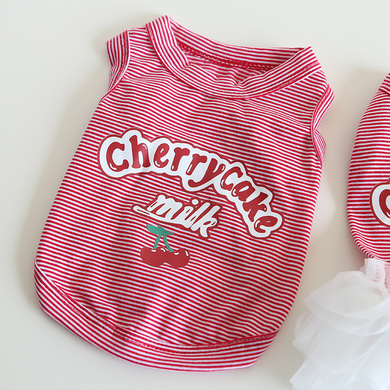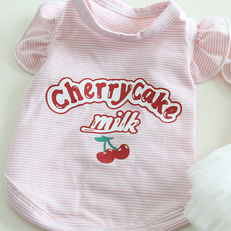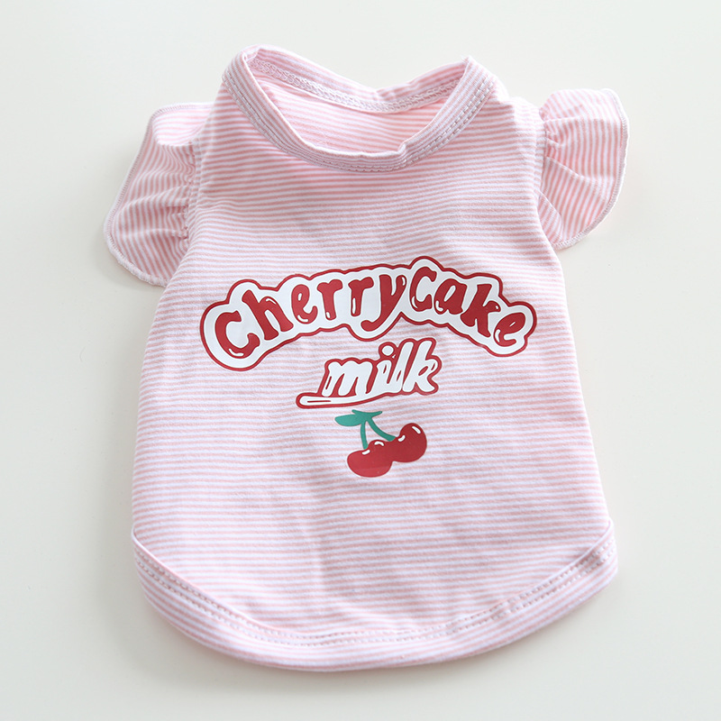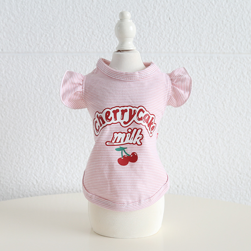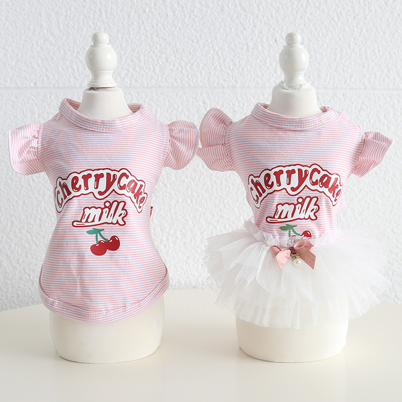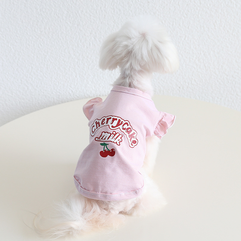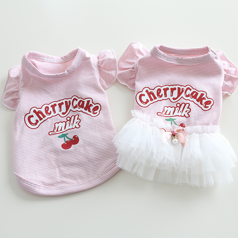 봄과 여름 새로운 개 고양이 의류 애완 동물 옷을 2024 피트 스타일 체리 비행 소매 핑크 커플 옷스토어 가기