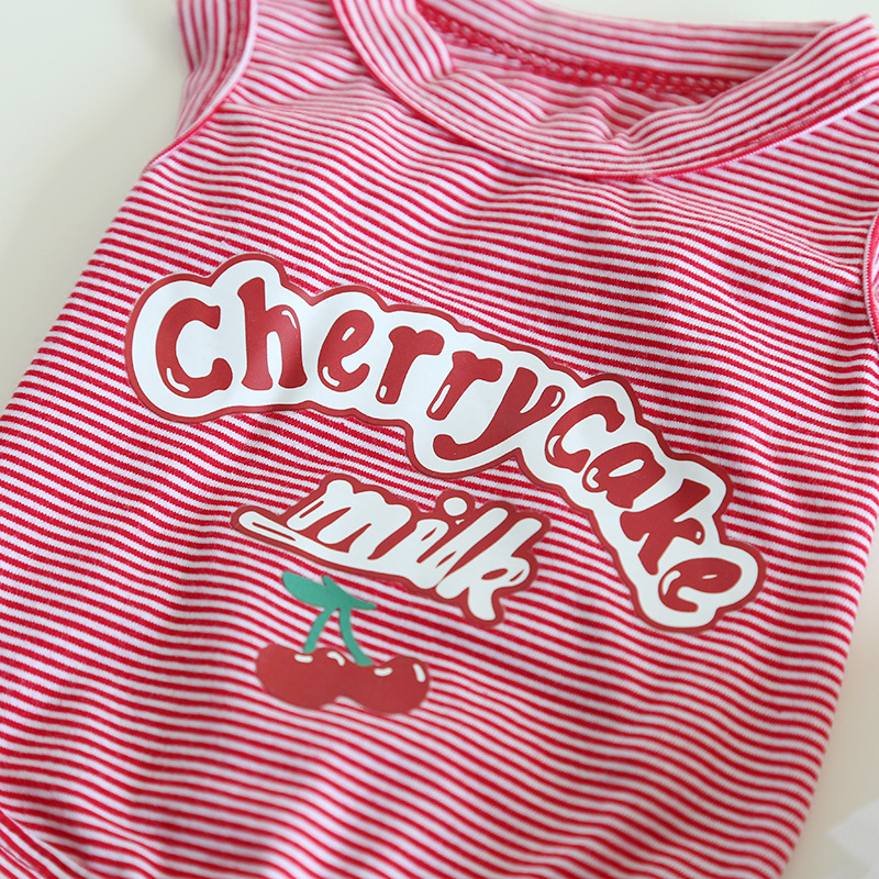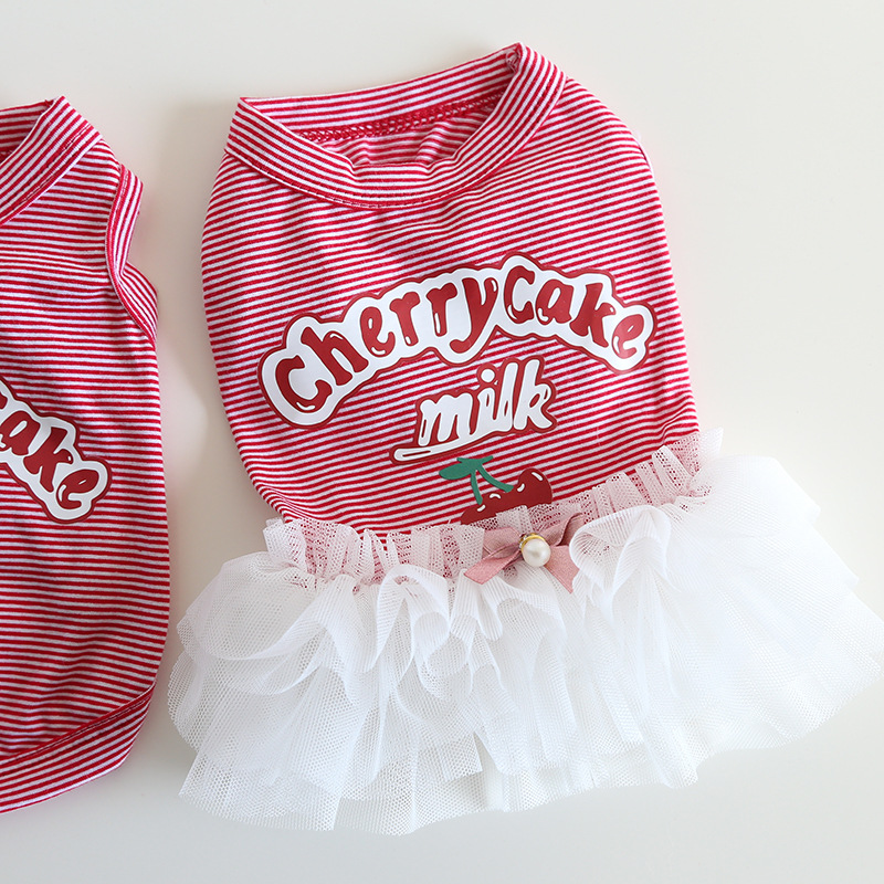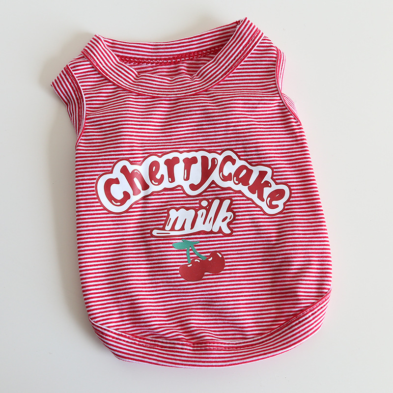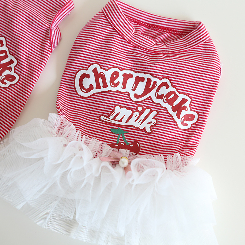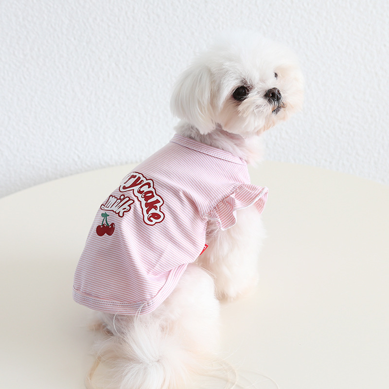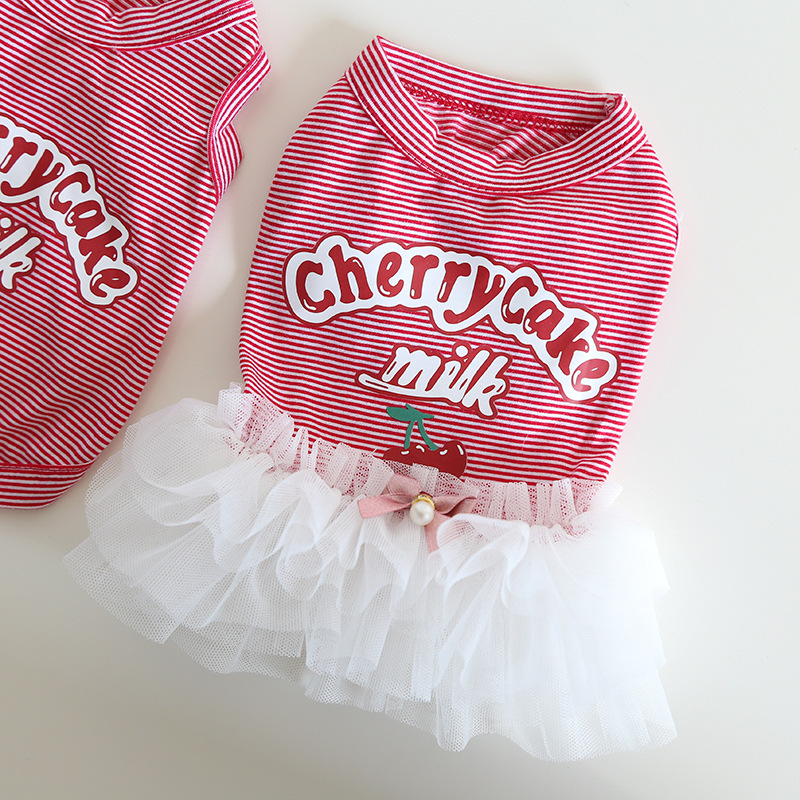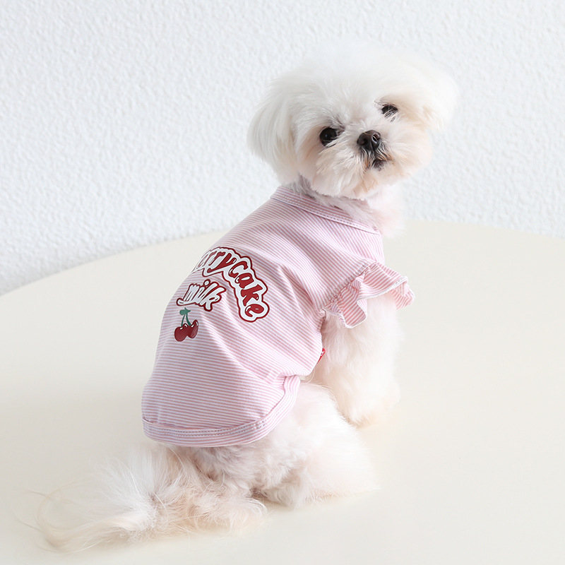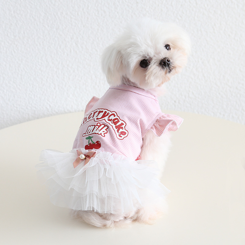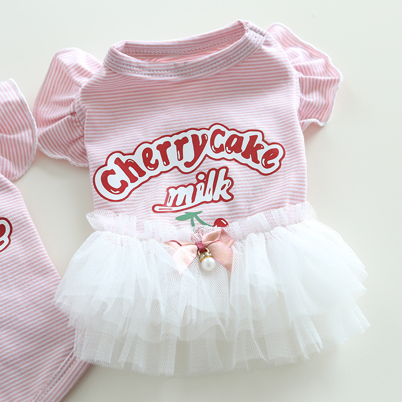 봄과 여름 새로운 개 고양이 의류 애완 동물 옷을 2024 피트 스타일 체리 비행 소매 핑크 커플 옷스토어 가기