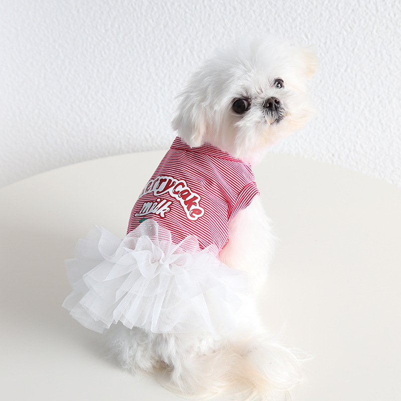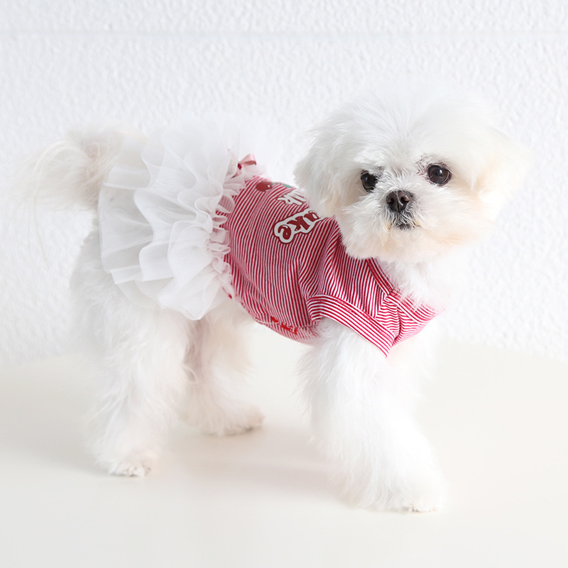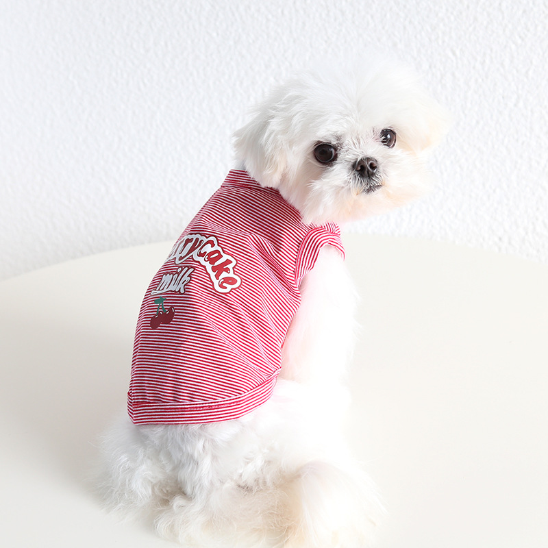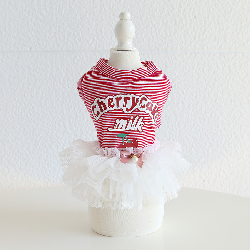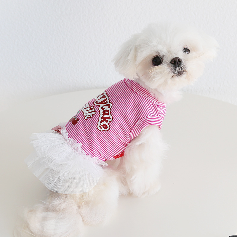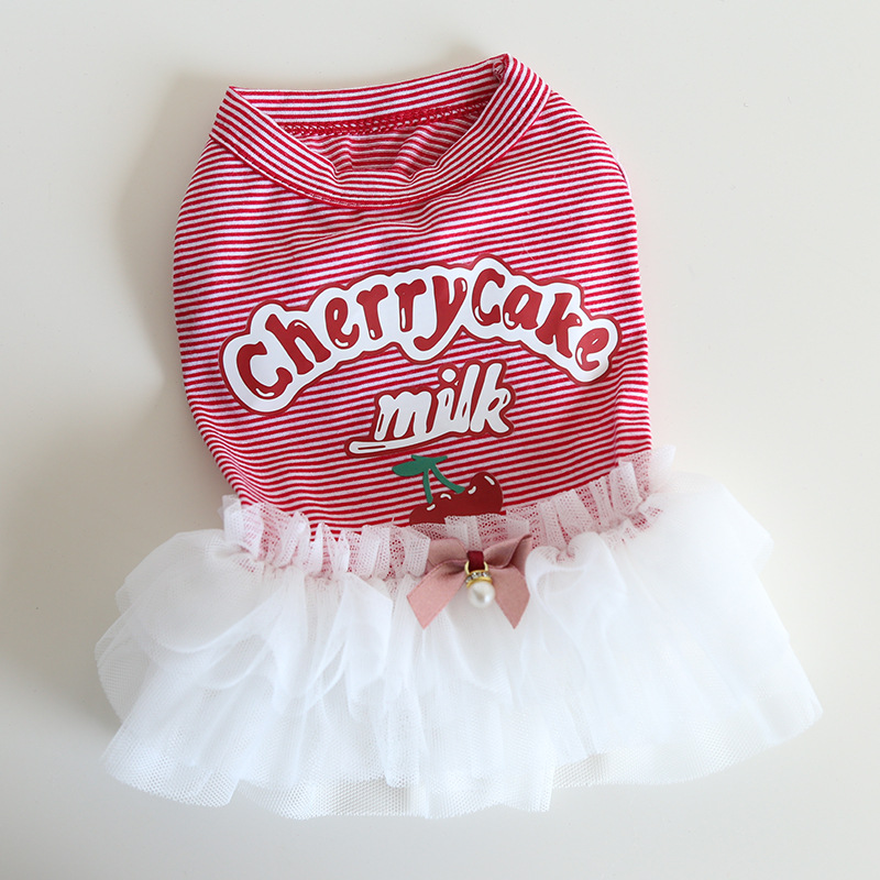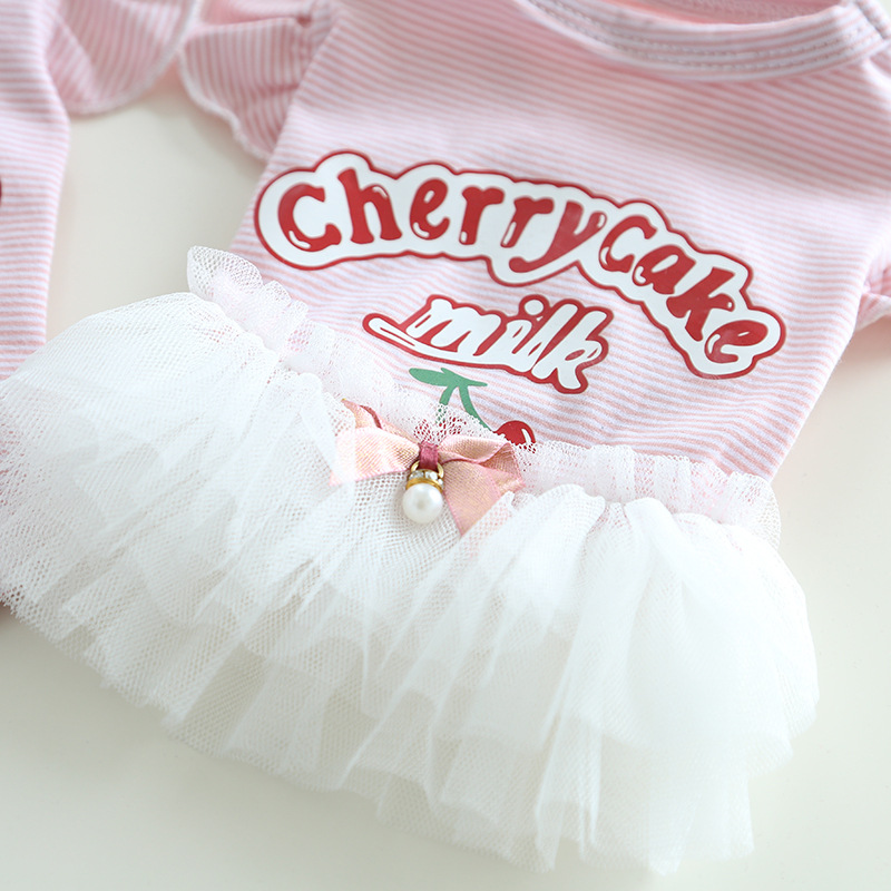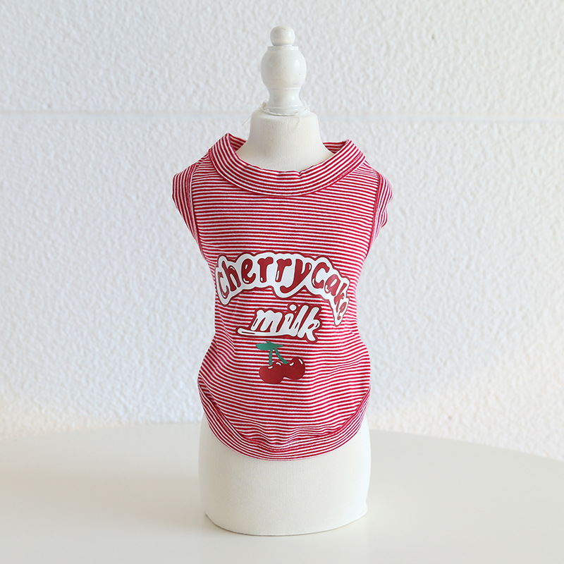 봄과 여름 새로운 개 고양이 의류 애완 동물 옷을 2024 피트 스타일 체리 비행 소매 핑크 커플 옷스토어 가기