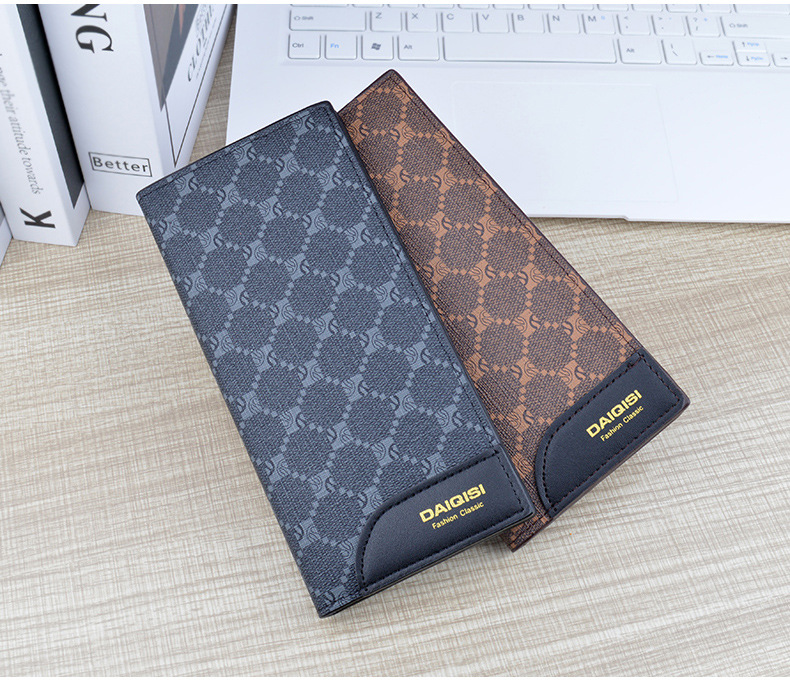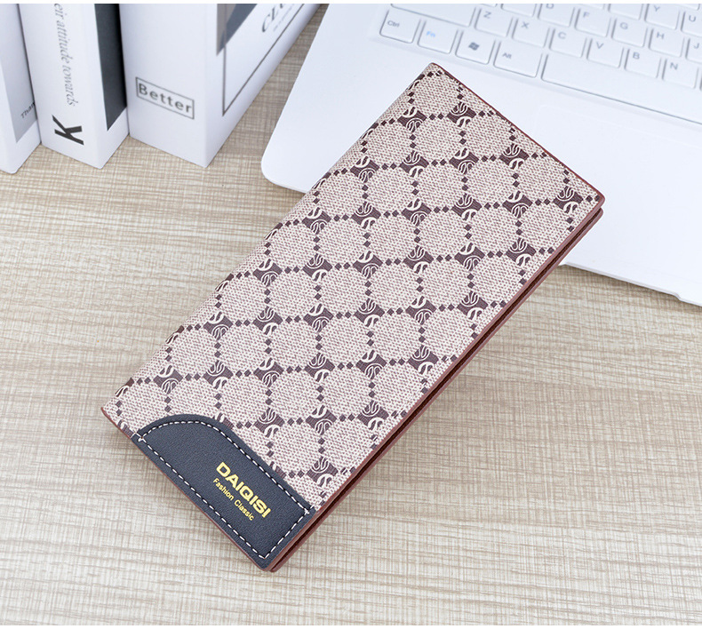 새로운 남성 지갑 남자의 긴 지갑 멀티 카드 얇은 패션 인쇄 격자 무늬 지갑 대용량 세트 가방스토어 가기
