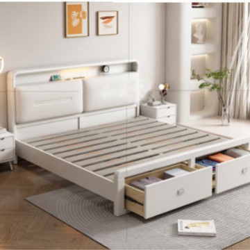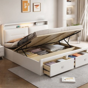 침대 옆 충전 단단한 나무 침대 흰색 현대 간단한 마스터 침실 더블 침대 공기 압력 저장 높은 상자 서랍 보관 침대스토어 가기