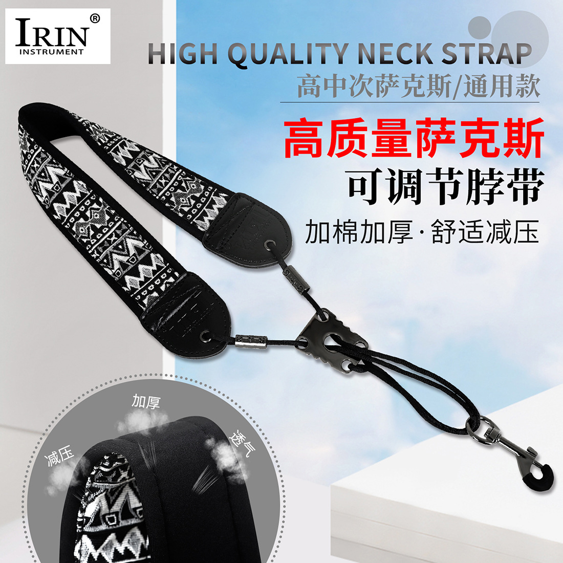 产品名称:IRIN TS-10高中次萨克斯风通用脖带可调节EVA+棉质刺绣款
