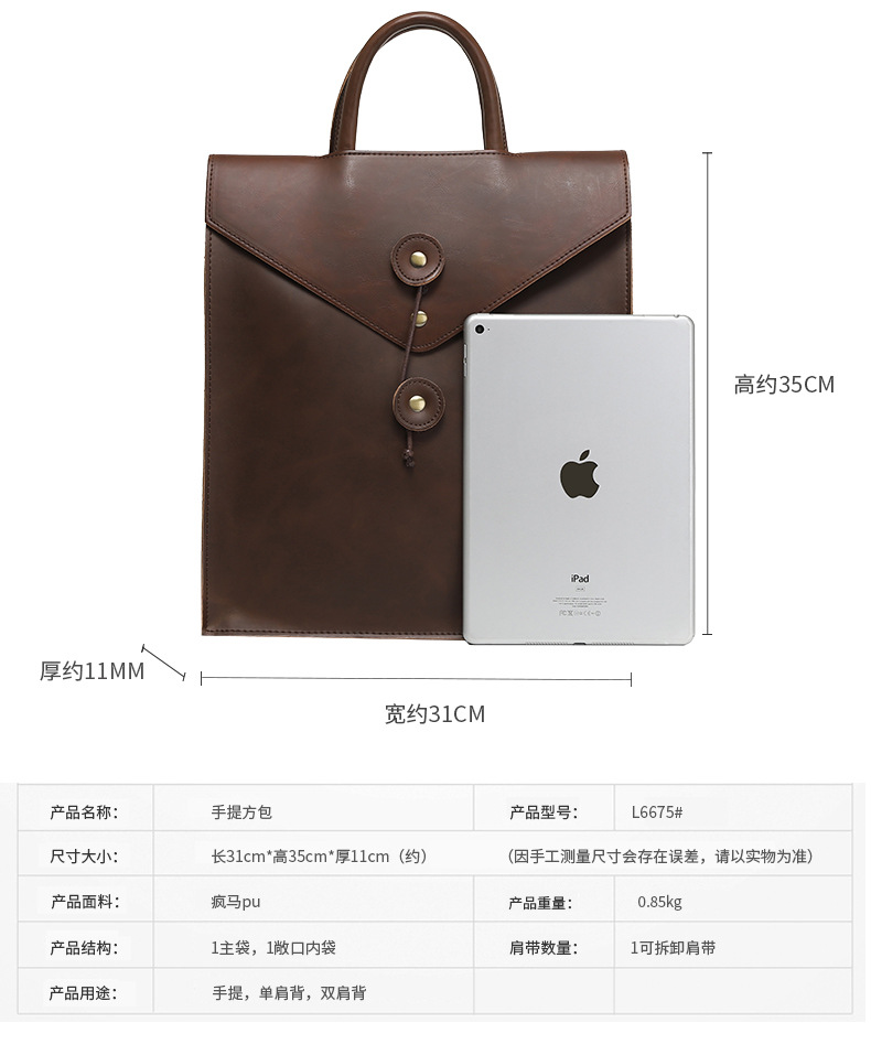 새로운 남성 서류 가방 복고풍 컴퓨터 가방 다기능 배낭 미친 말 핸드백 비즈니스 남성 가방 국경스토어 가기