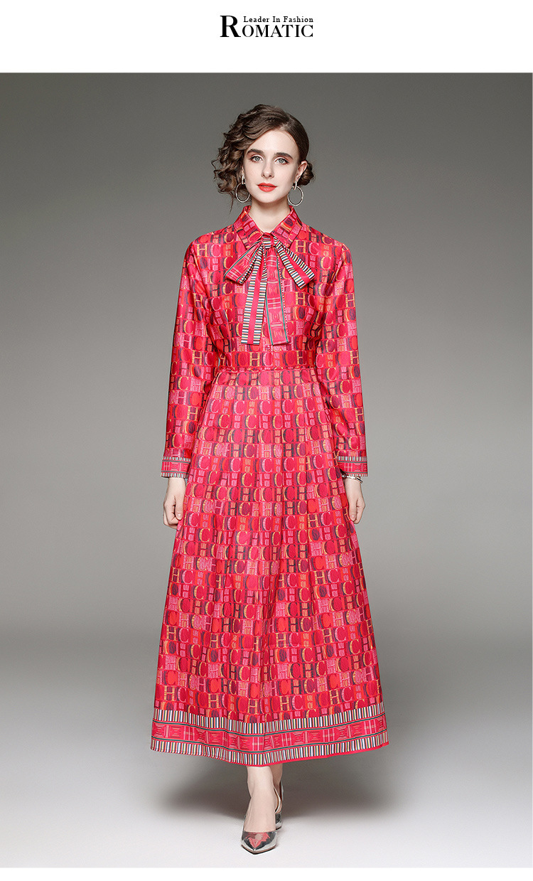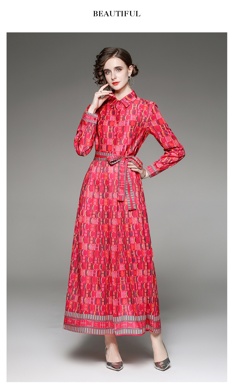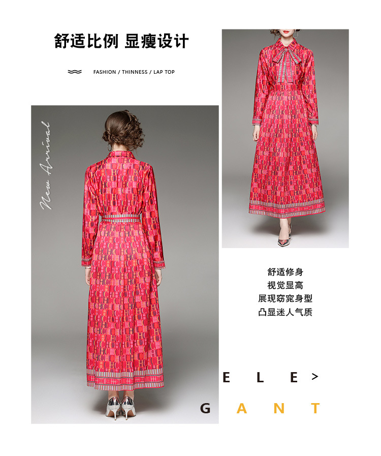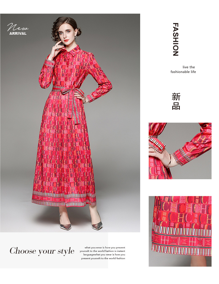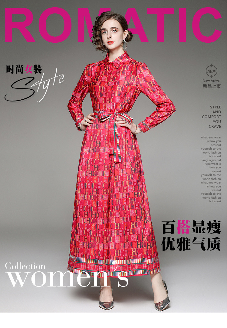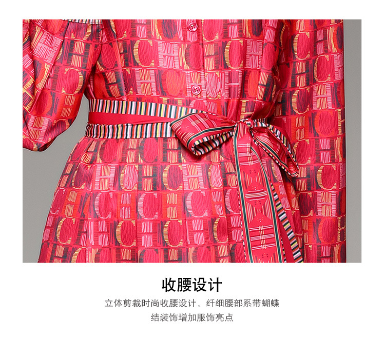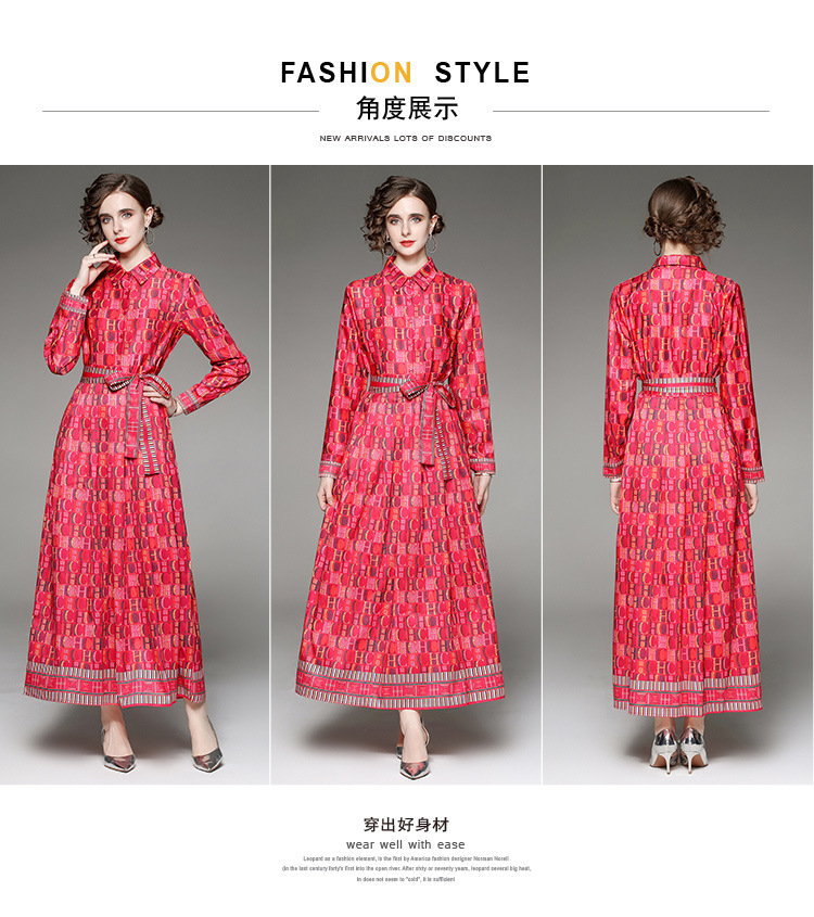 7100 리얼 샷 봄과 가을 새로운 여성의 빈티지 패션 허리 슬리밍 인쇄 원피스 원피스스토어 가기