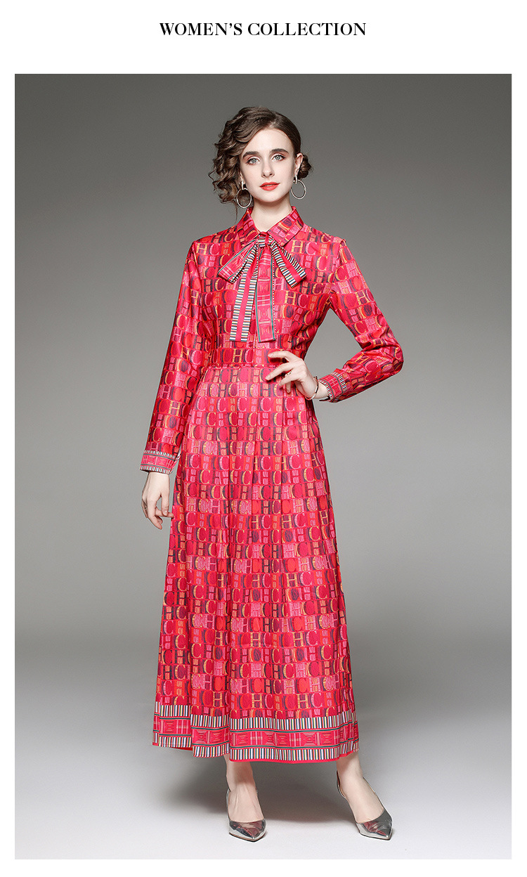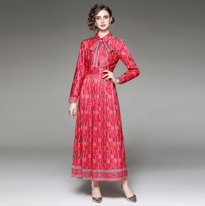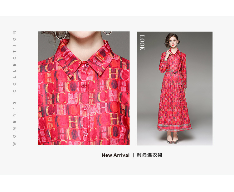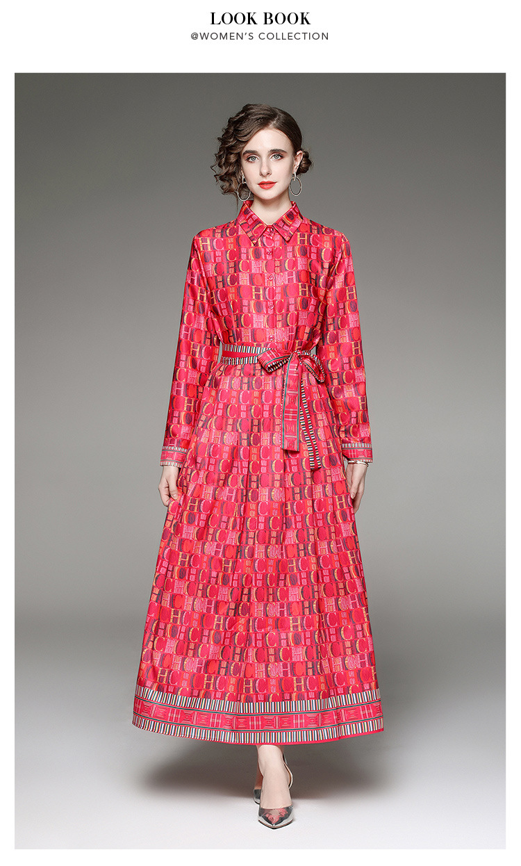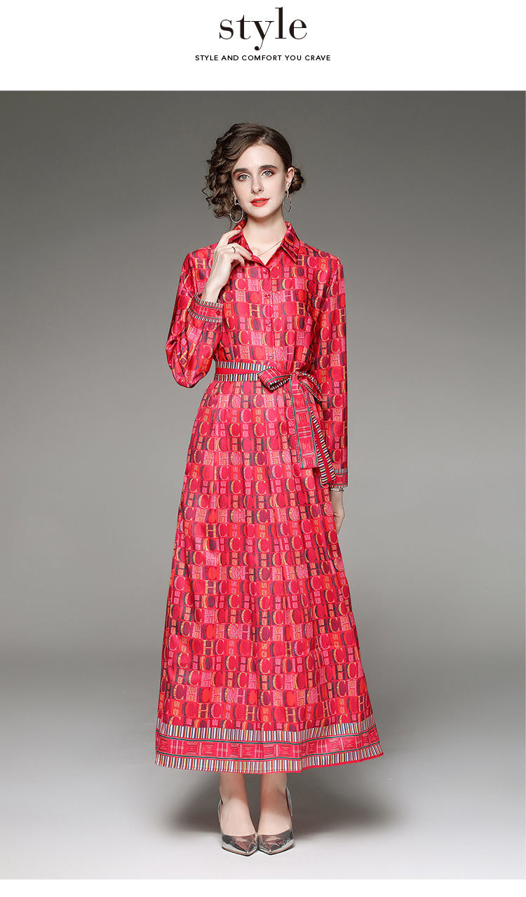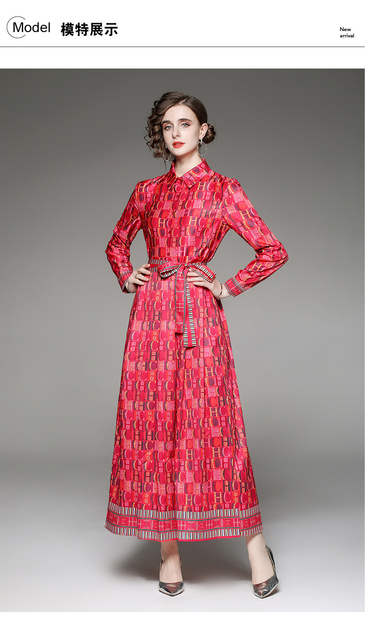 7100 리얼 샷 봄과 가을 새로운 여성의 빈티지 패션 허리 슬리밍 인쇄 원피스 원피스스토어 가기