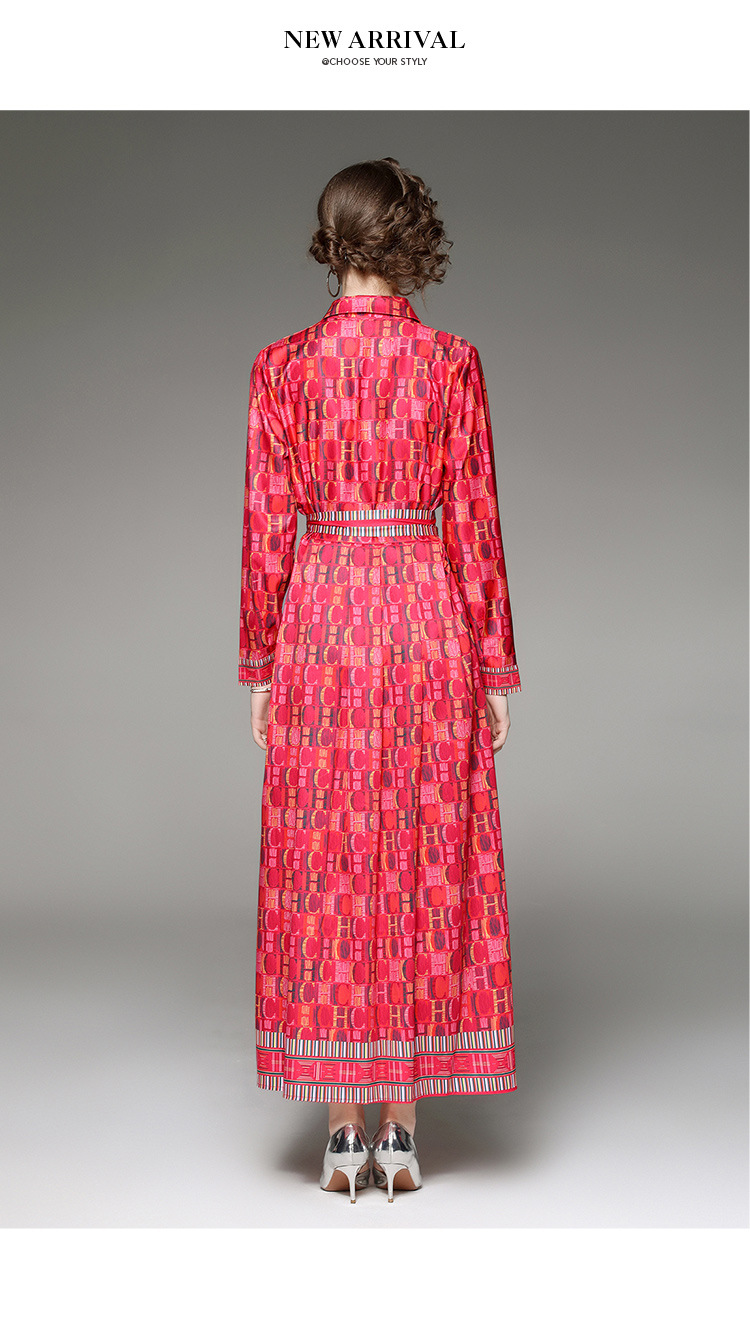 7100 리얼 샷 봄과 가을 새로운 여성의 빈티지 패션 허리 슬리밍 인쇄 원피스 원피스