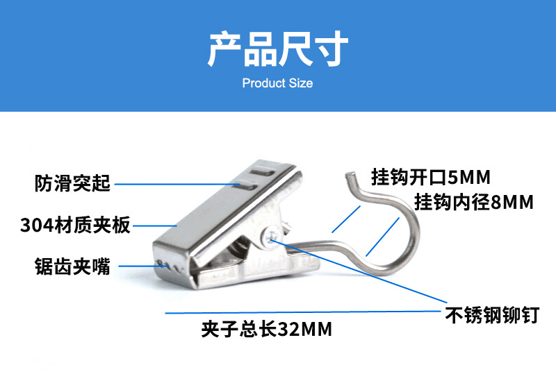• 스테인레스 스틸 두꺼운 커튼 클립(내츄럴 컬러)