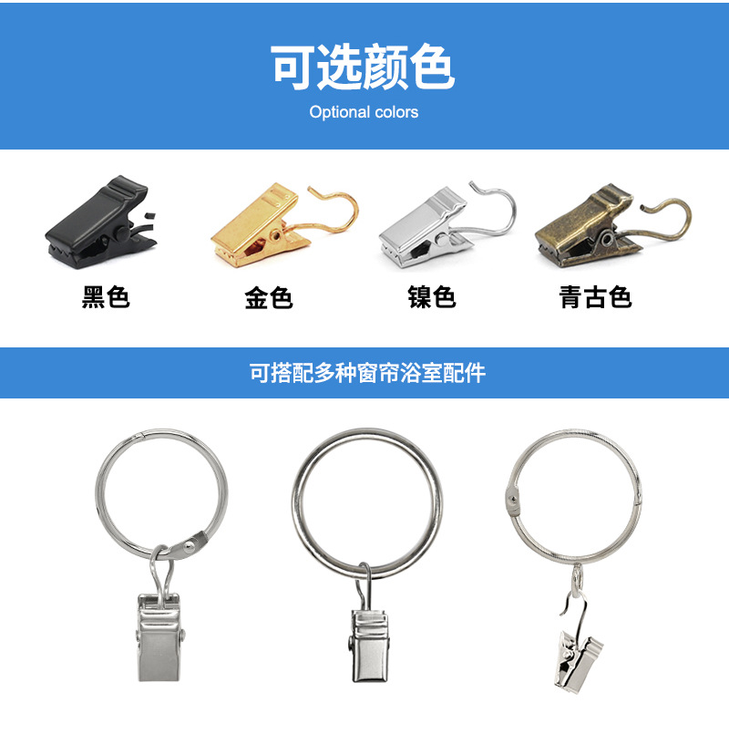 이완 두꺼운 톱니형 커튼 클립, 로마봉 욕실 액세서리 샤워 커튼 클립, 걸이형 금속 커튼 클립