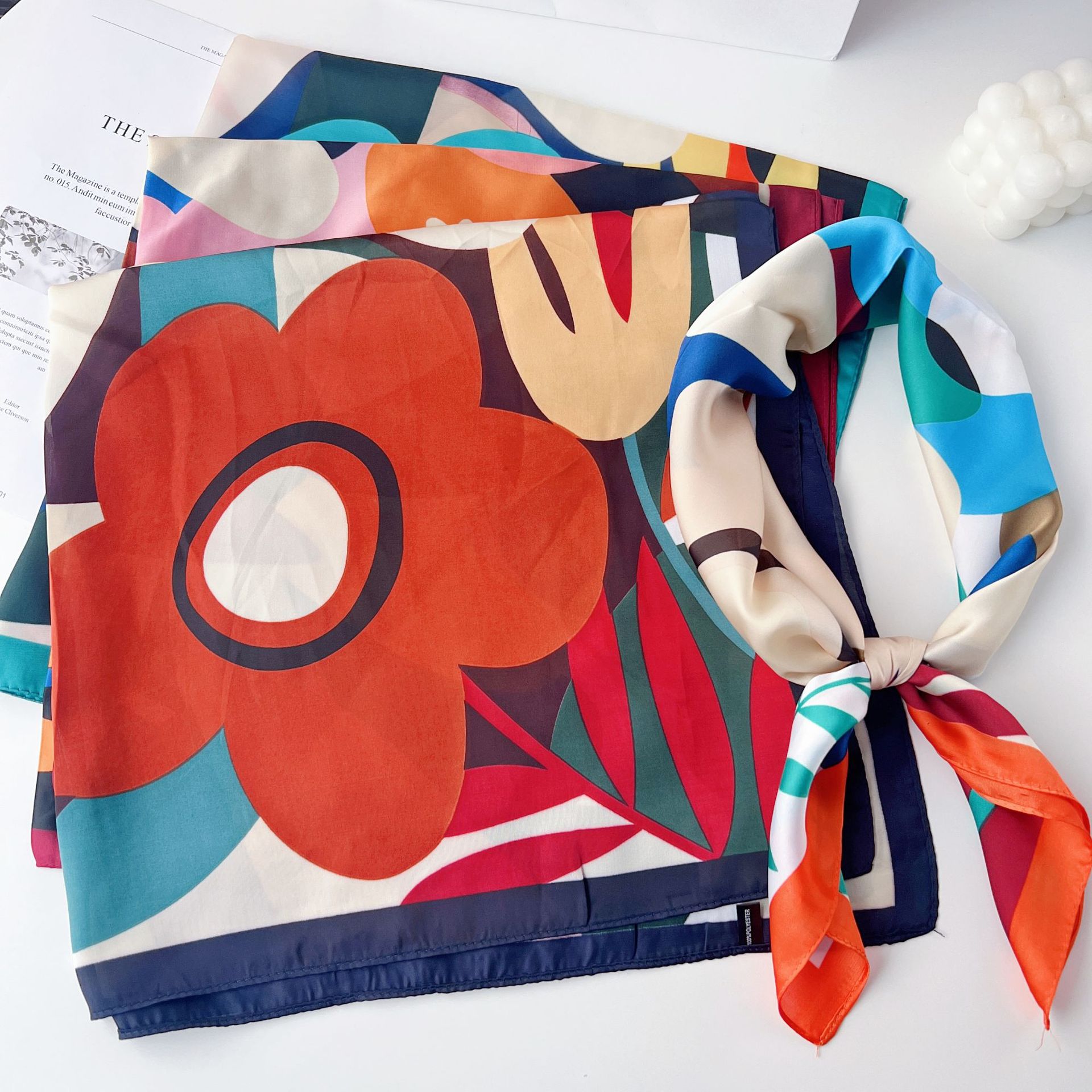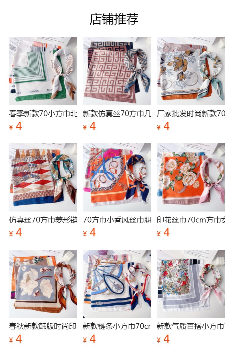봄과 여름 새로운 인공 실크 스카프 70 프린트 스퀘어 스카프 여성의 한국 스타일 연령 감소 작은 사각형 스카프 다양한 스카프 전문 스카프스토어 가기