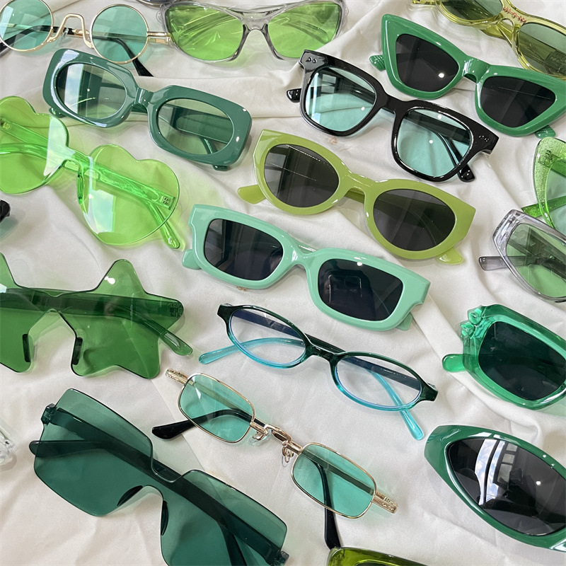 도파민 선글라스 여성 슬리밍 아보카도 그린 뜨거운 소녀 안경 온라인 인기 거리 라켓 UV 보호 선글라스 착용