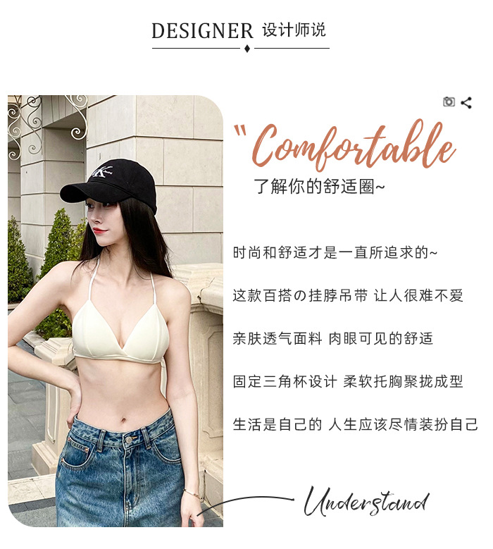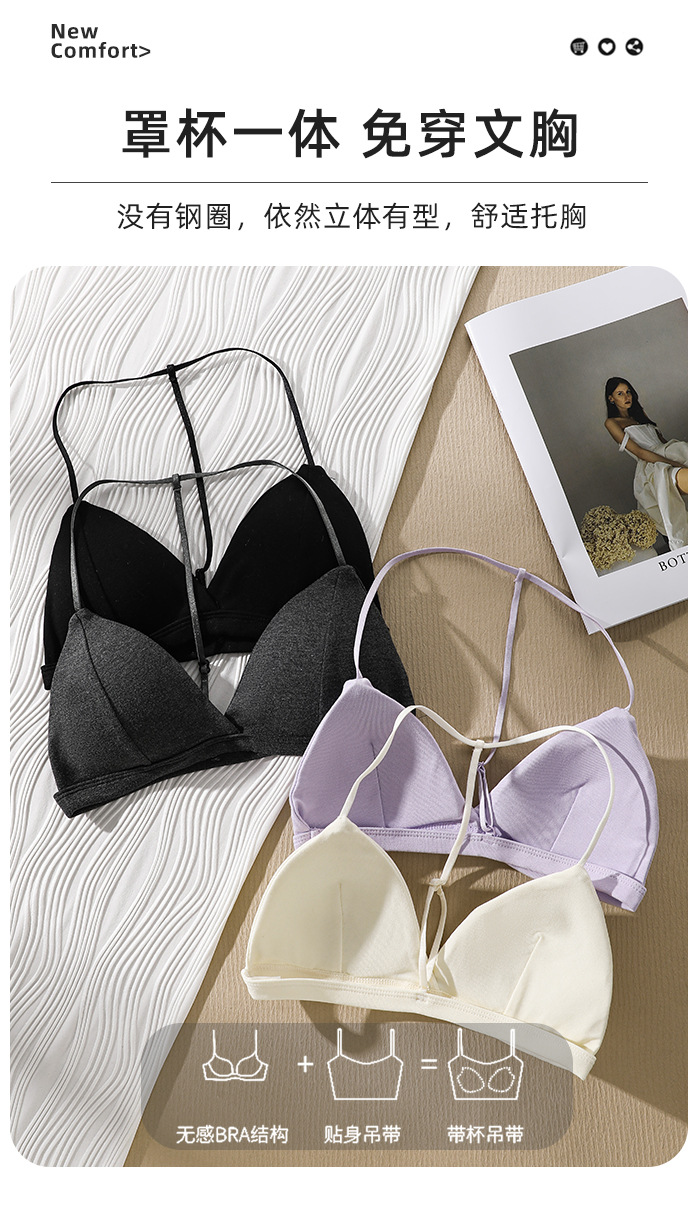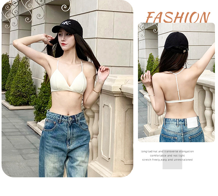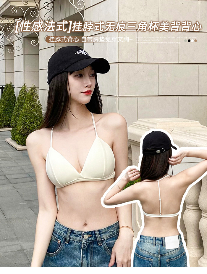 올 매치 홀터 캐미솔 프랑스 고정 삼각형 컵 속옷 섹시한 깊은 V 통기성 원활한 코튼 브라스토어 가기