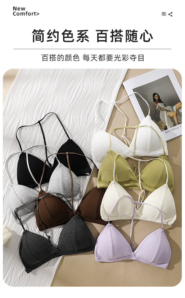 올 매치 홀터 캐미솔 프랑스 고정 삼각형 컵 속옷 섹시한 깊은 V 통기성 원활한 코튼 브라