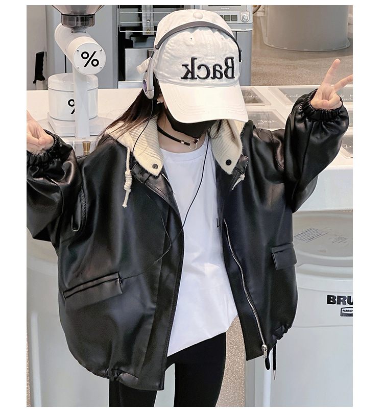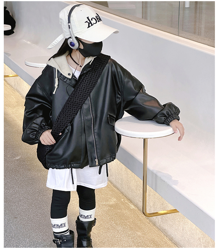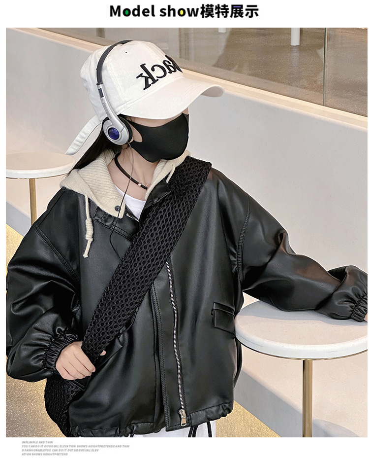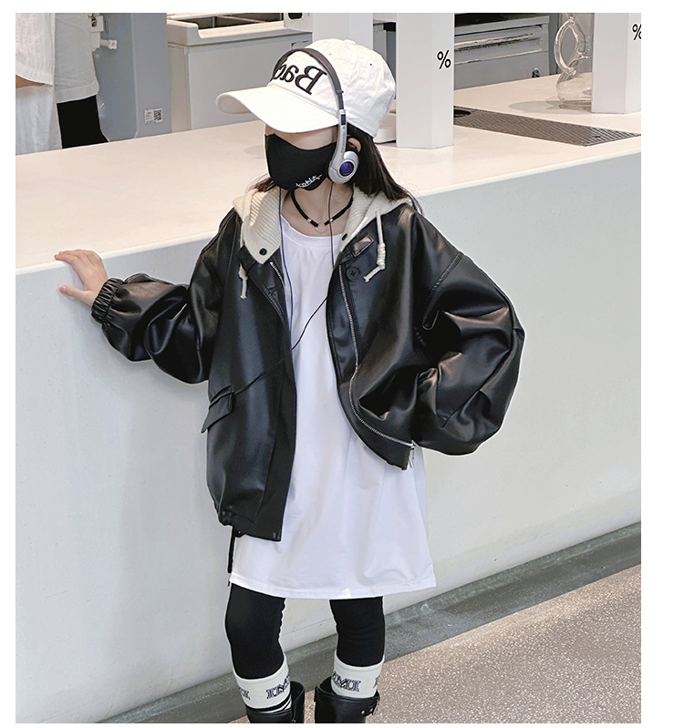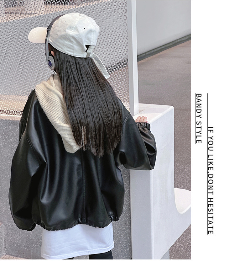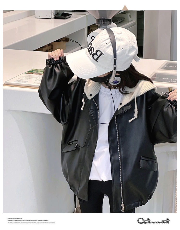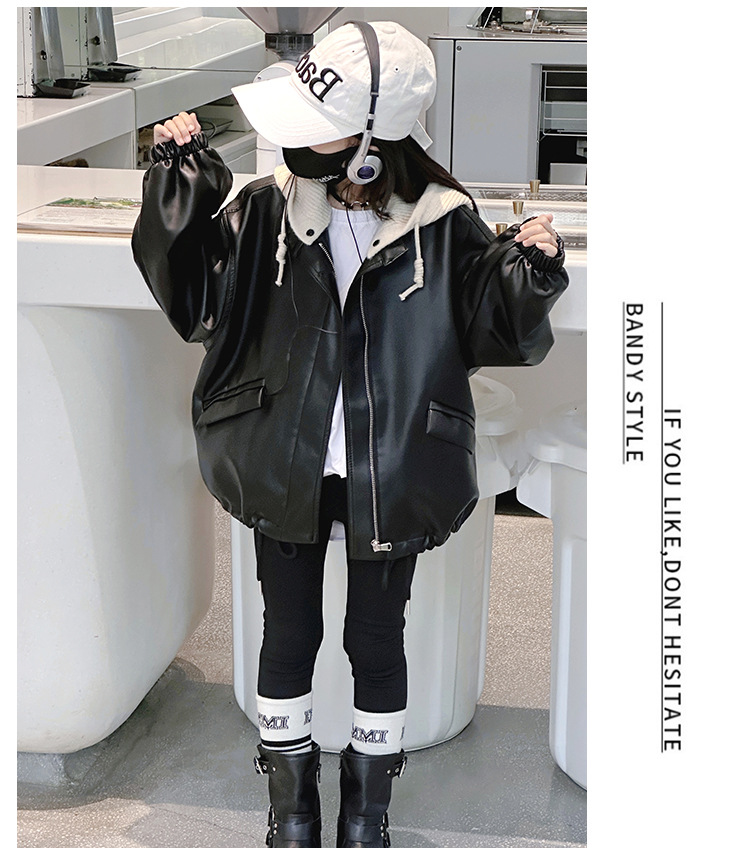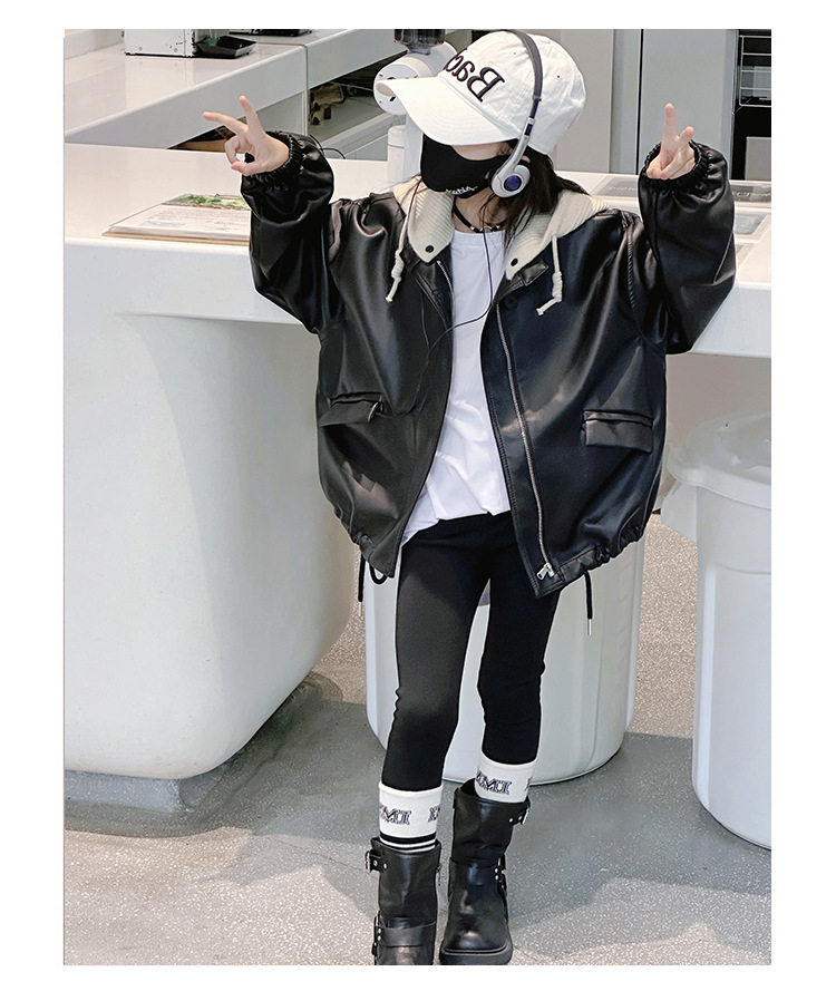 소녀 가죽 자켓 봄과 가을 2024 새로운 어린이 한국 스타일 서양식 가죽 자켓 중 큰 어린이 소녀 후드 가죽 재킷스토어 가기