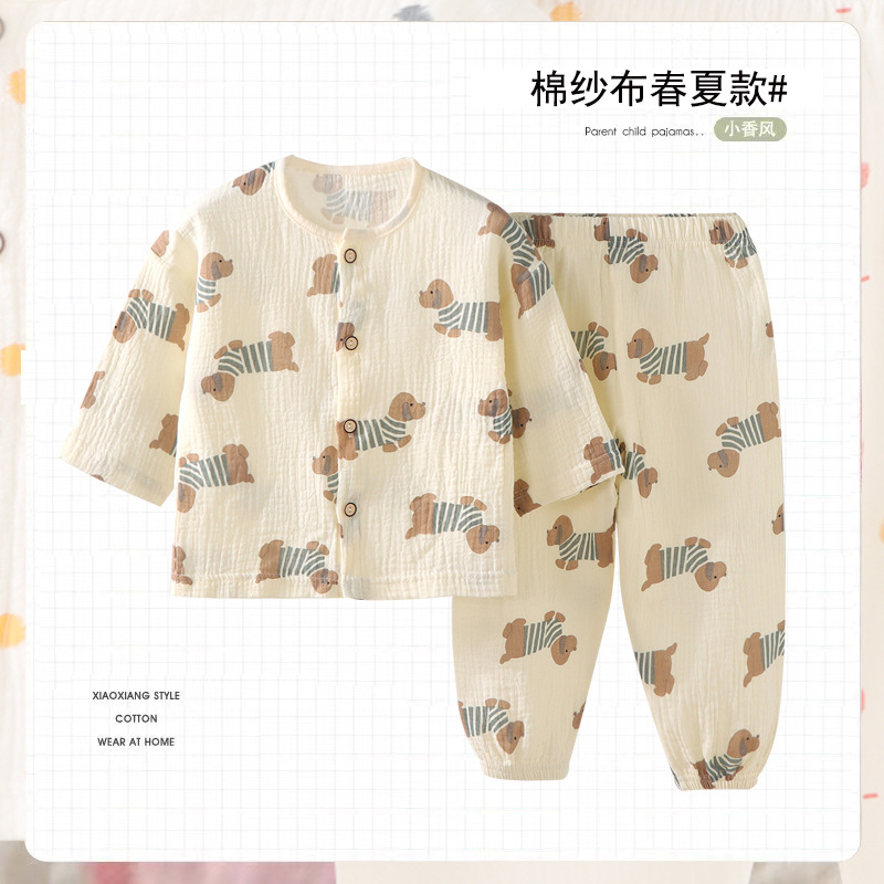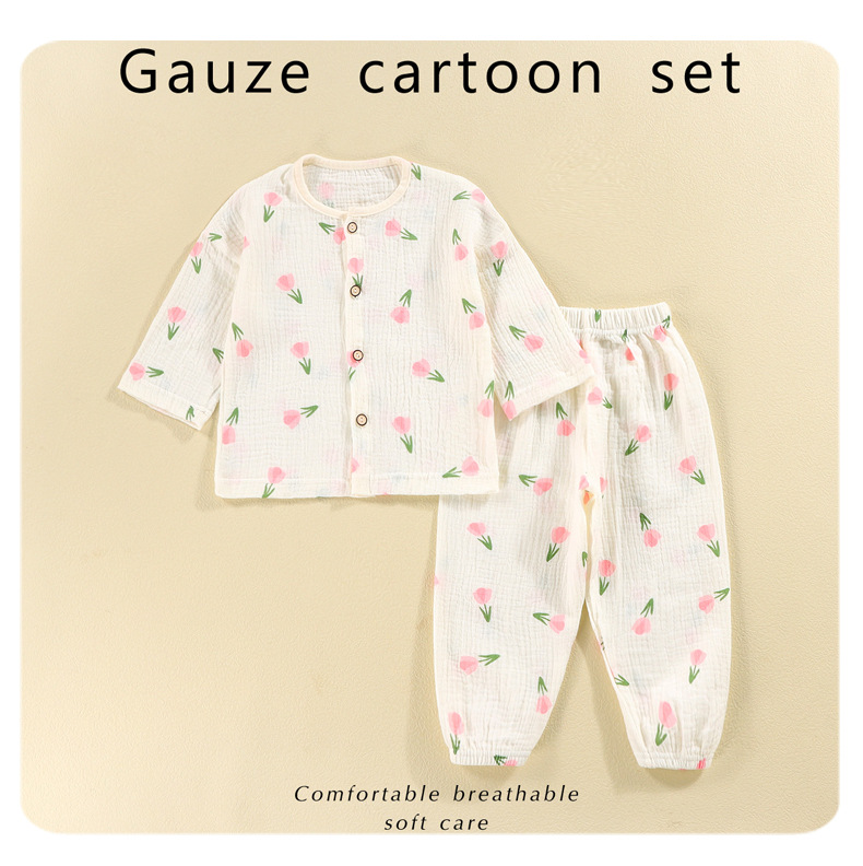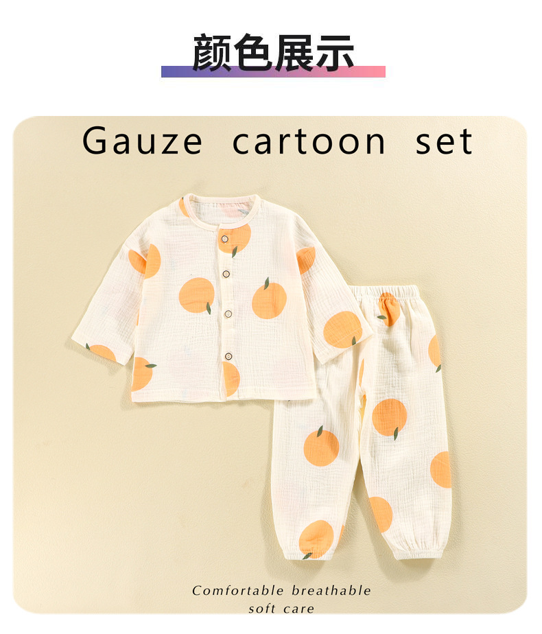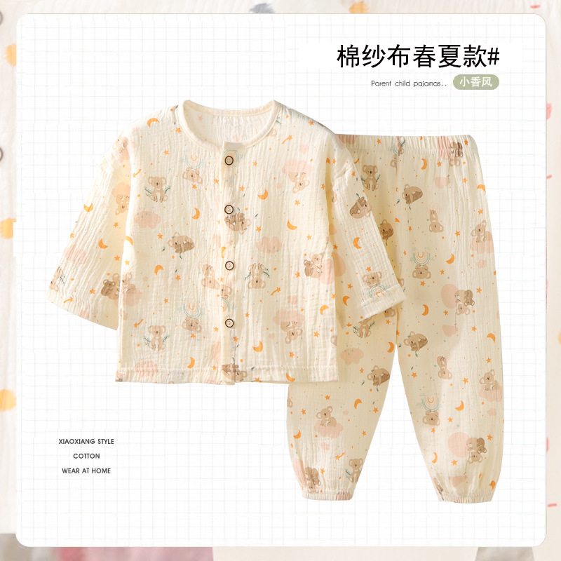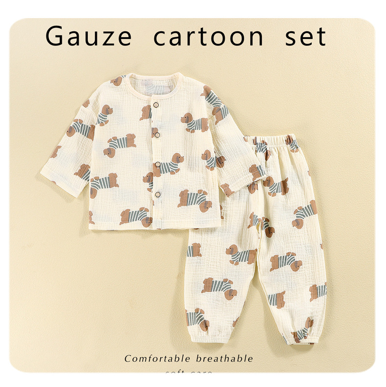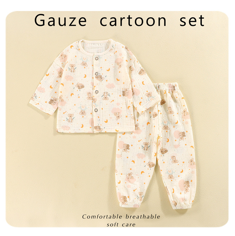새로운 봄과 가을 더블 레이어 코튼 원사 세트 아기 여름 만화 통기성 에어컨 옷 잠옷 어린이 가까이 맞는 홈웨어스토어 가기