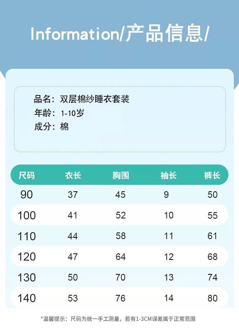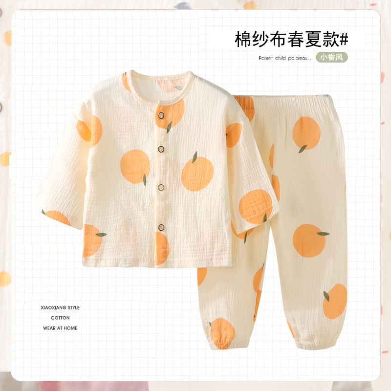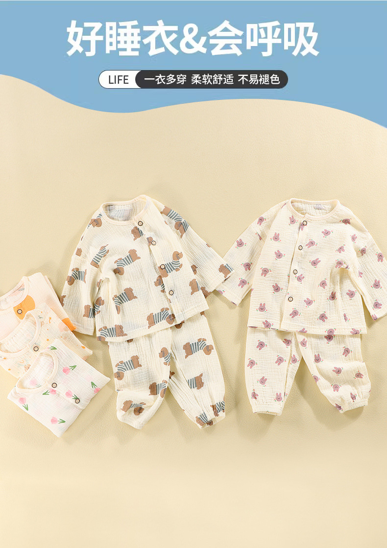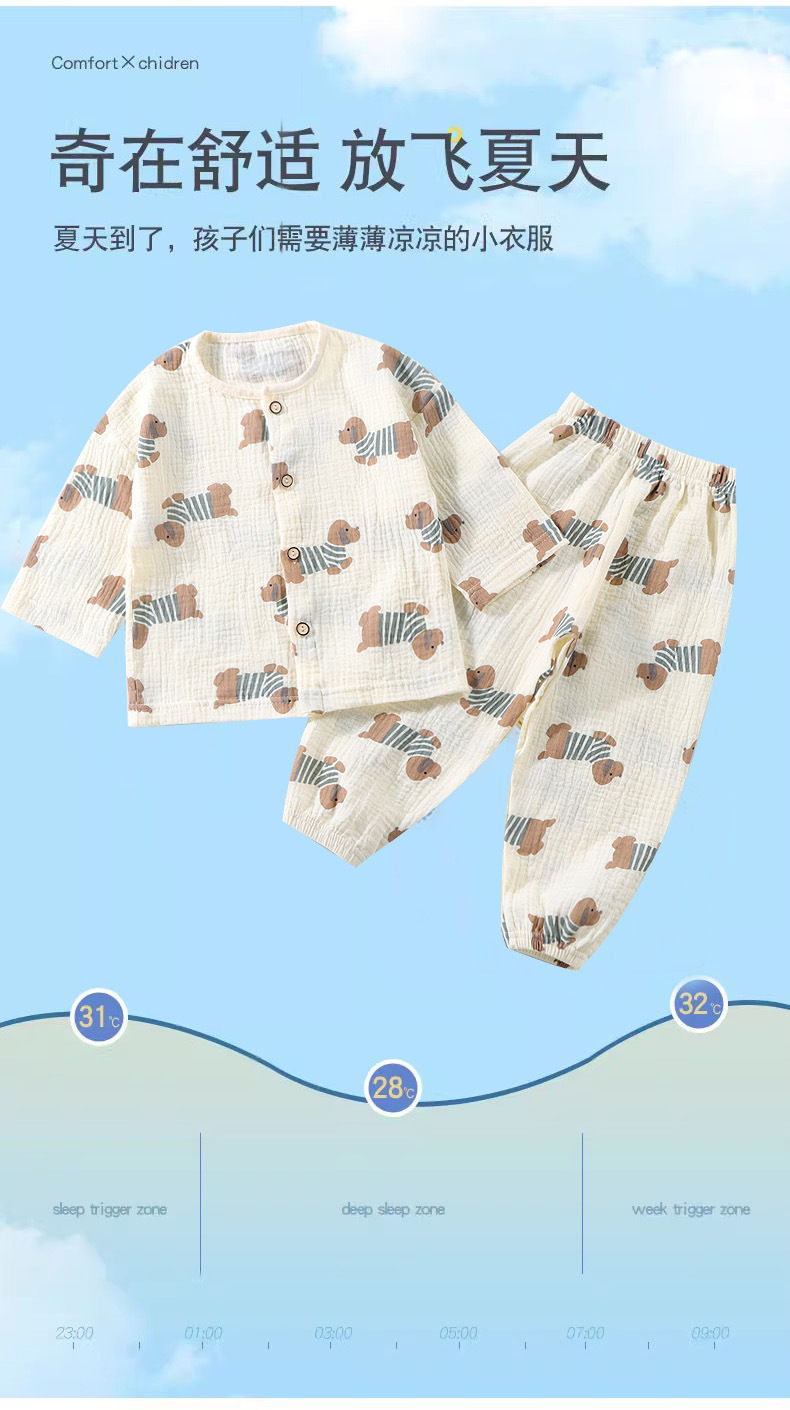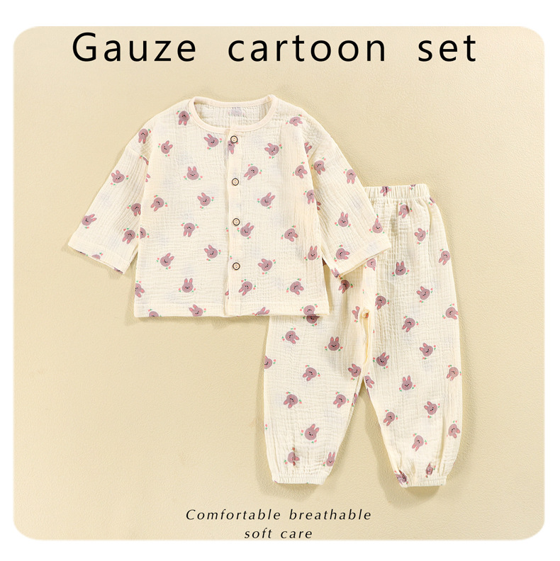 새로운 봄과 가을 더블 레이어 코튼 원사 세트 아기 여름 만화 통기성 에어컨 옷 잠옷 어린이 가까이 맞는 홈웨어스토어 가기
