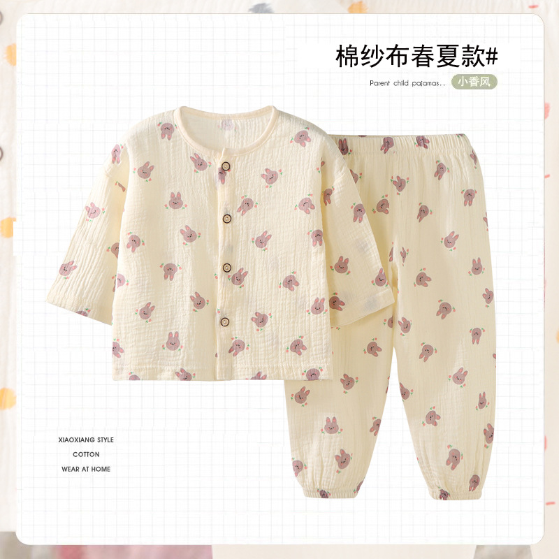 새로운 봄과 가을 더블 레이어 코튼 원사 세트 아기 여름 만화 통기성 에어컨 옷 잠옷 어린이 가까이 맞는 홈웨어