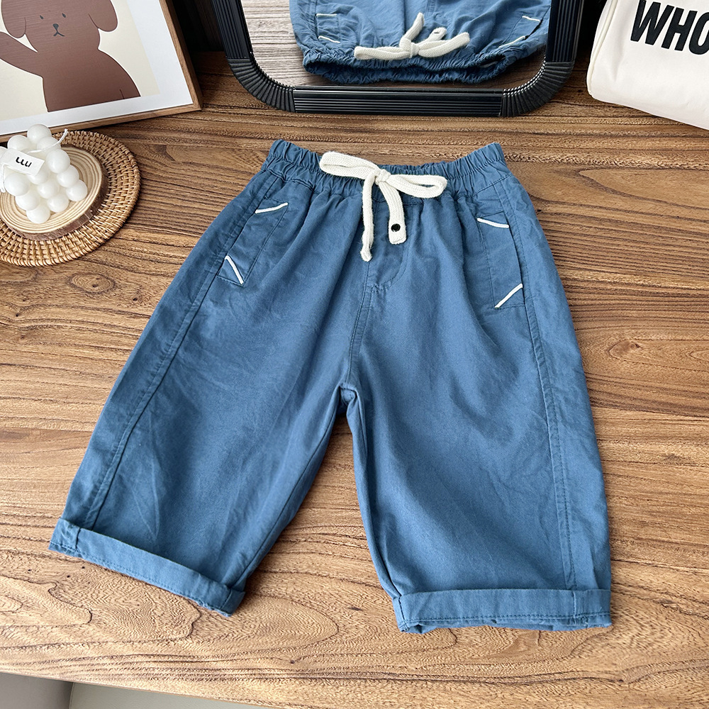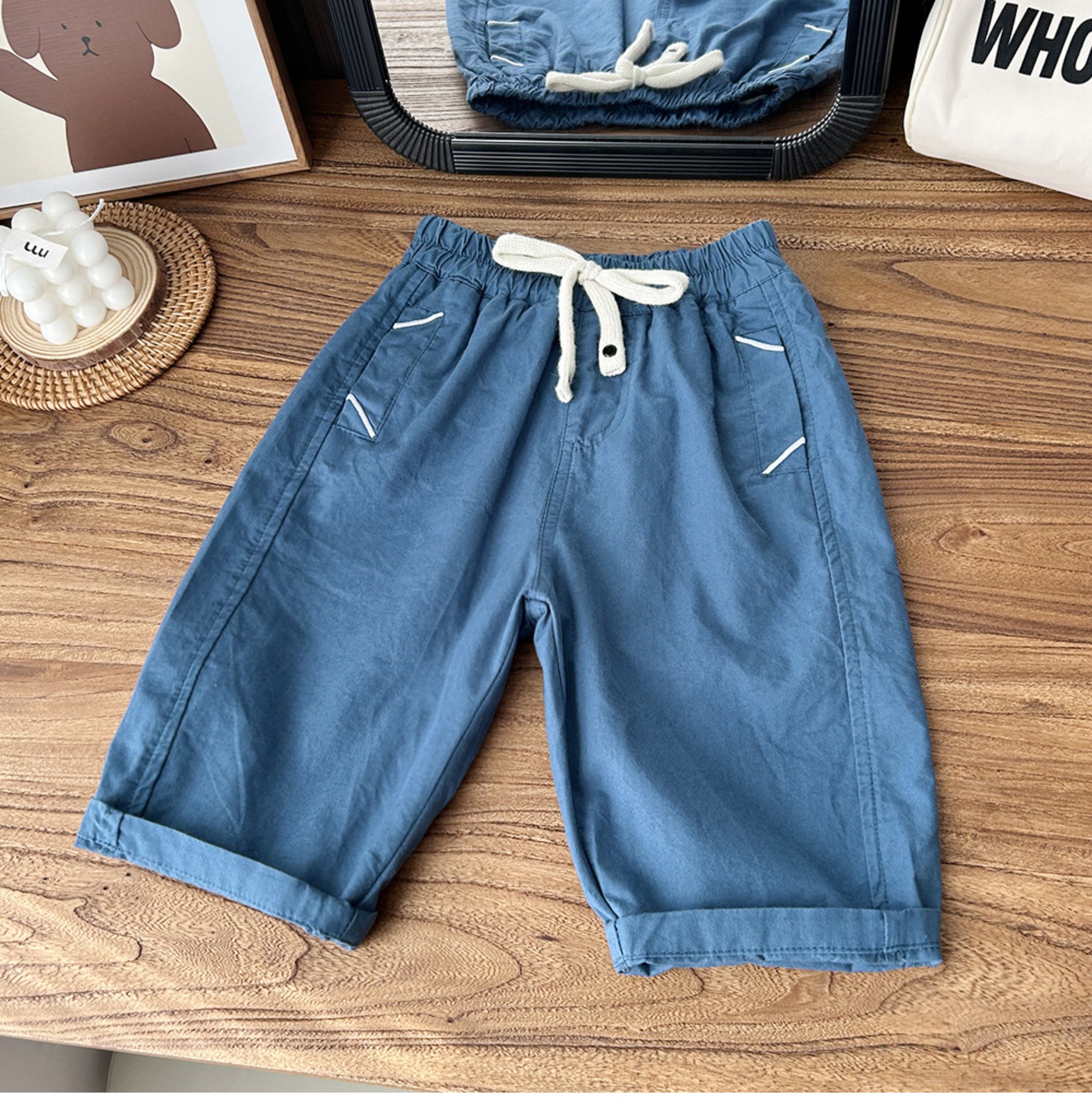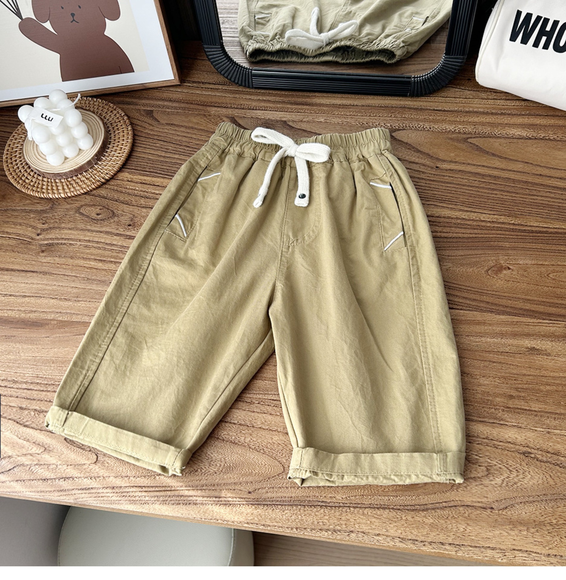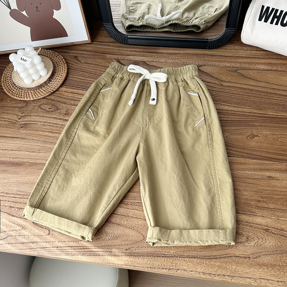 2024 여름 새로운 어린이 캐주얼 크롭 반바지 중대형 소년 느슨한 통기성 부드러운 비치 크롭 바지