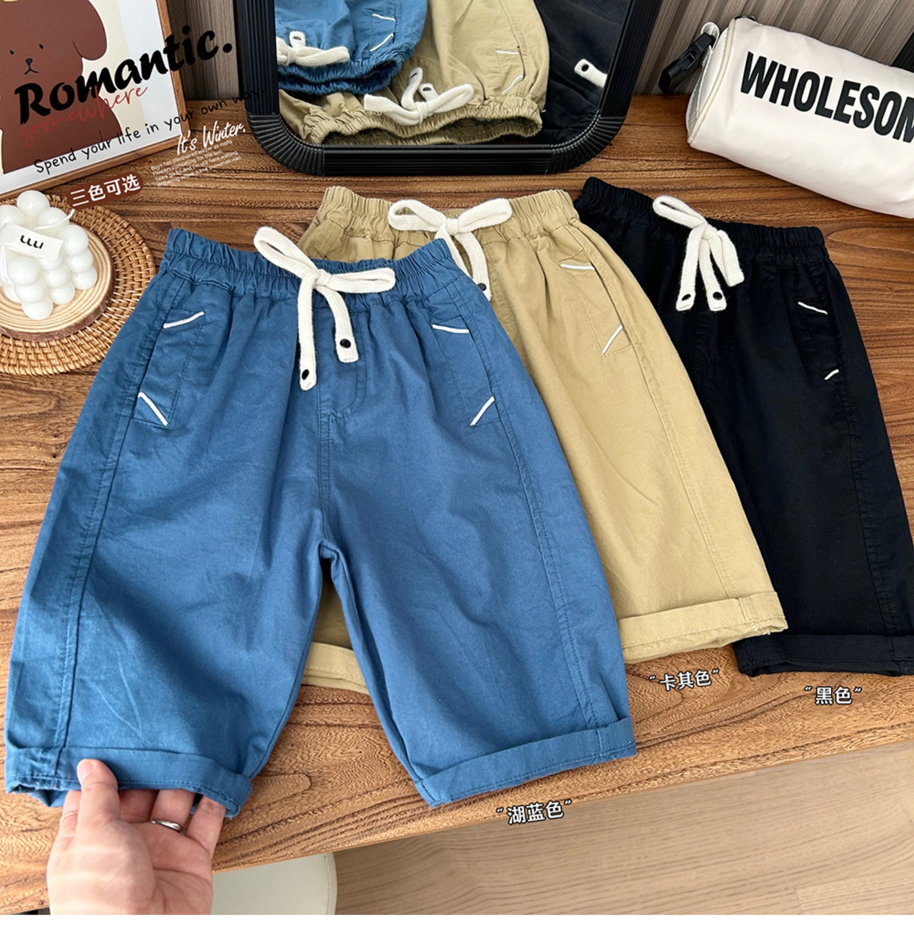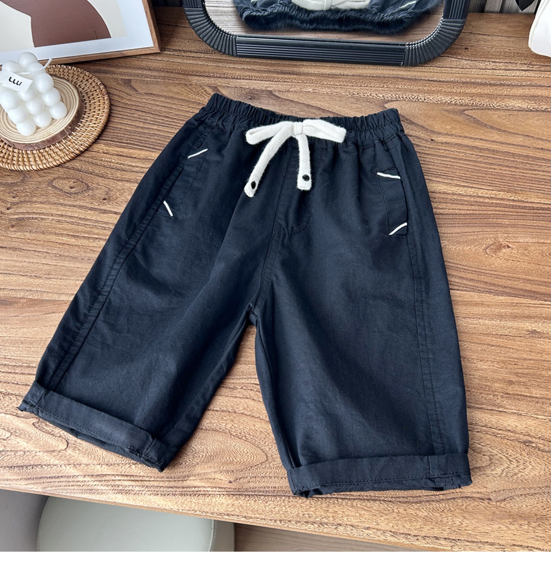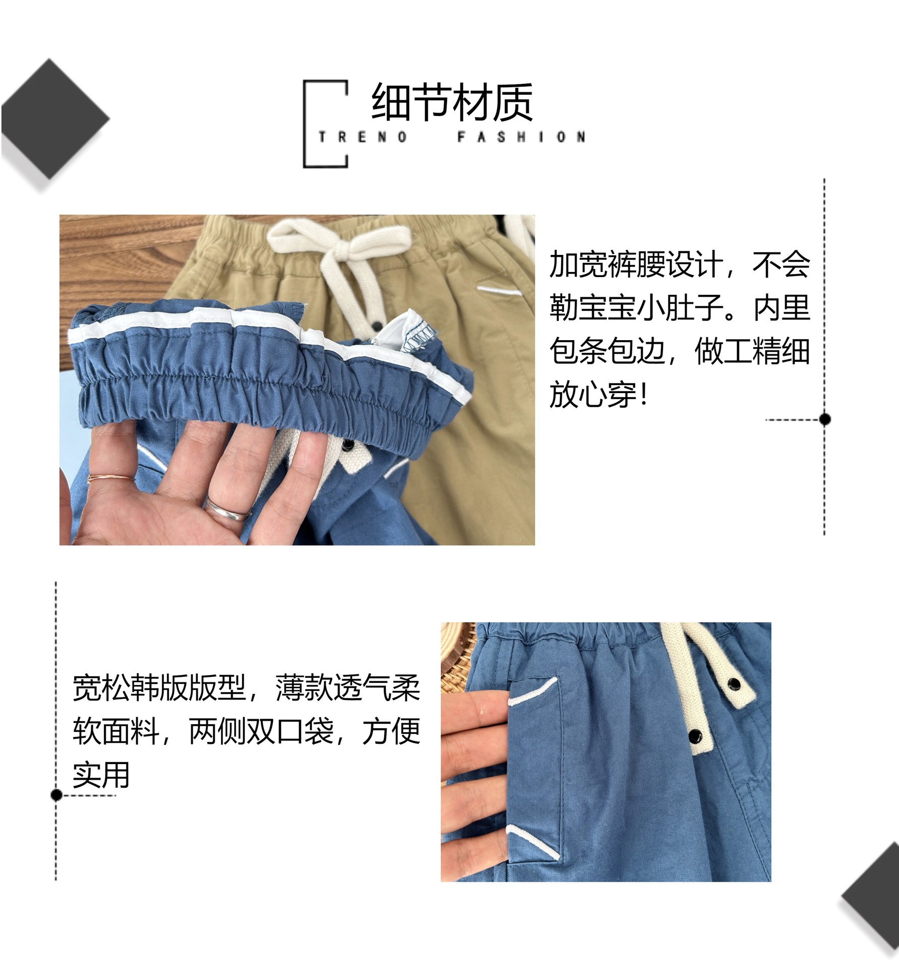 2024 여름 새로운 어린이 캐주얼 크롭 반바지 중대형 소년 느슨한 통기성 부드러운 비치 크롭 바지