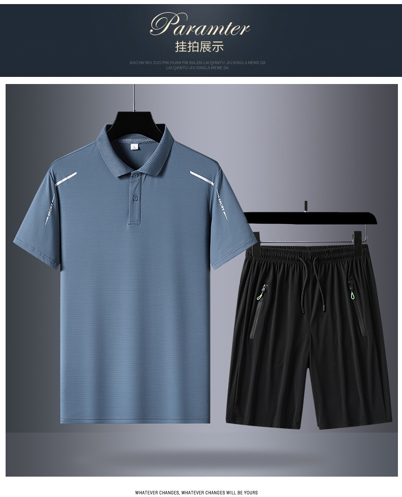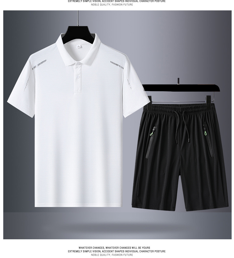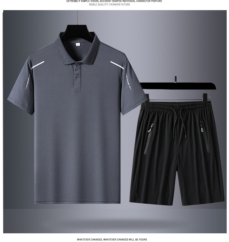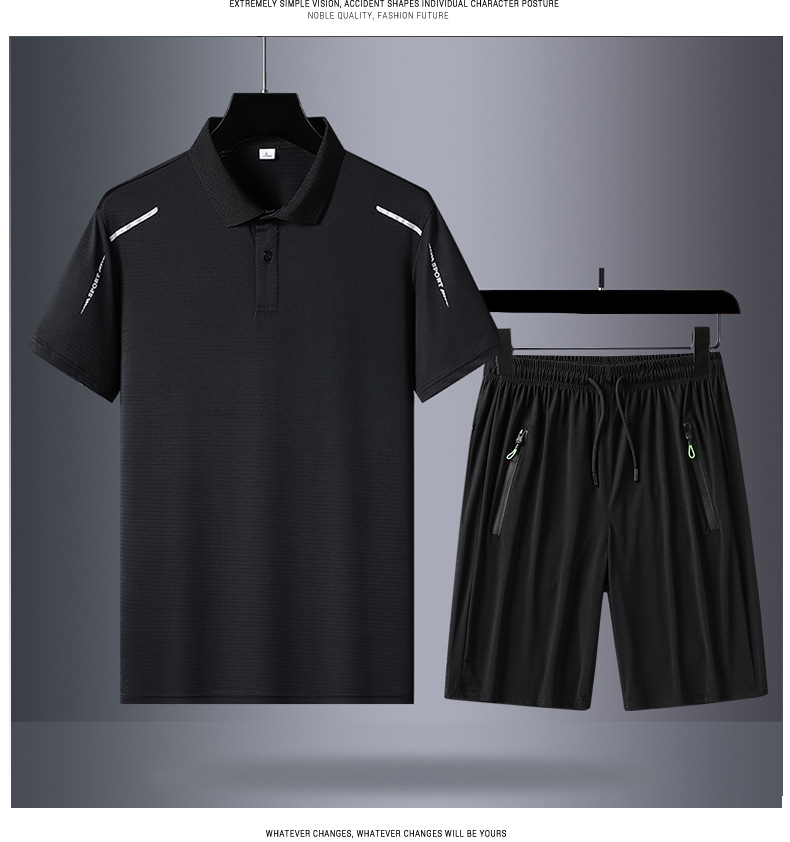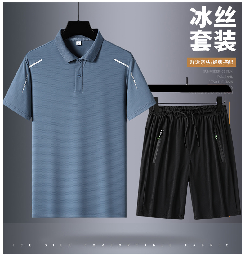 스포츠 세트 남성 여름 중년 캐주얼 아이스 실크 반팔 폴로 티셔츠 반바지 플러스 사이즈 빠른 건조 투피스 세트