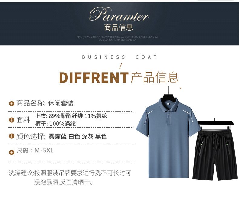 스포츠 세트 남성 여름 중년 캐주얼 아이스 실크 반팔 폴로 티셔츠 반바지 플러스 사이즈 빠른 건조 투피스 세트스토어 가기
