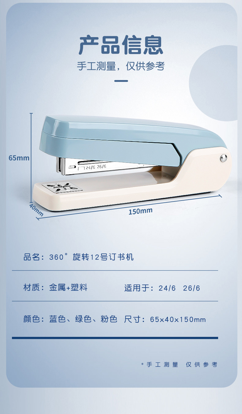 대형 360 회전 스테이플러 노동 절약 패션 사무실 학생 네일 풀러 높은 색상 값 No. 12 네일 스테이플러