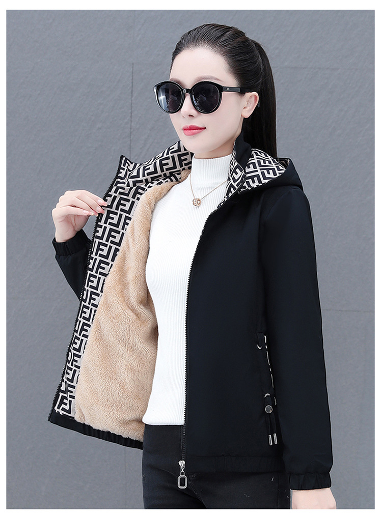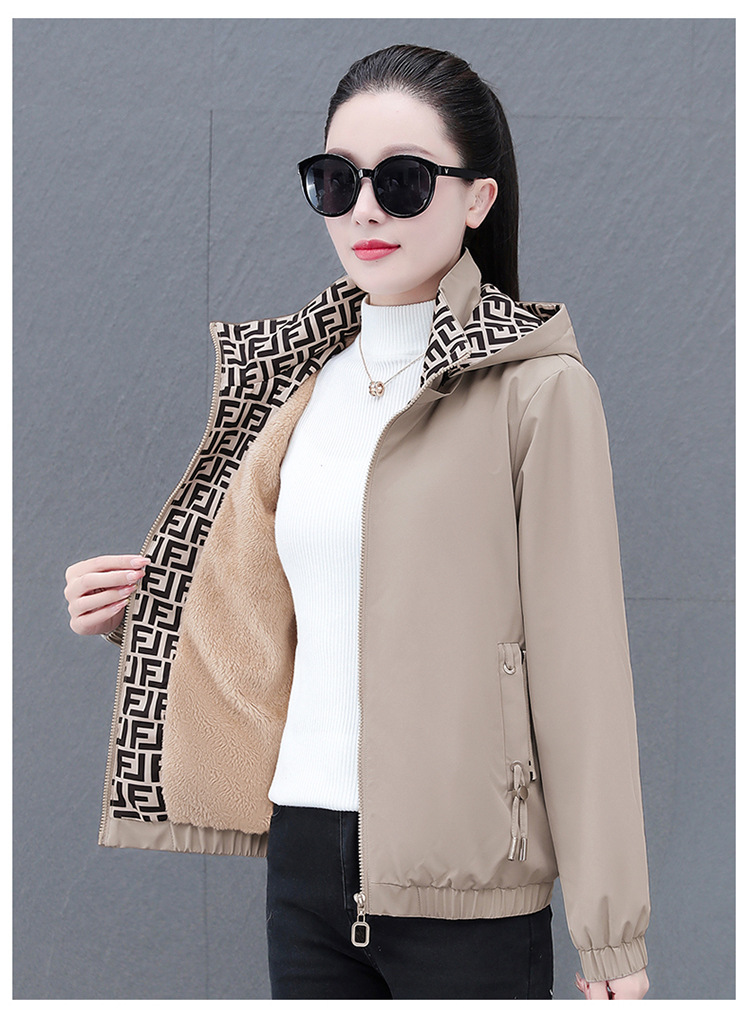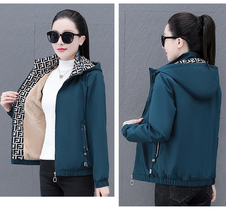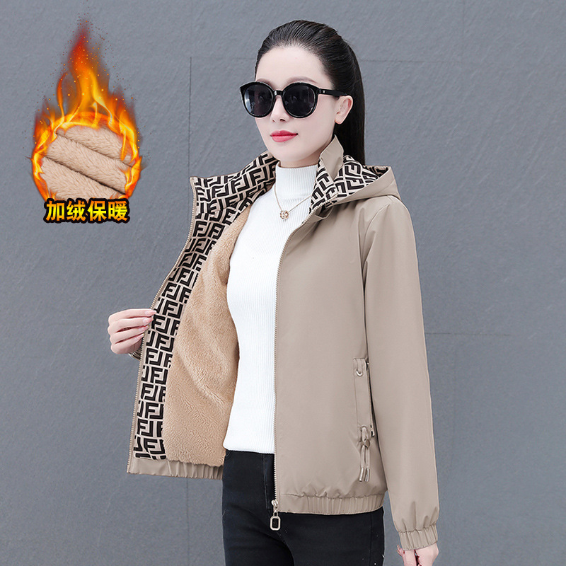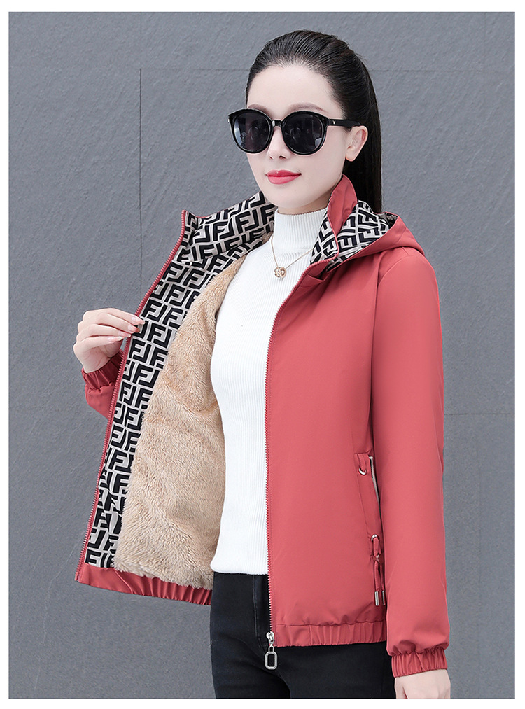 중년 엄마 람스울 기모 두꺼운 따뜻한 재킷 코트 여성의 가을과 겨울 후드 분리 가능한 캐주얼 탑