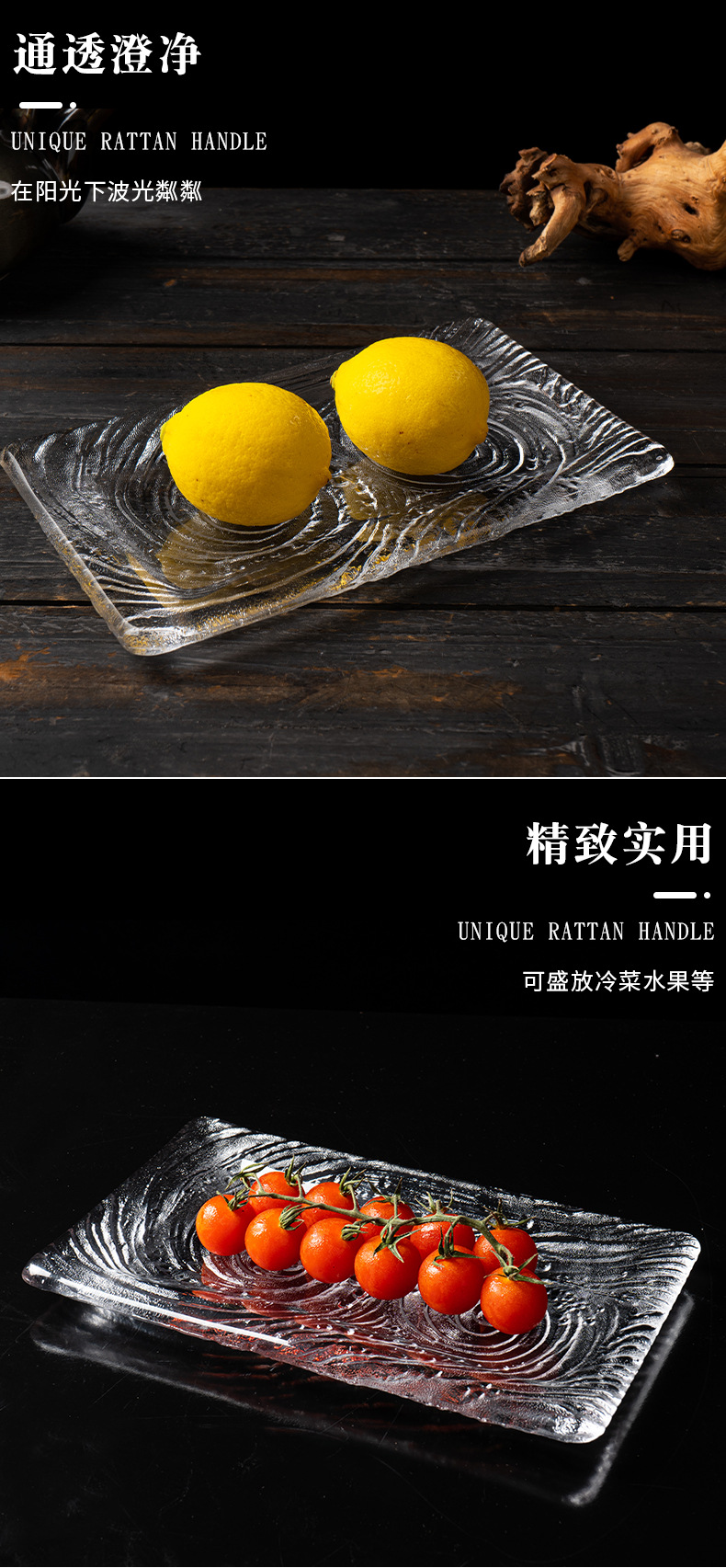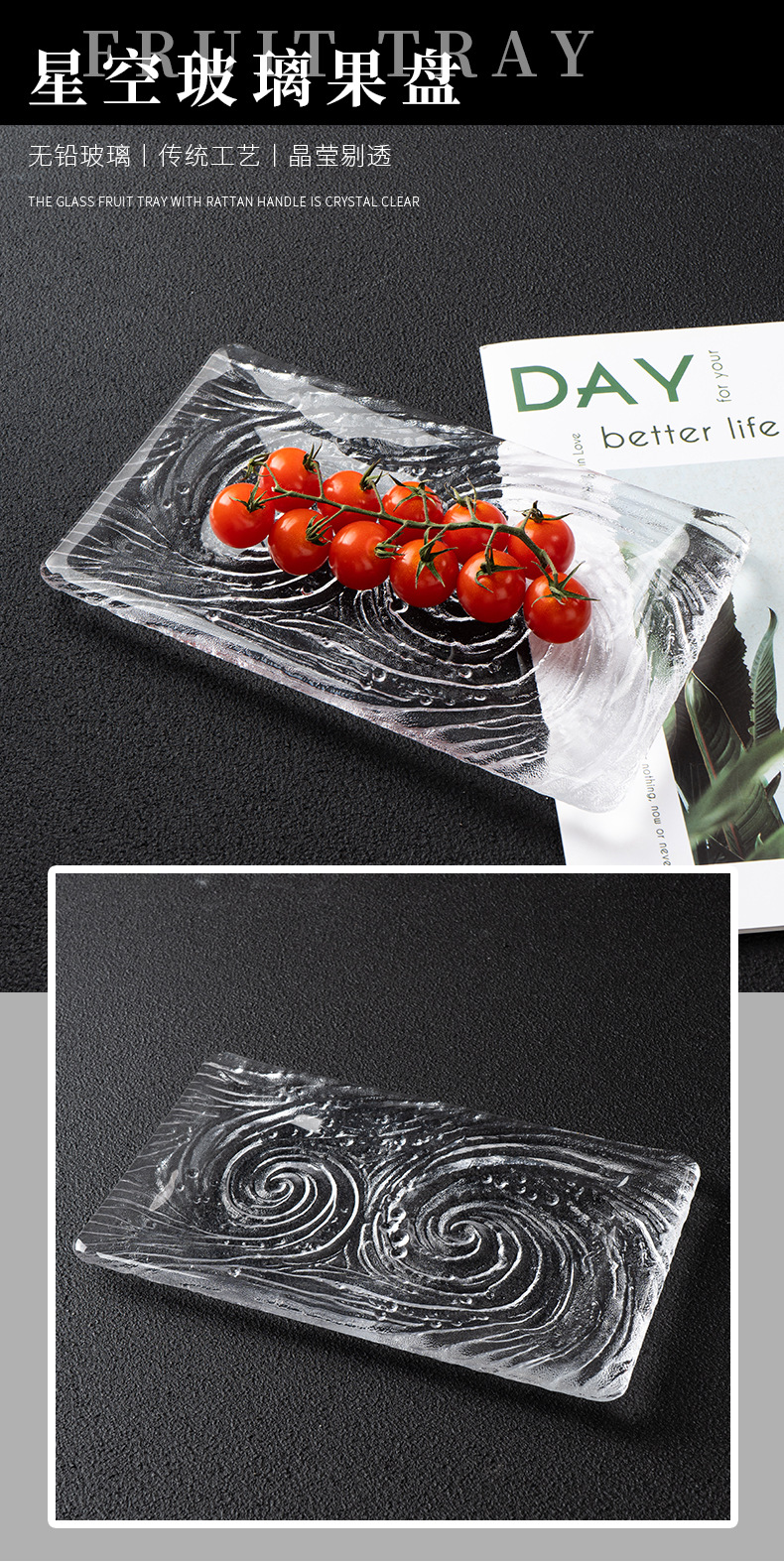 크리스탈 유리 차 세트 차 트레이 가정용 트레이 차 간식 과일 접시 주전자 받침대 직사각형 별빛 과일 접시 별빛 과일 트레이
