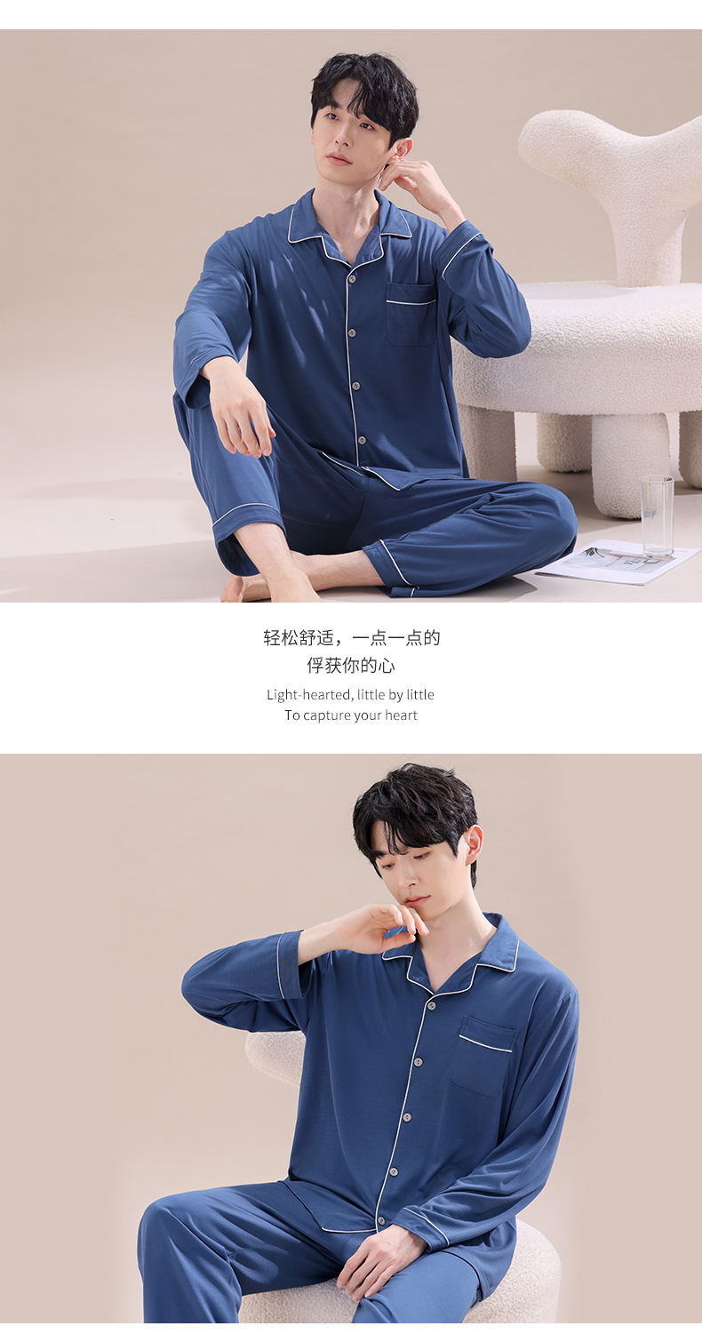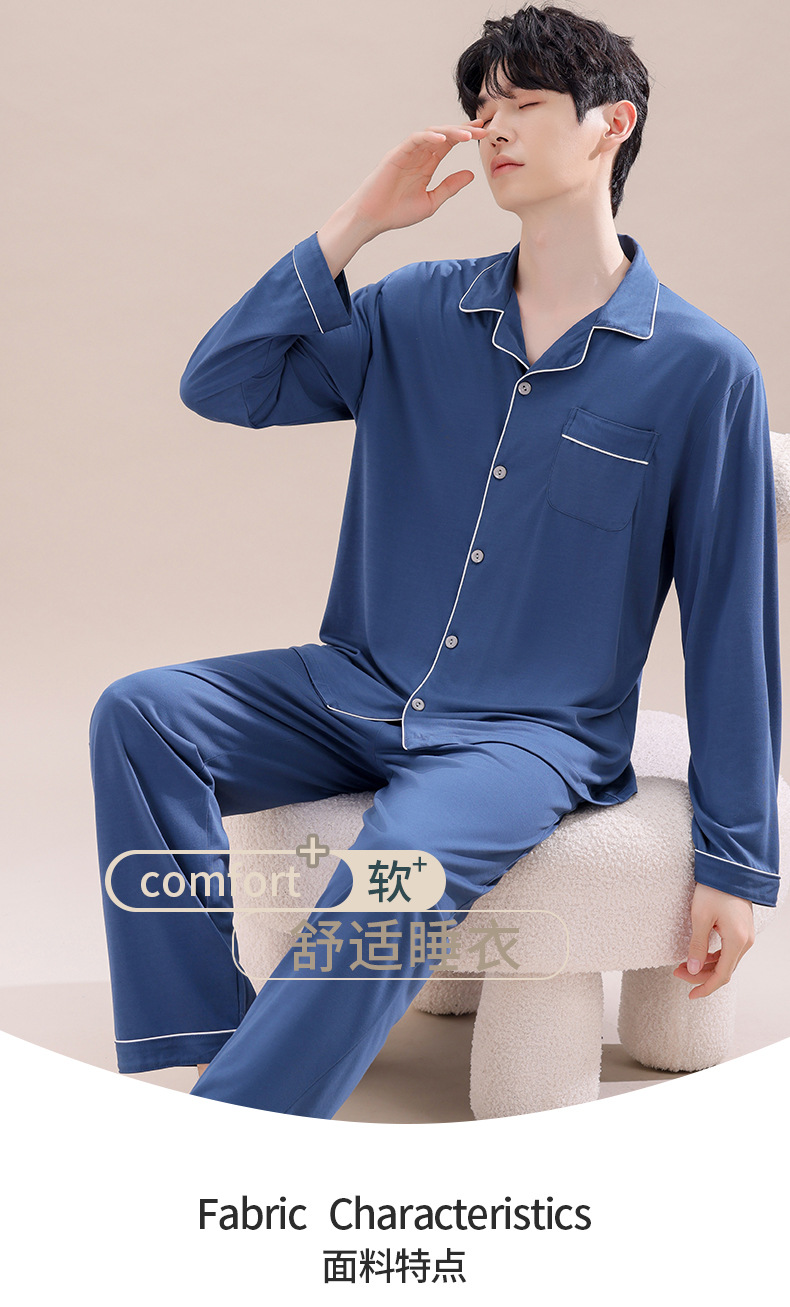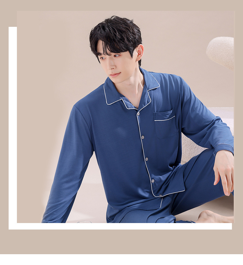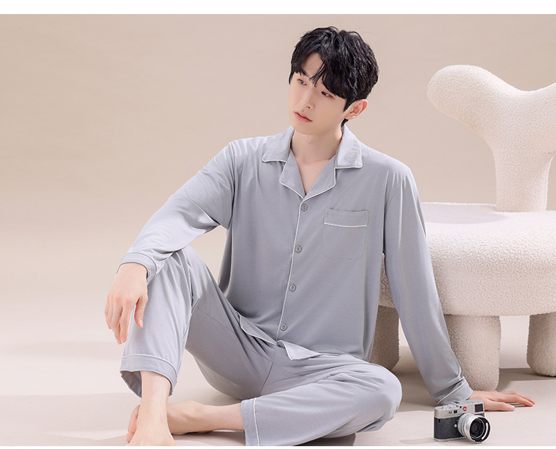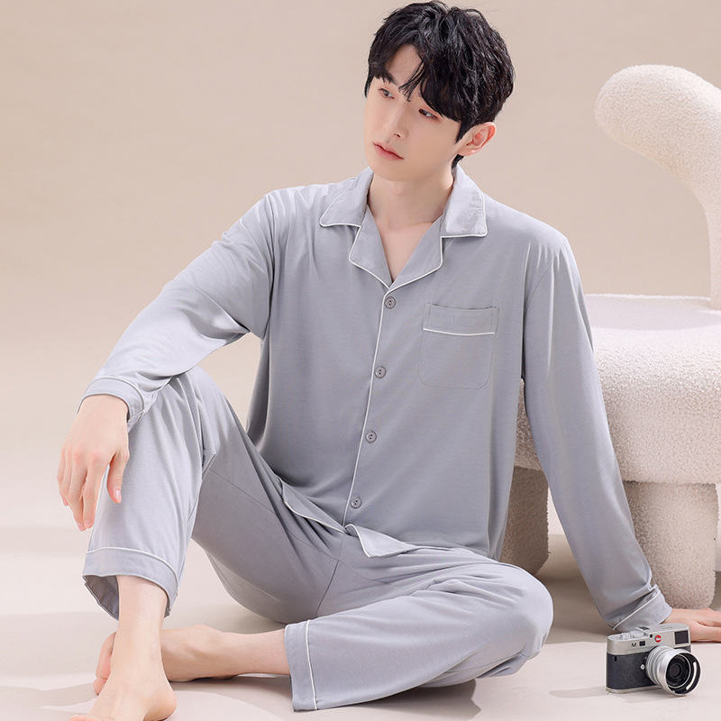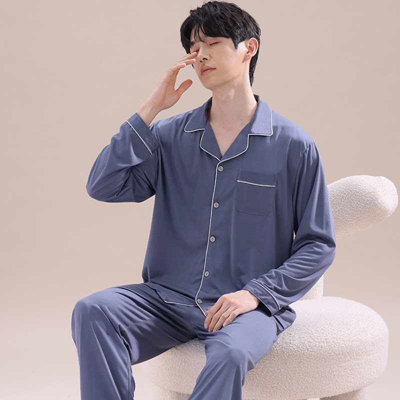 2025년 신상품 비스코스 잠옷 남성용 긴팔 잠옷 봄 가을 청소년 남학생 홈웨어 세트스토어 가기