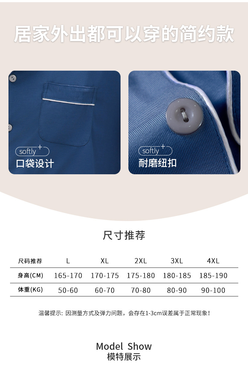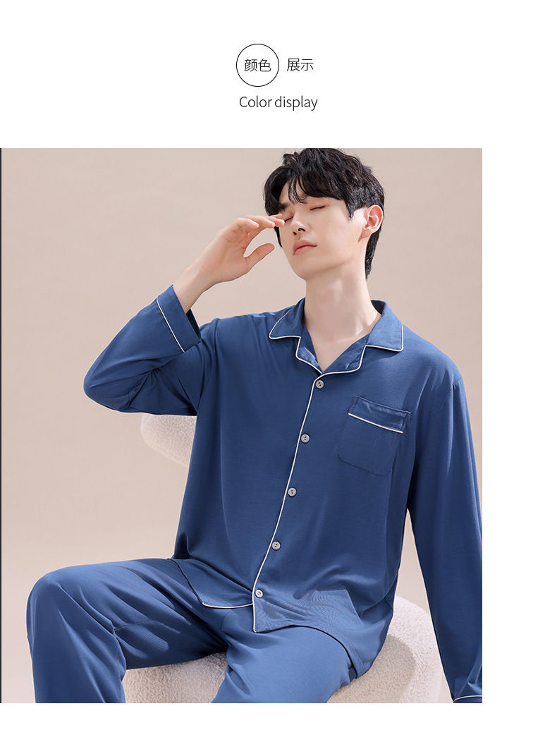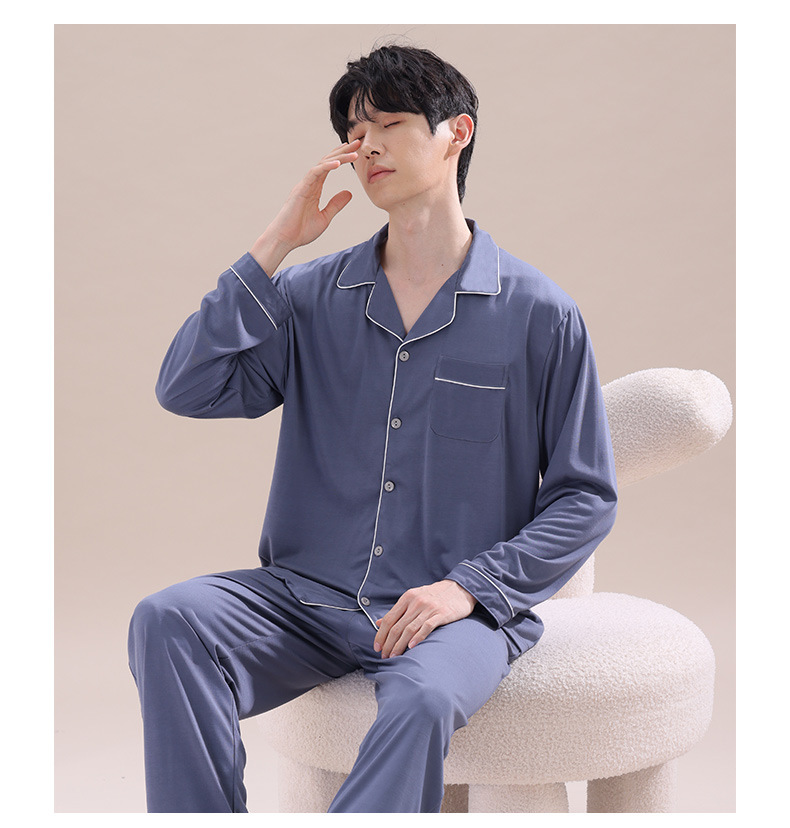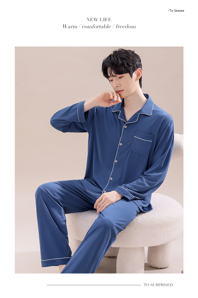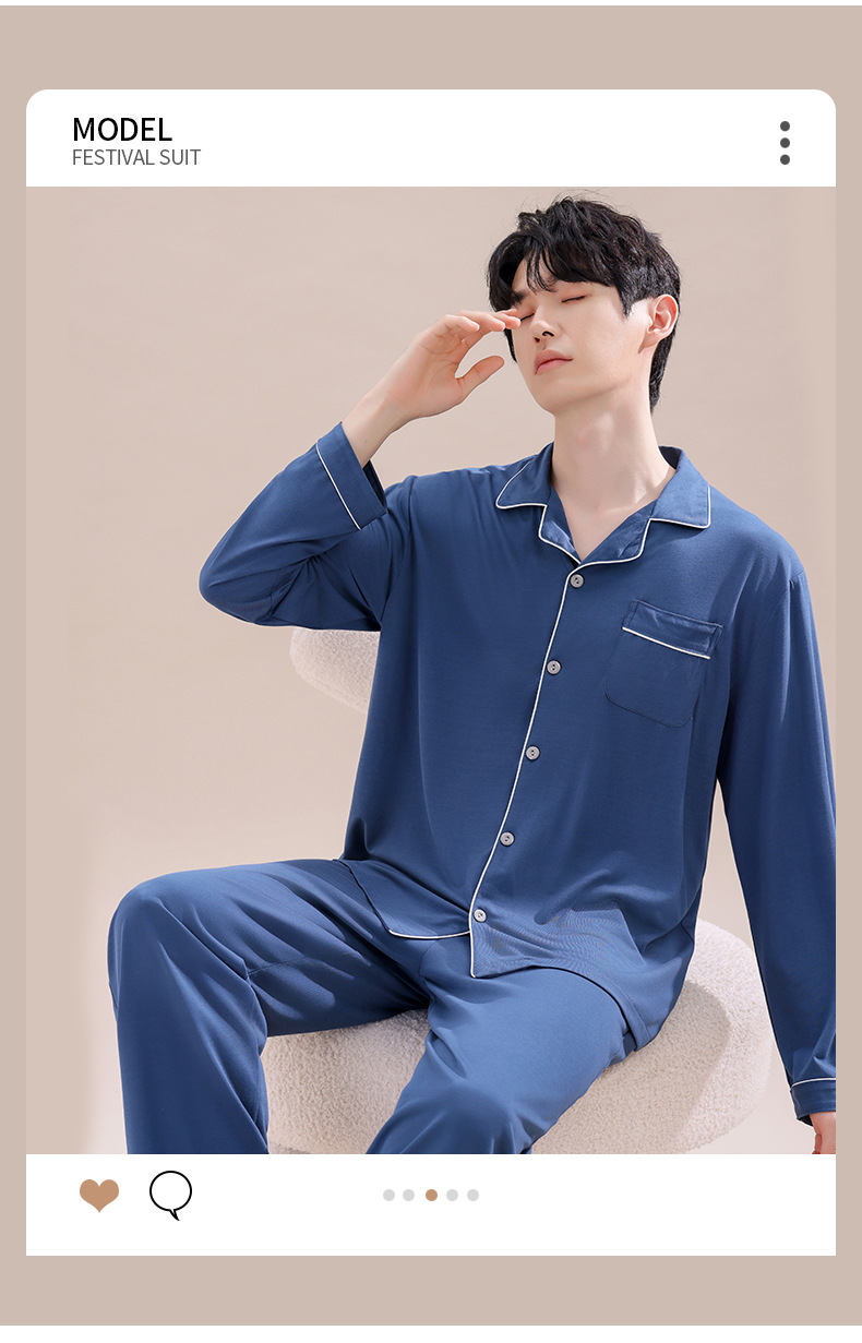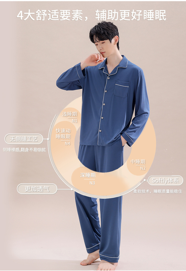 2025년 신상품 비스코스 잠옷 남성용 긴팔 잠옷 봄 가을 청소년 남학생 홈웨어 세트스토어 가기
