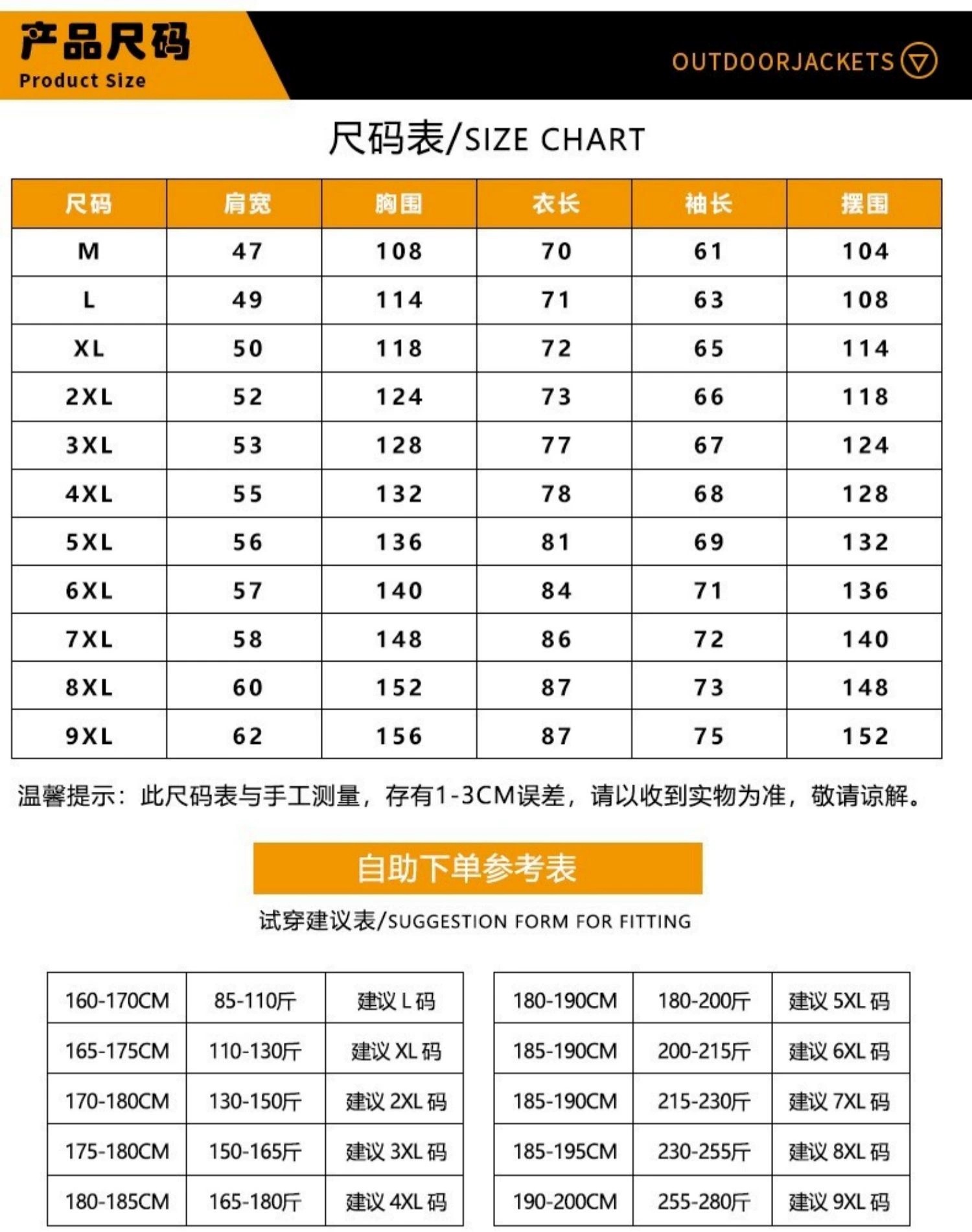 • 9XL 는 약 127.50 kg-140.00 kg에 적합합니다.