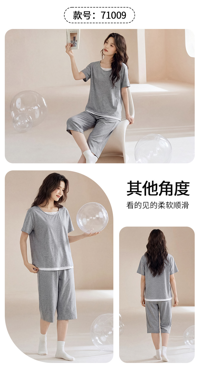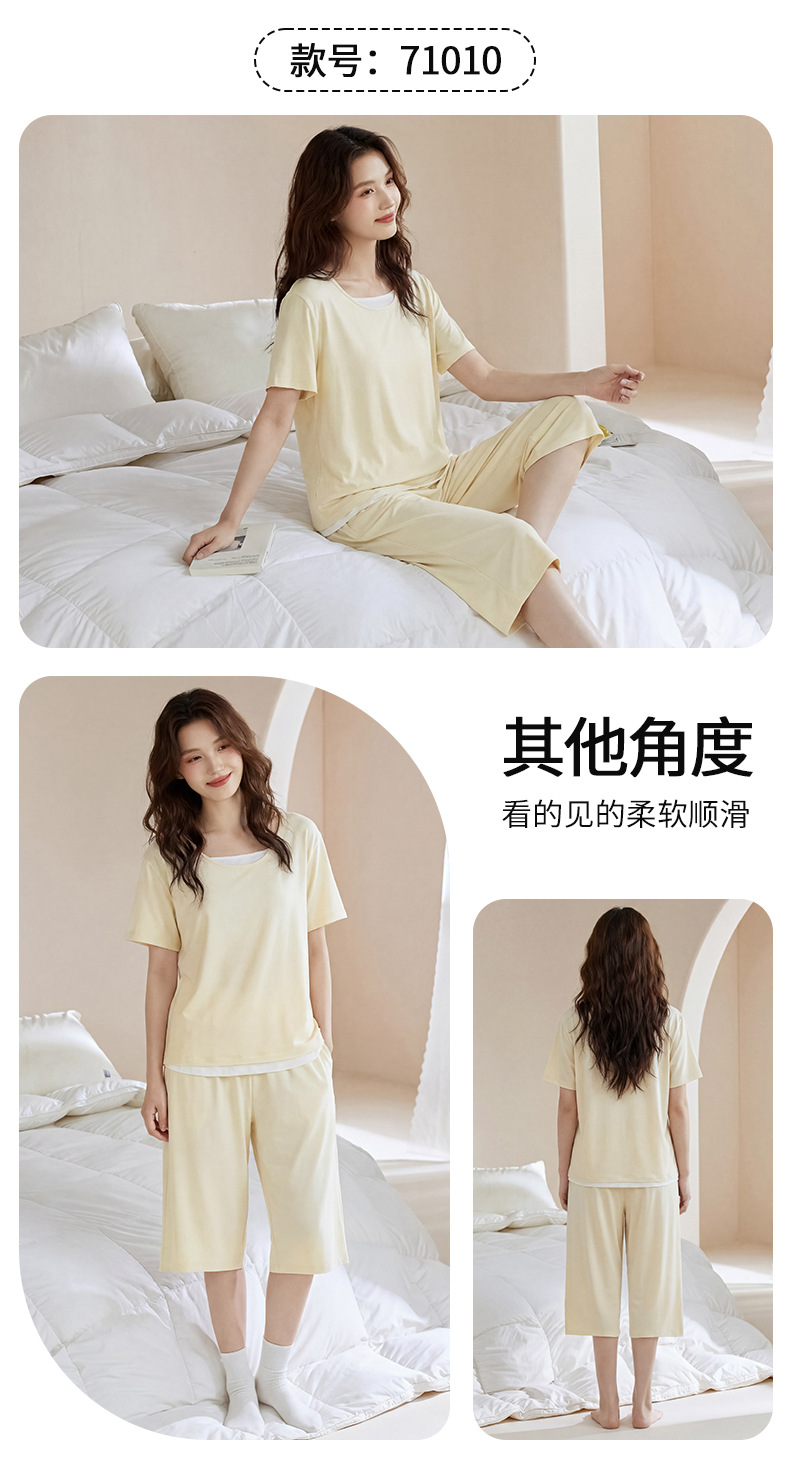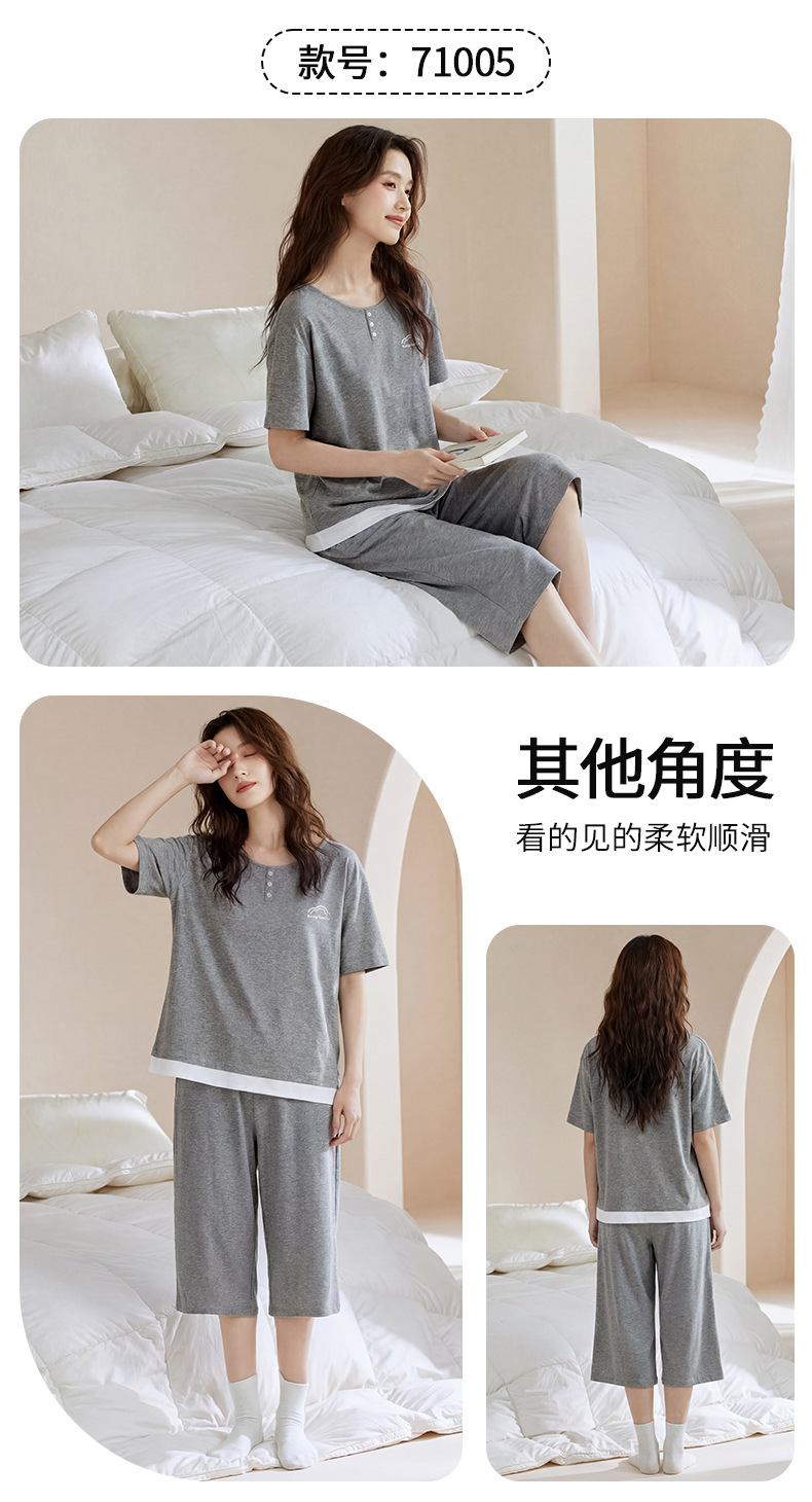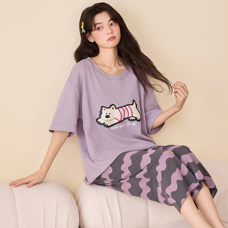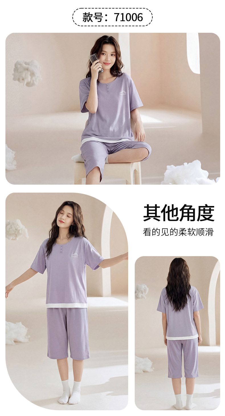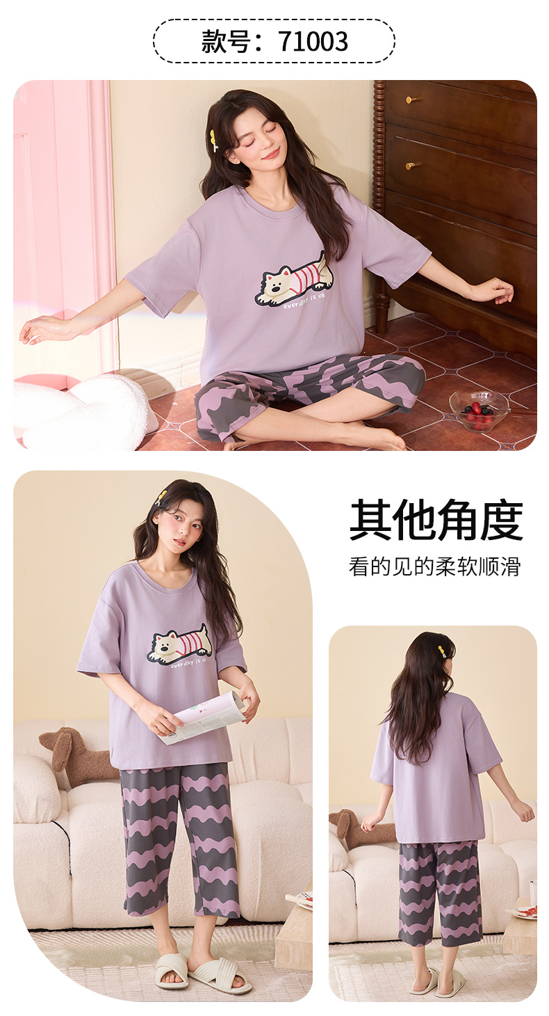 100% 면 잠옷 여성 반팔 크롭 팬츠 한국 여름 새로운 느슨한 캐주얼 학생 홈웨어 세트 얇은스토어 가기