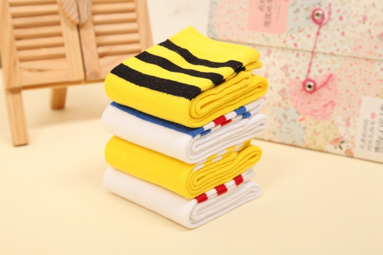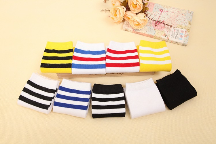 봄과 가을 학생 양말 대학 스타일 스트라이프 심플한면 긴 3 바 편안한 스포츠 어린이 중간 종아리 길이 양말