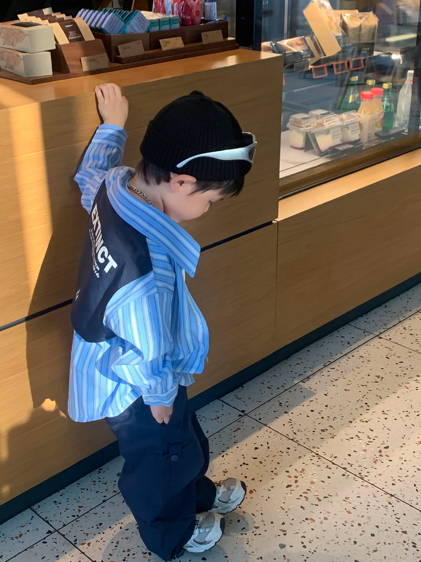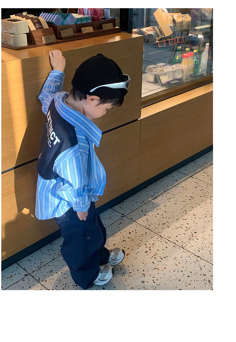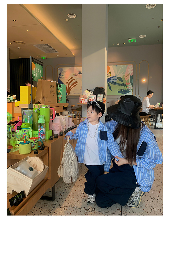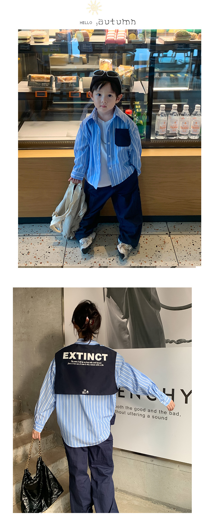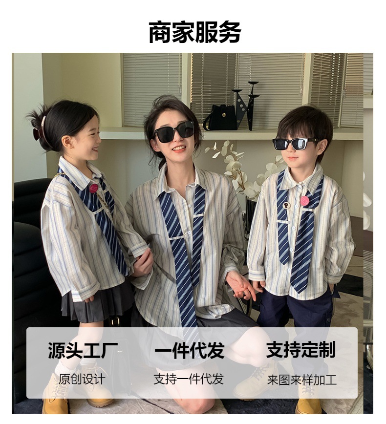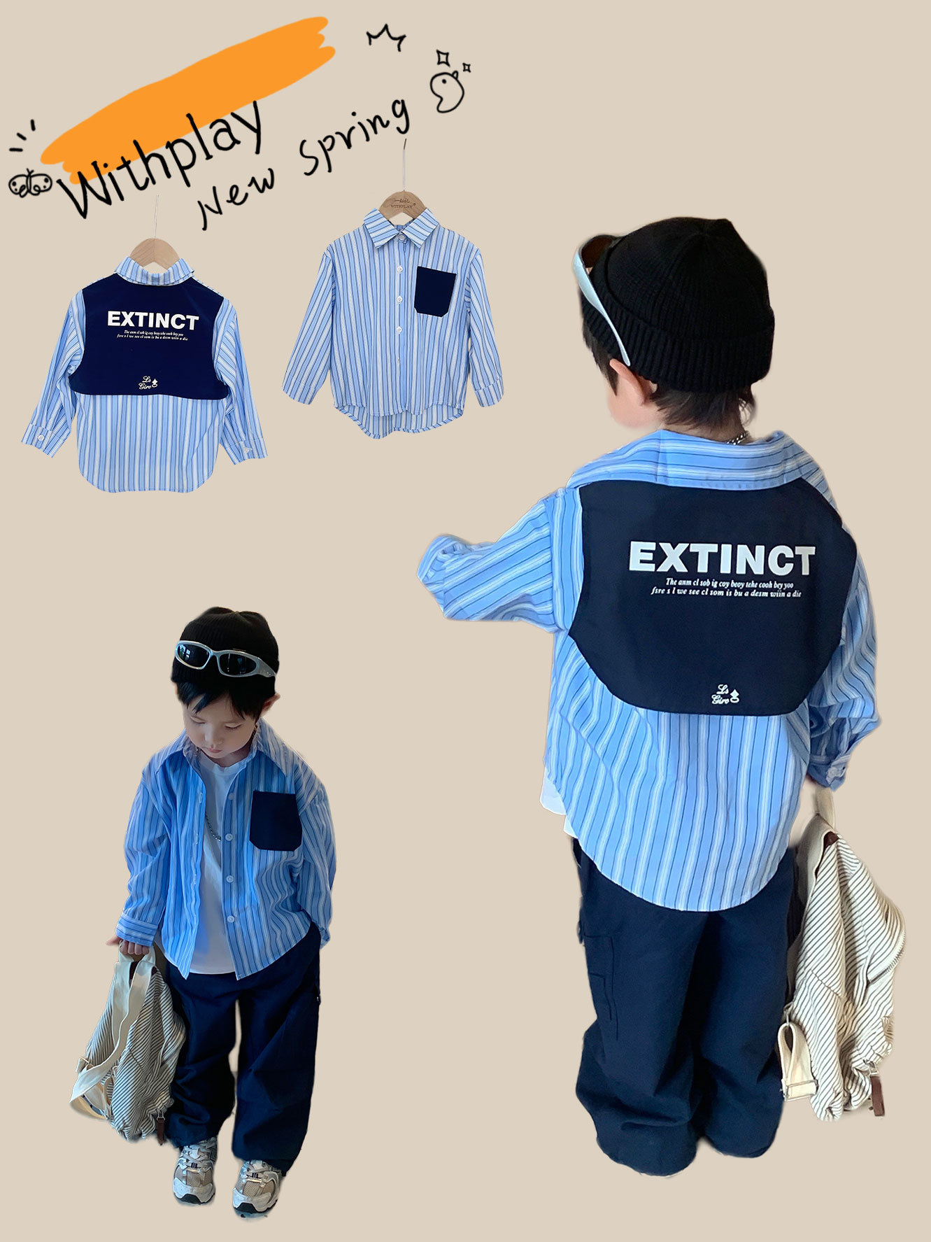 달콤하고 신 봄 새로운 한국 스타일 남녀 작업복 스타일 셔츠 형제 자매 의류 줄무늬 가짜 투피스 셔츠스토어 가기