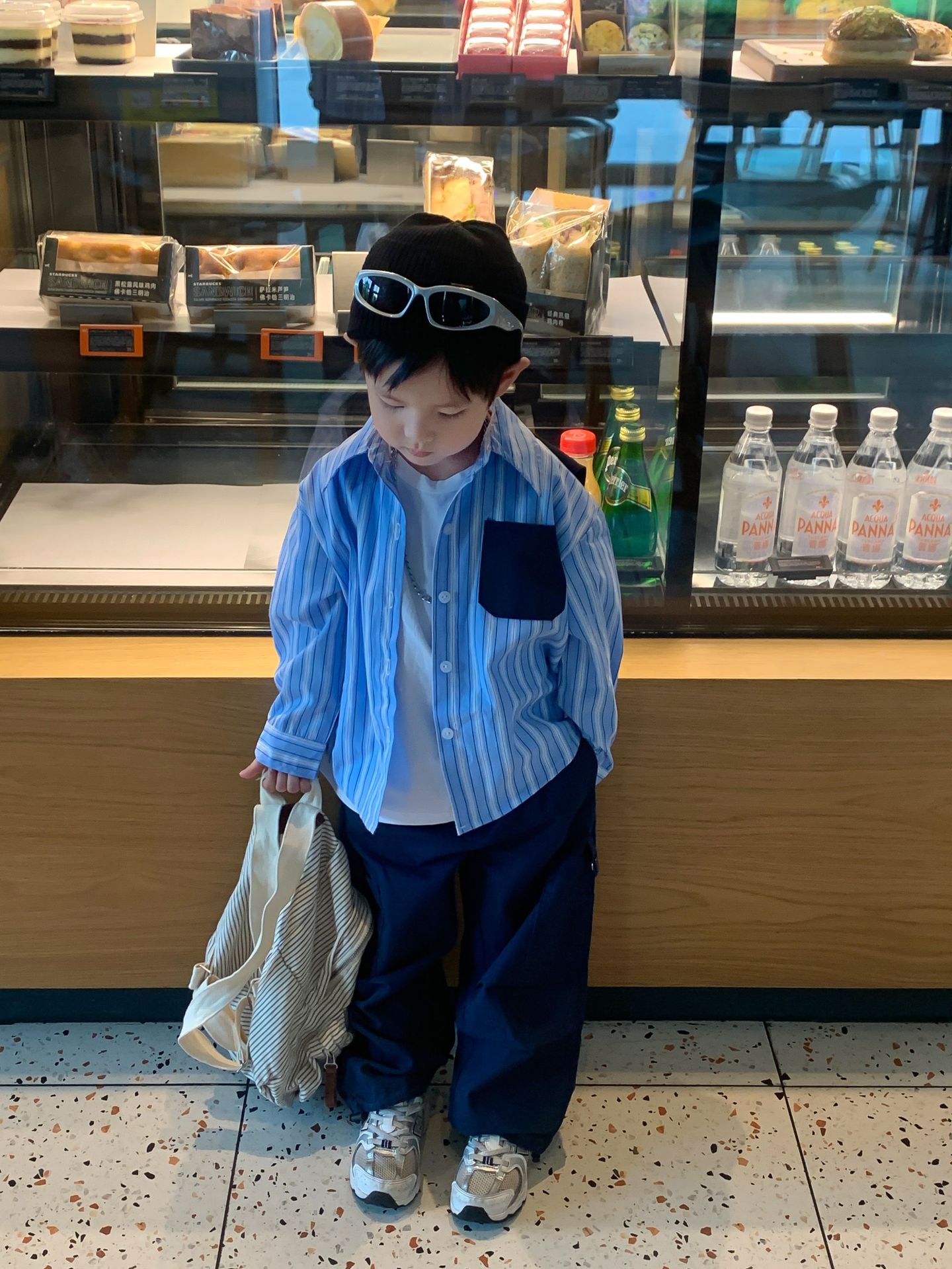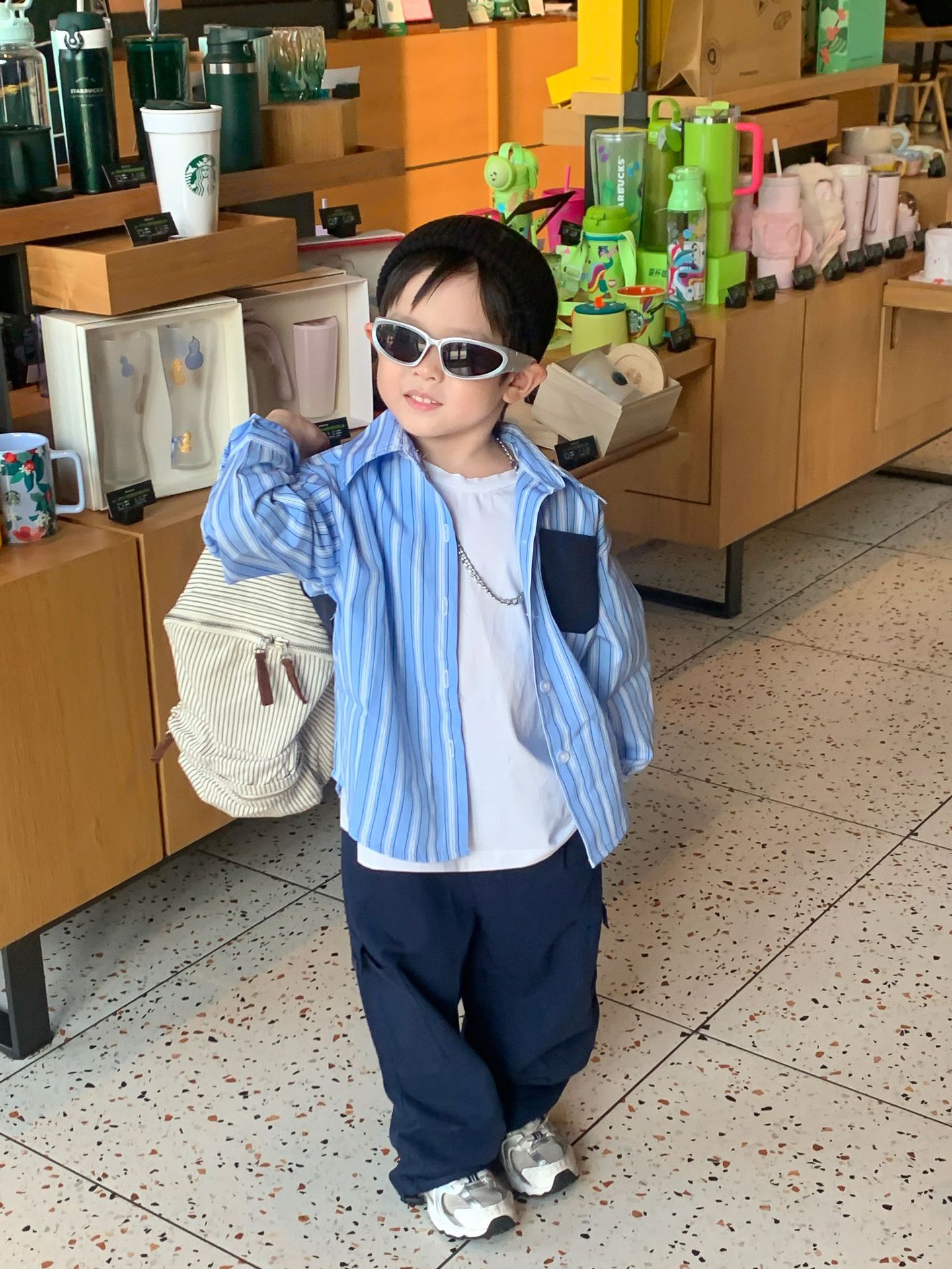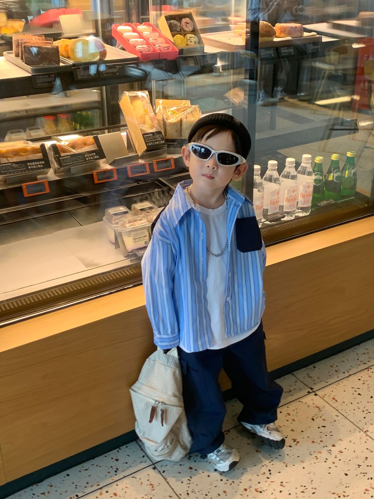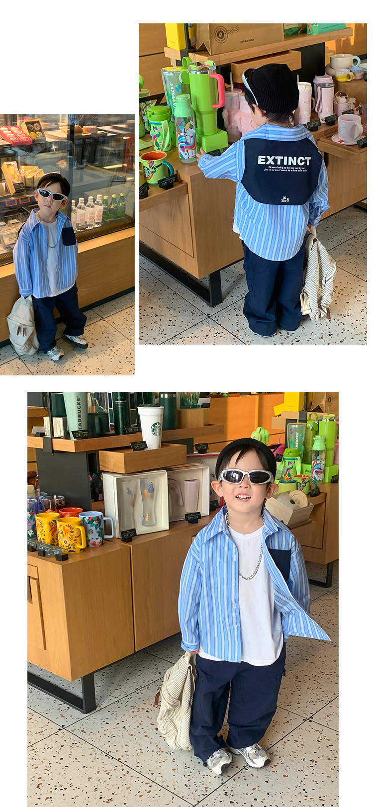 달콤하고 신 봄 새로운 한국 스타일 남녀 작업복 스타일 셔츠 형제 자매 의류 줄무늬 가짜 투피스 셔츠스토어 가기