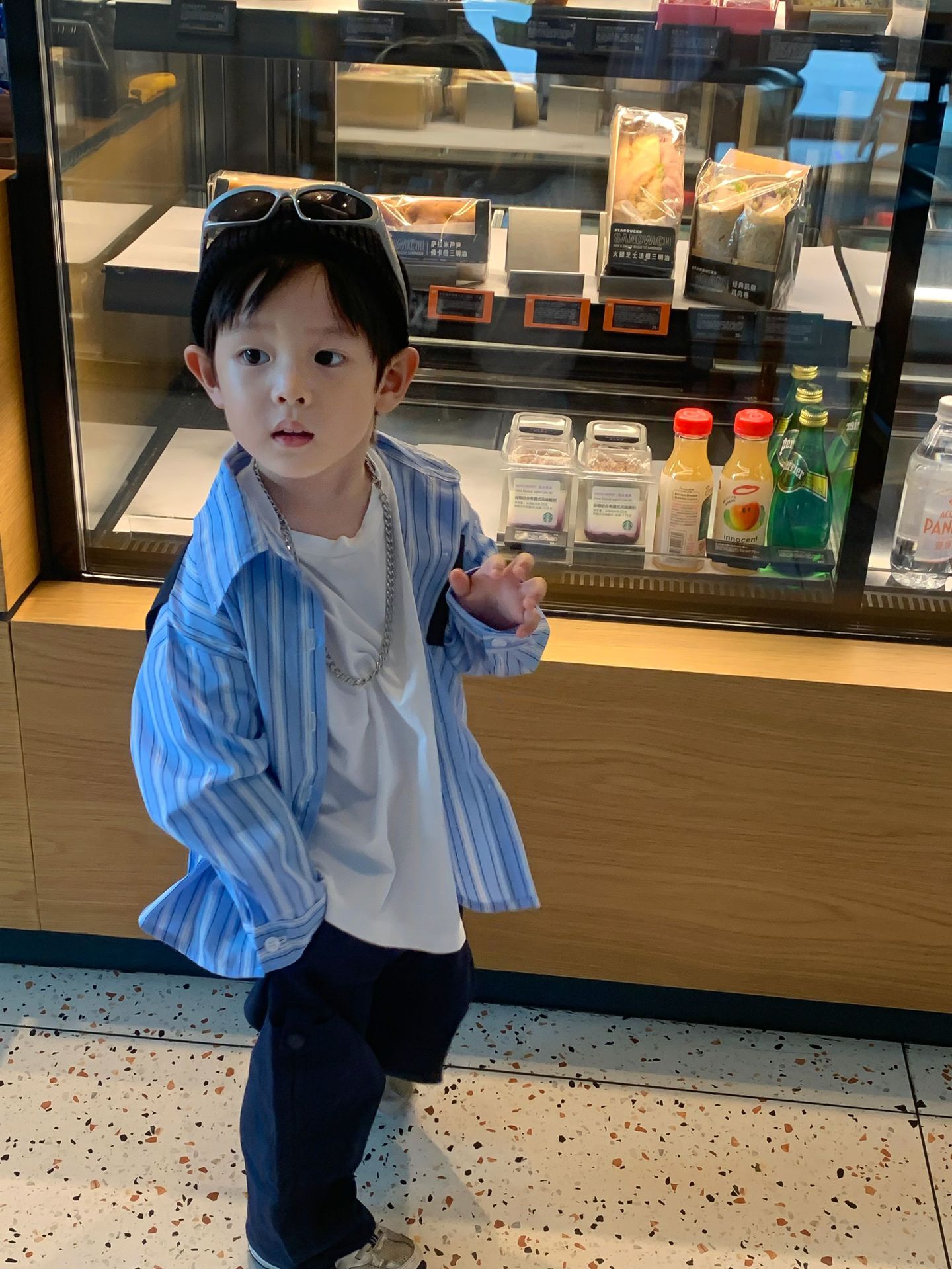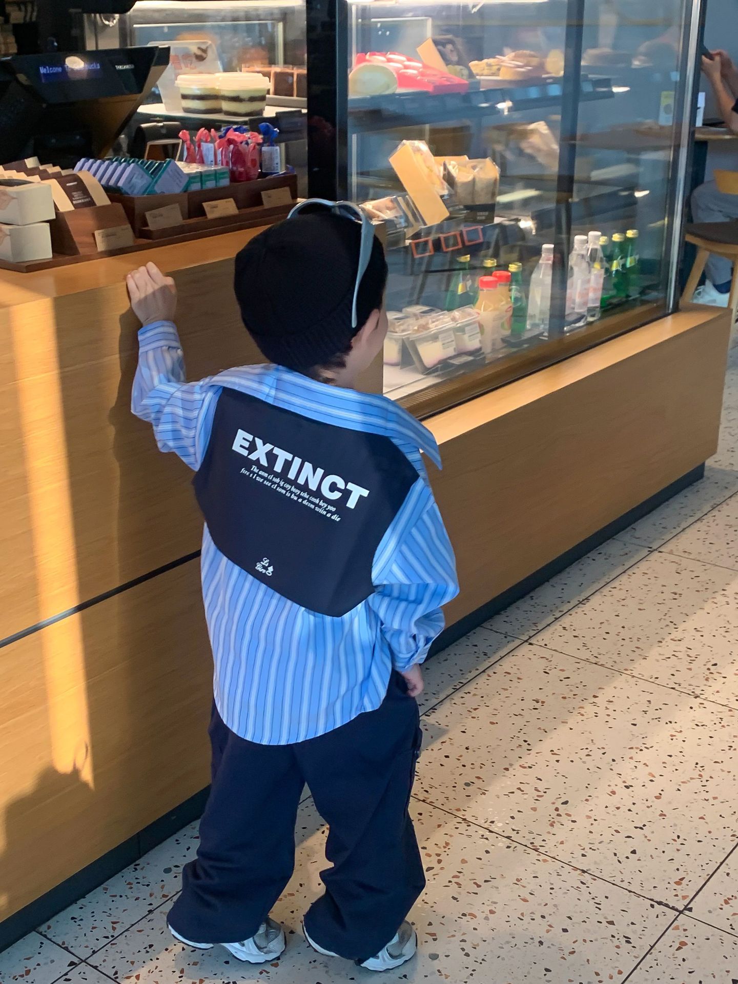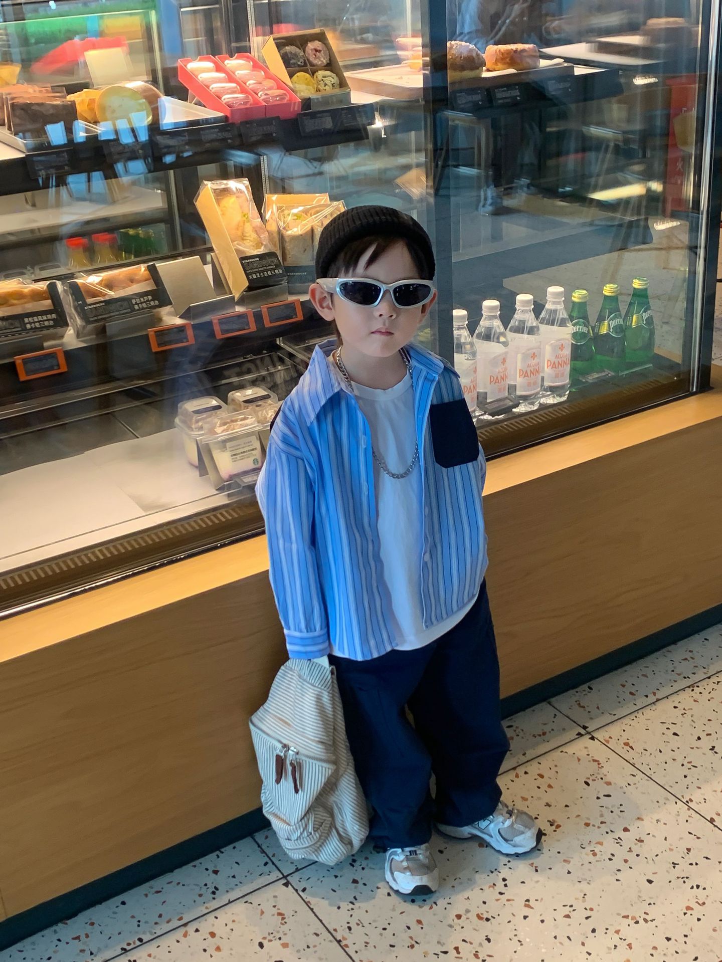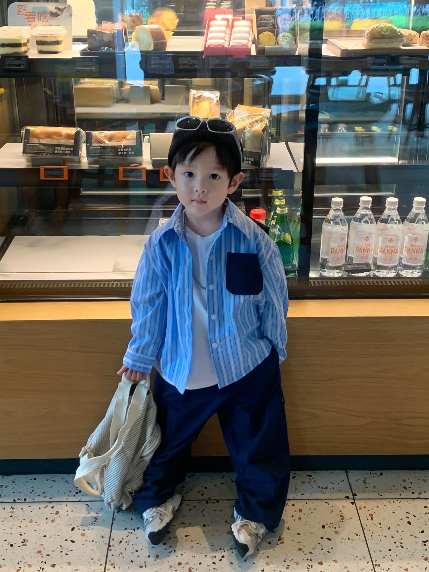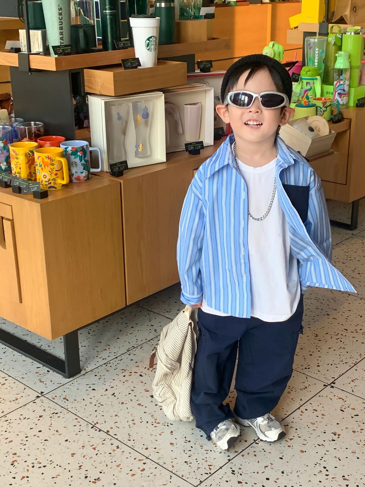 달콤하고 신 봄 새로운 한국 스타일 남녀 작업복 스타일 셔츠 형제 자매 의류 줄무늬 가짜 투피스 셔츠스토어 가기