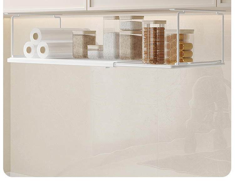 캐비닛 개폐식 조미료 플라스틱 랩 보관 바구니 아래에 주방 보관 랙을 걸고있는 캐비닛 교수형 랙 아래
