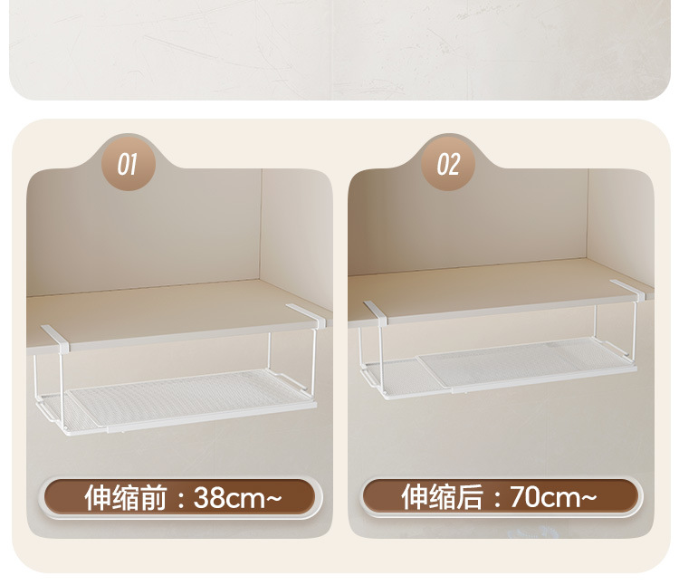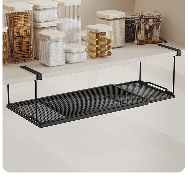 캐비닛 개폐식 조미료 플라스틱 랩 보관 바구니 아래에 주방 보관 랙을 걸고있는 캐비닛 교수형 랙 아래스토어 가기