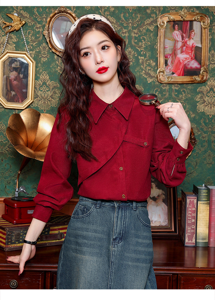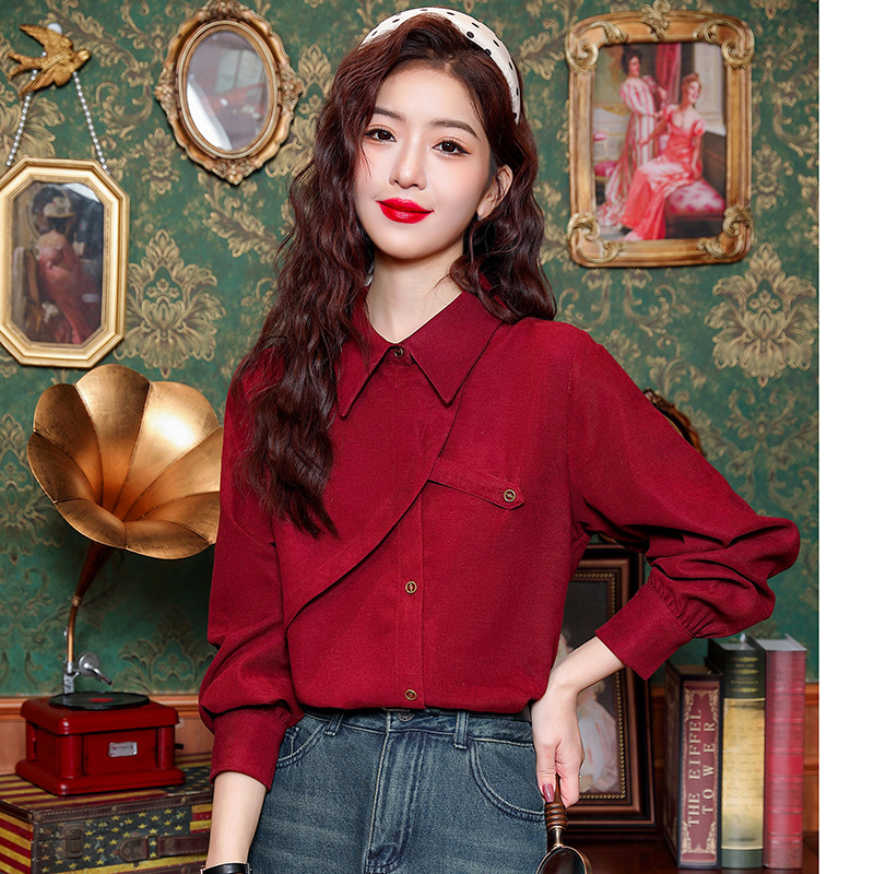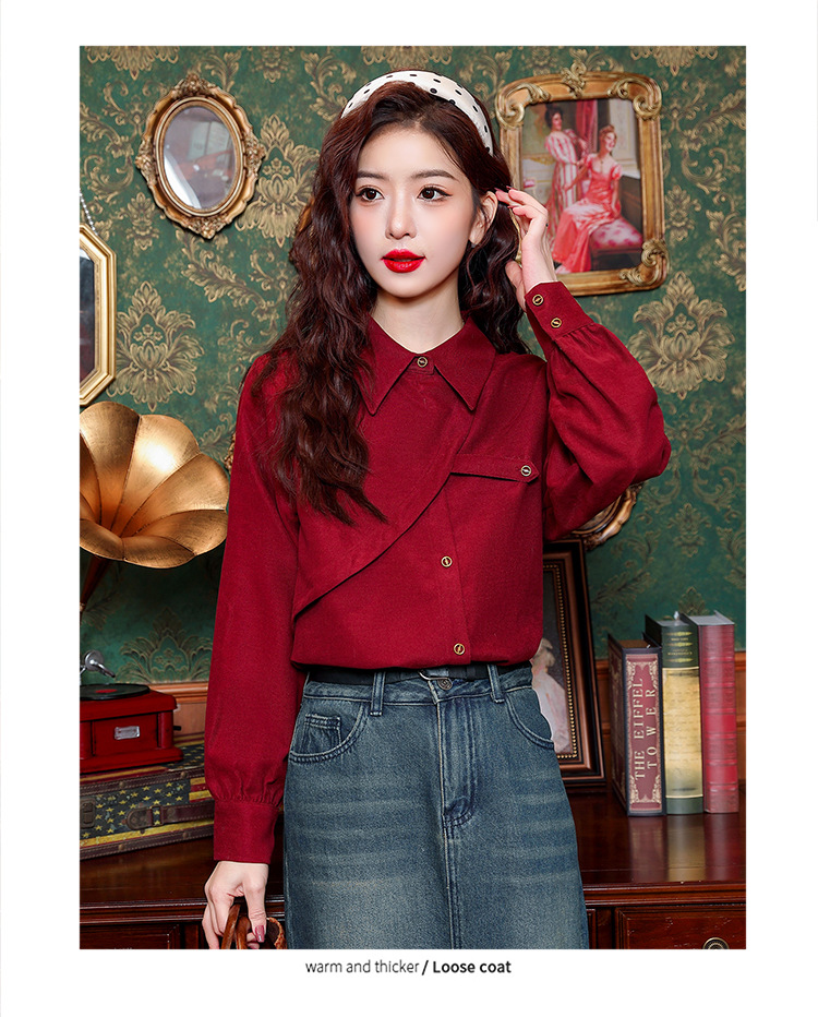 봄 긴팔 셔츠 여성 봄 의류 2025 불규칙한 기모 탑 여성 셔츠 2025 패션 기질스토어 가기