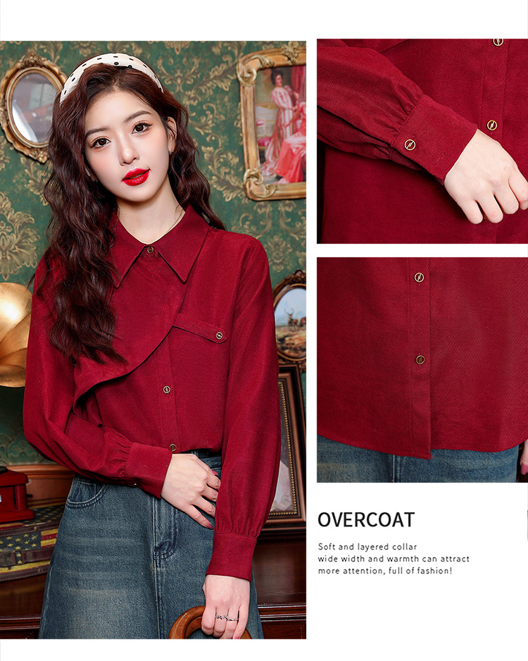 봄 긴팔 셔츠 여성 봄 의류 2025 불규칙한 기모 탑 여성 셔츠 2025 패션 기질