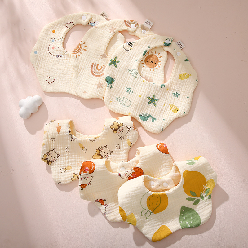 도매 유아 침 수건 6겹 순면 거즈 부드러운 턱받이 조절 가능 360 ° 어린이 유아용 턱받이