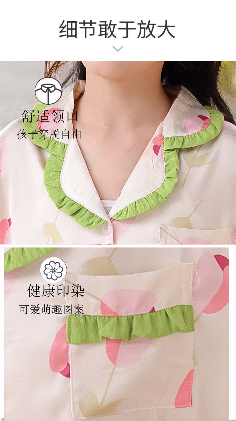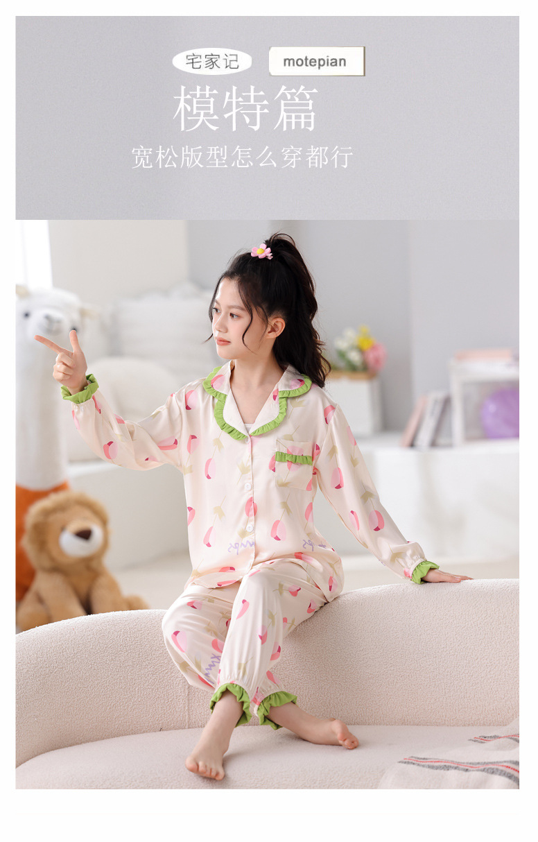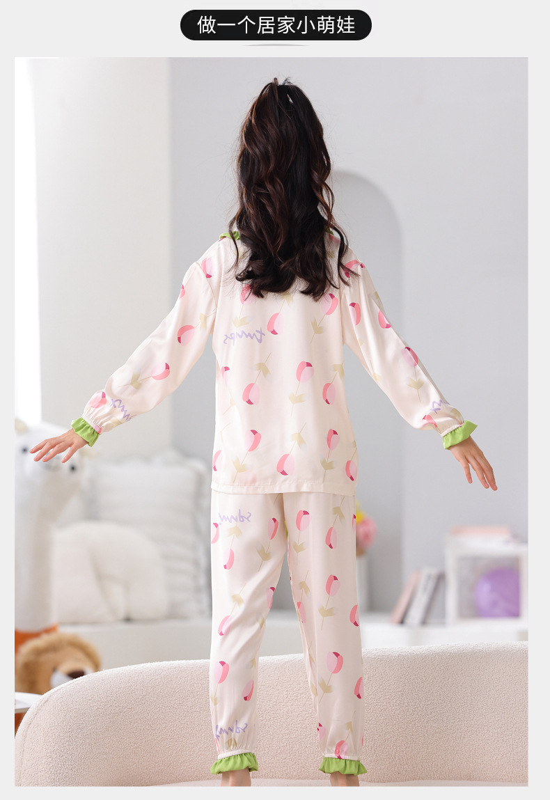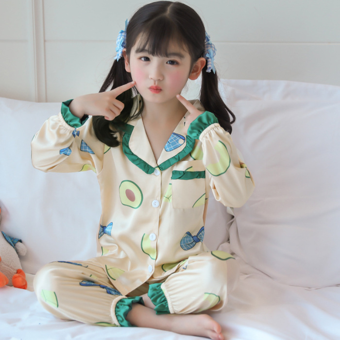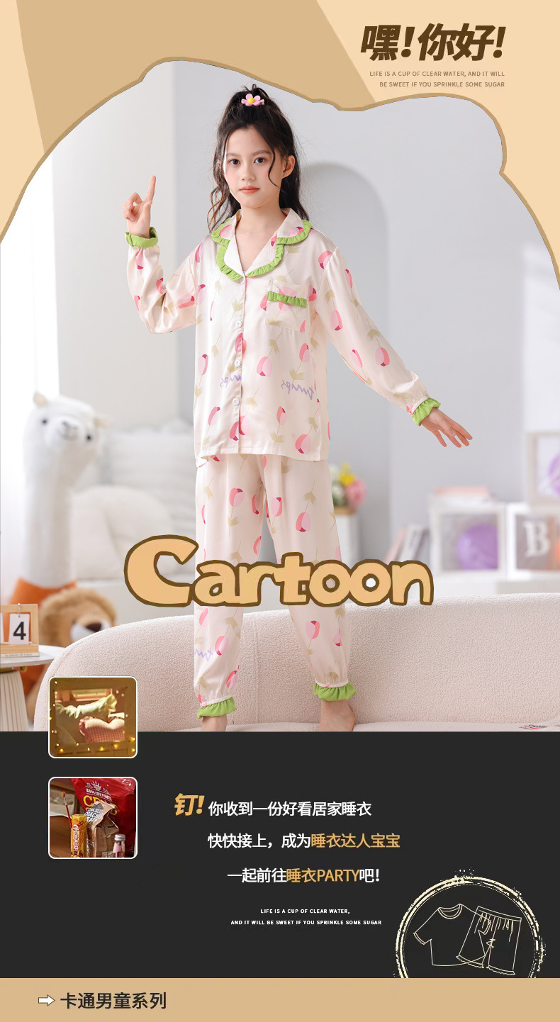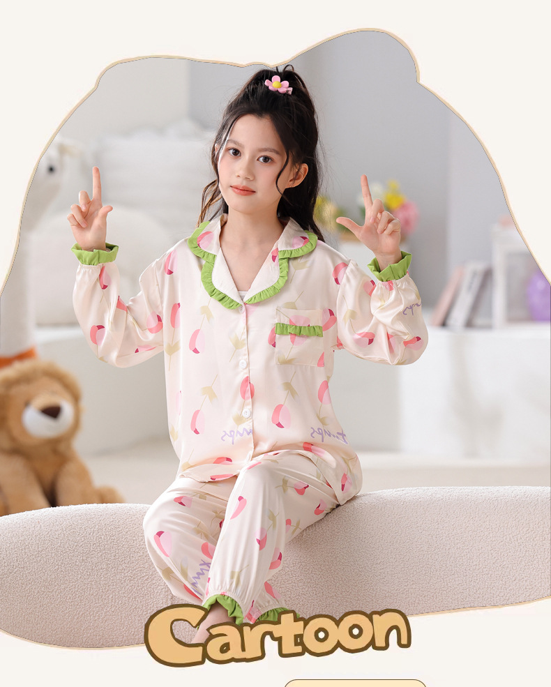 어린이 잠옷 봄과 가을 아이스 실크 소녀들의 귀여운 만화 긴팔 실크 부모-자식 서양식 어린이 홈웨어스토어 가기