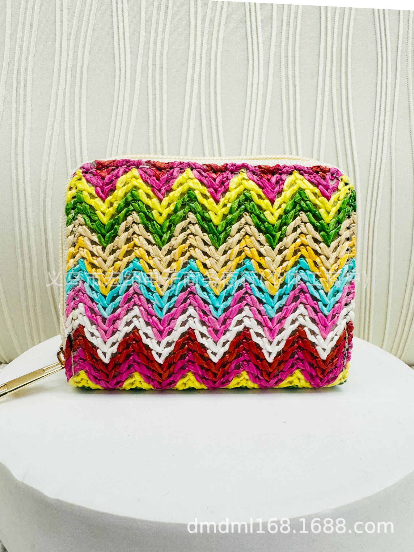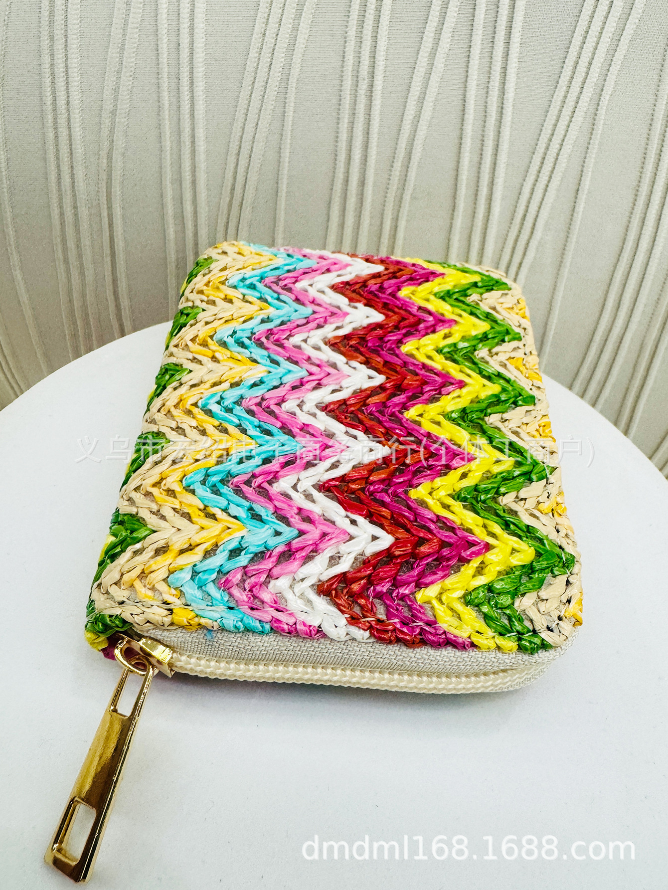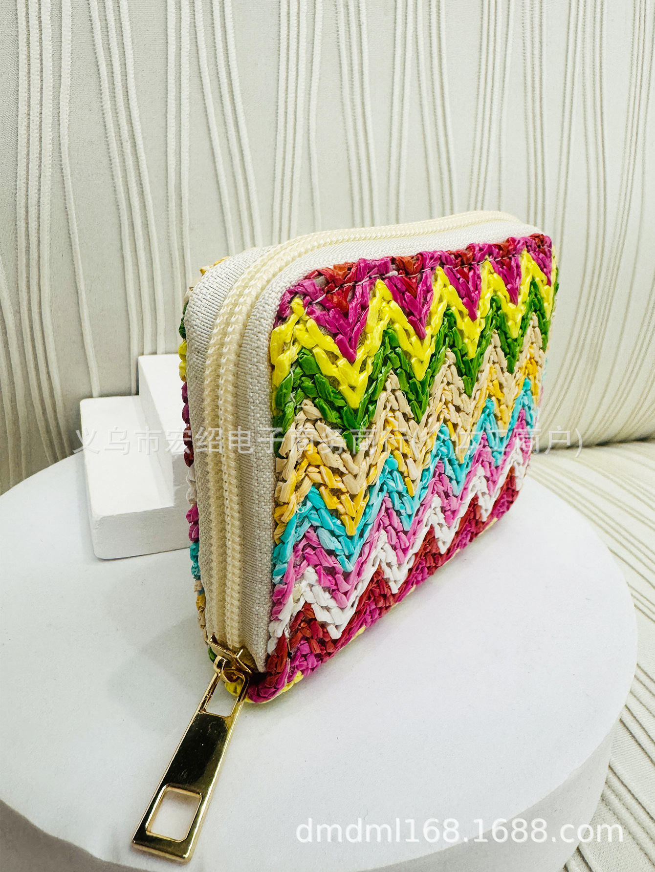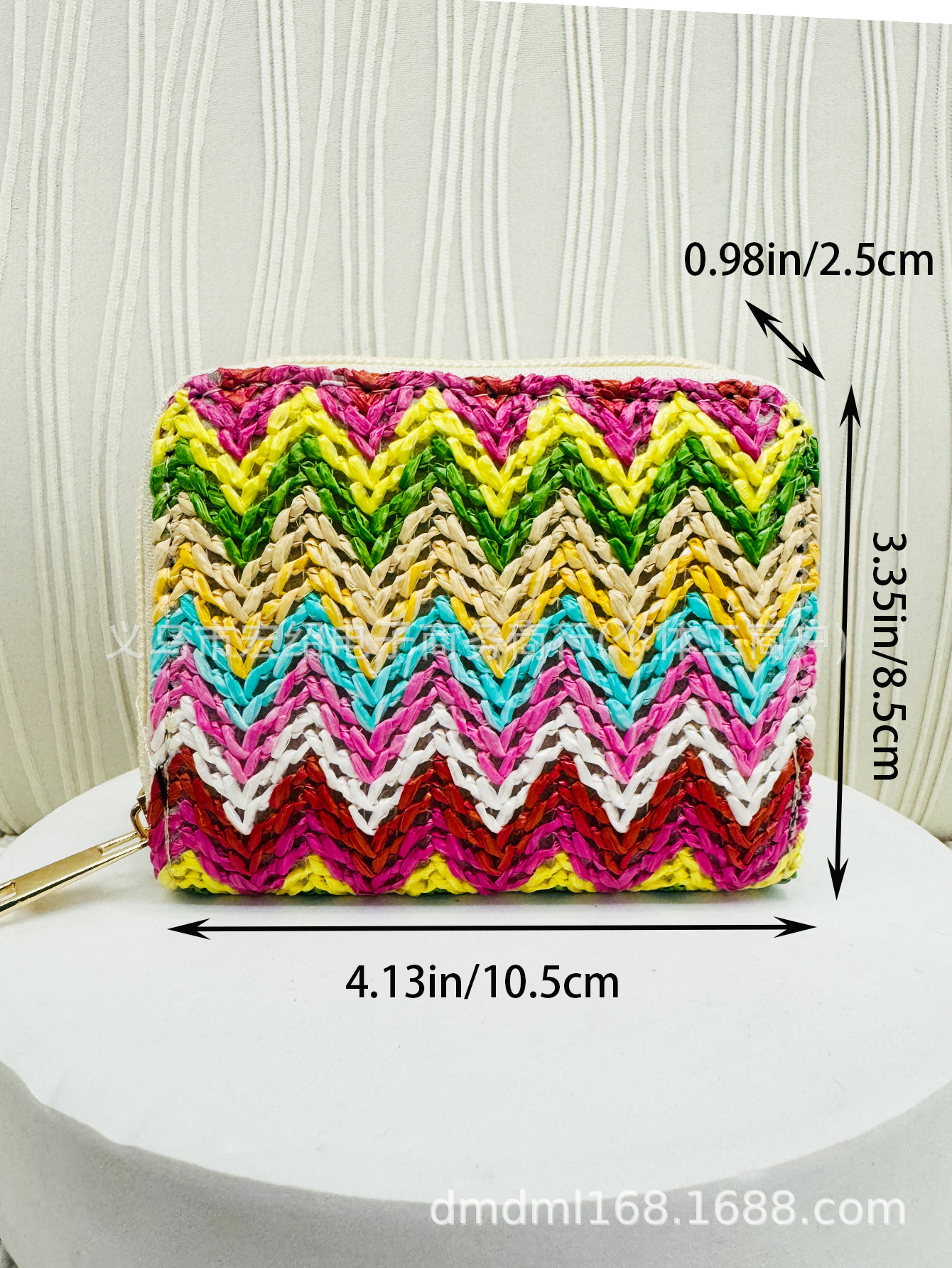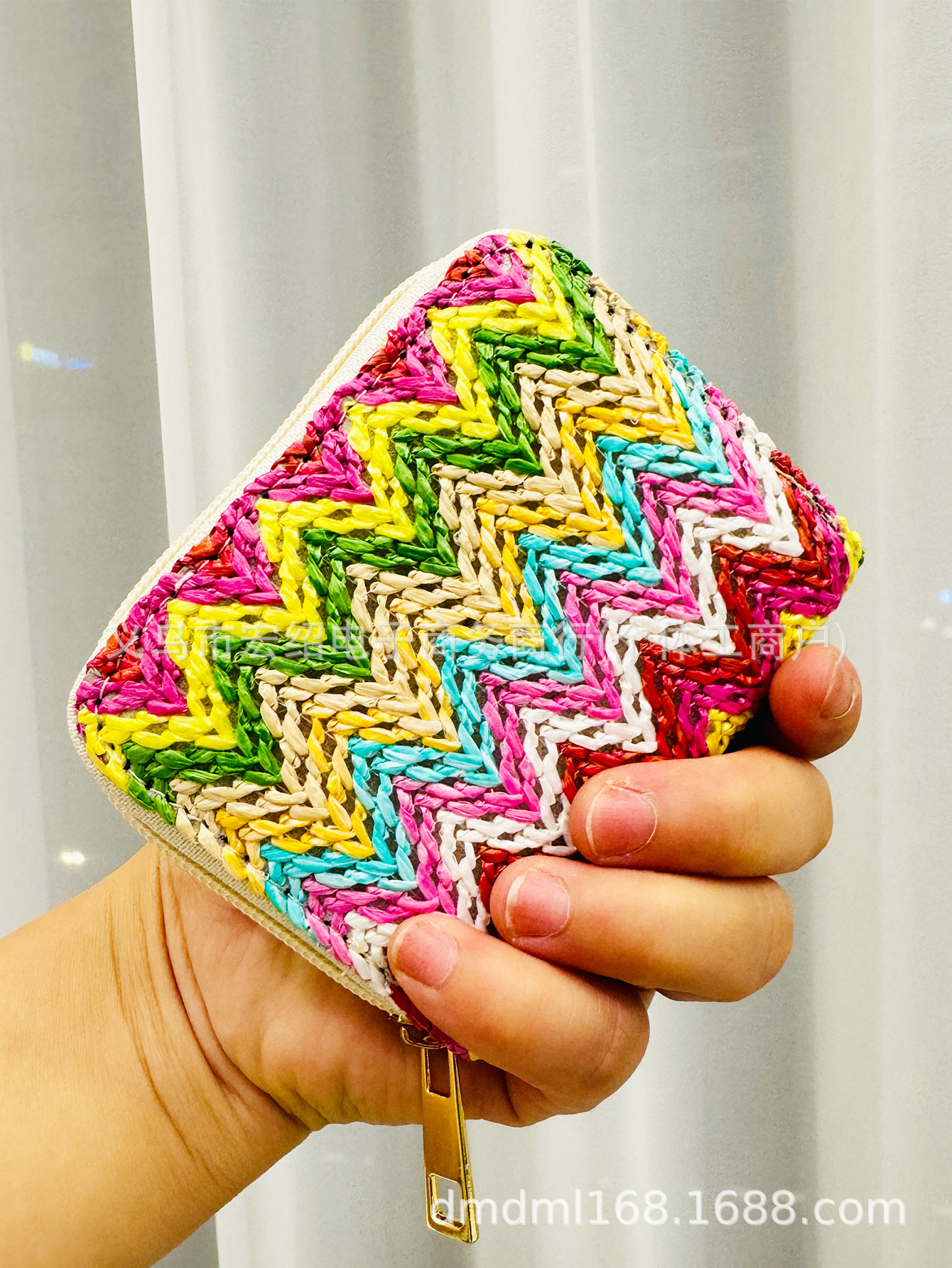 크로스보더 PP 풀짚 소재 미니 지갑 동전지갑 카드홀더 열쇠 미니 하트 지갑 크로스보더 인기상품 카드