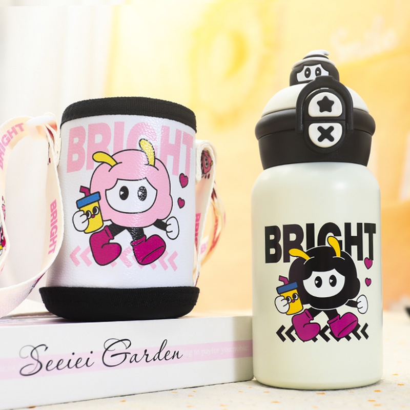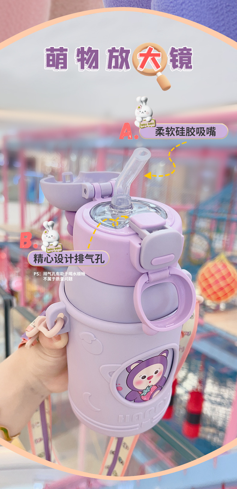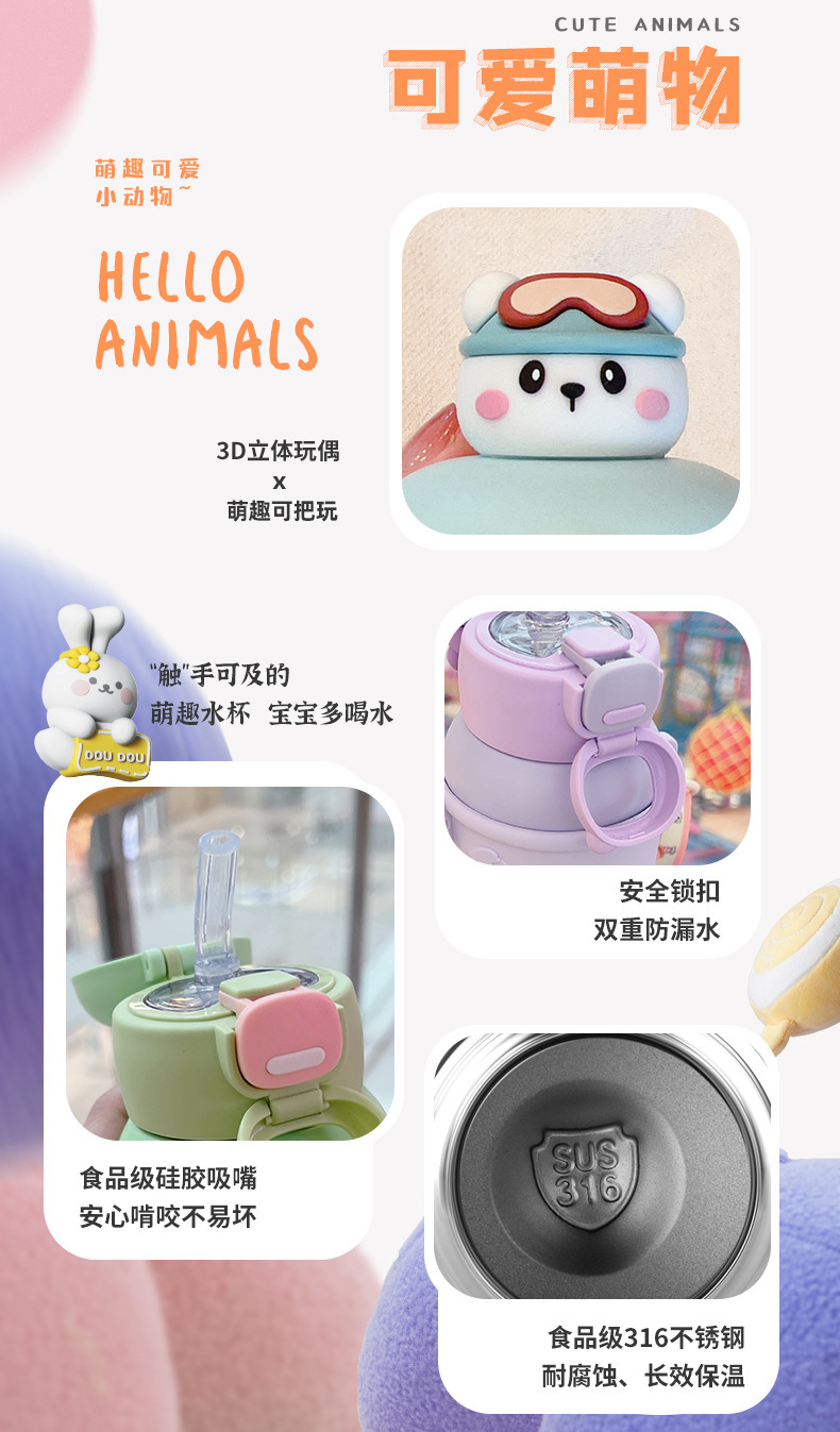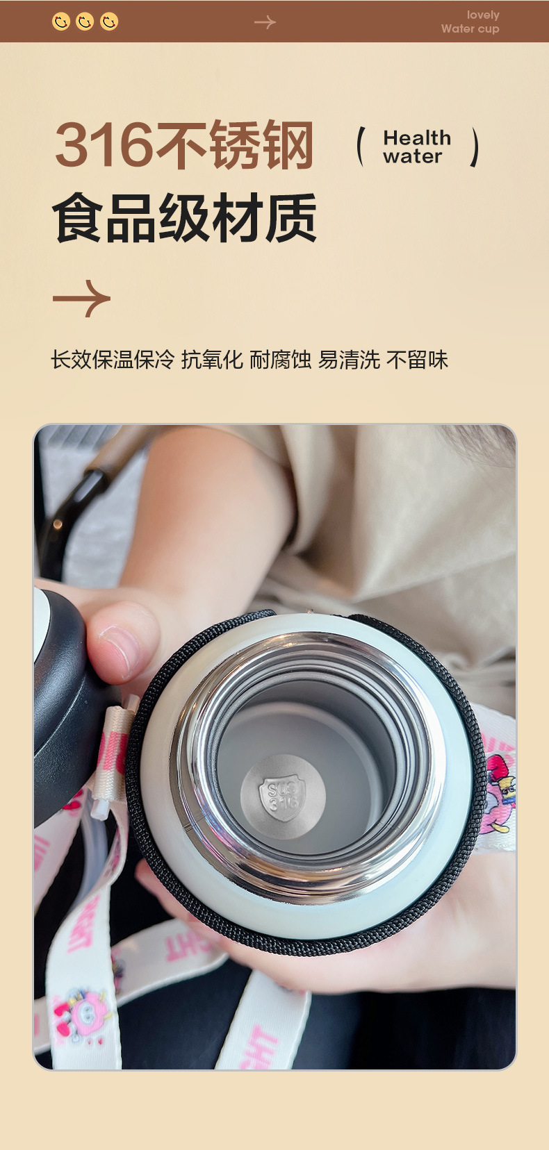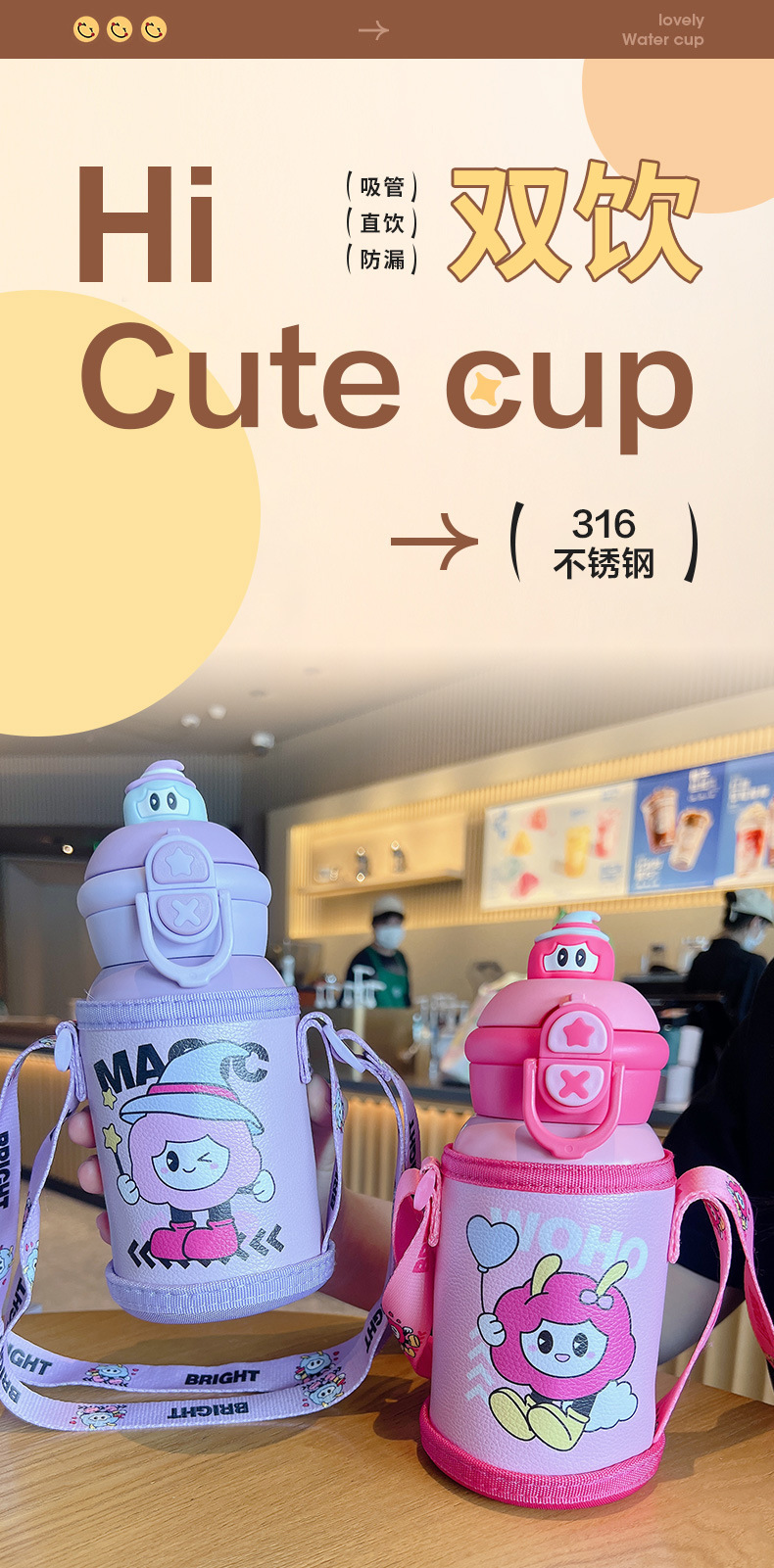 귀여운 재미 어린이 진공 컵 316 스테인레스 스틸 식품 학년 물 컵 만화 휴대용 학생 어린이 밀짚 컵