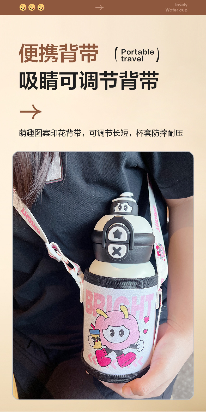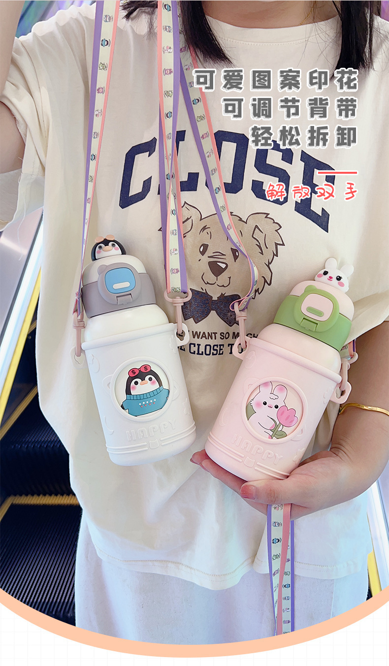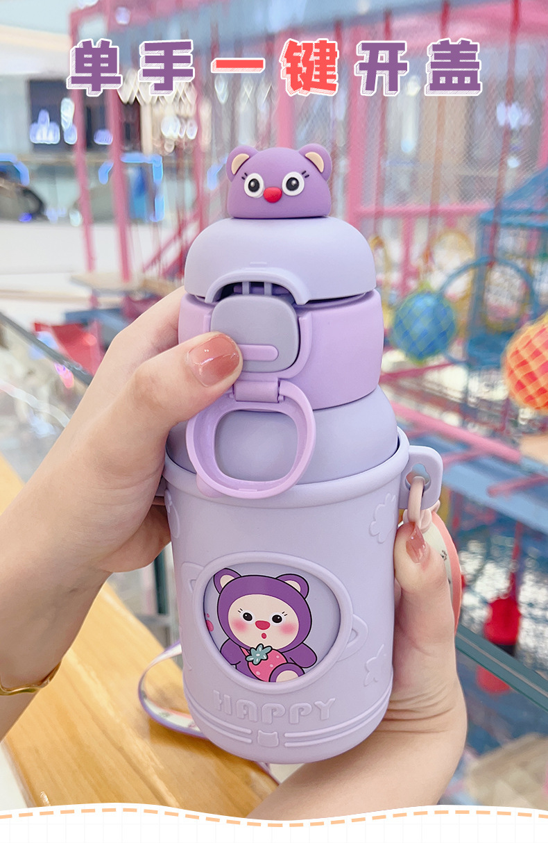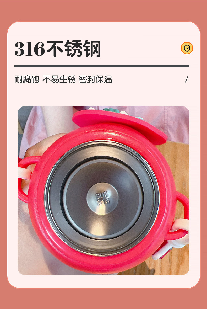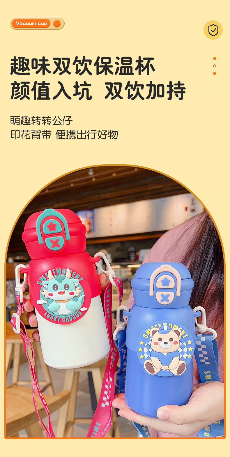 귀여운 재미 어린이 진공 컵 316 스테인레스 스틸 식품 학년 물 컵 만화 휴대용 학생 어린이 밀짚 컵