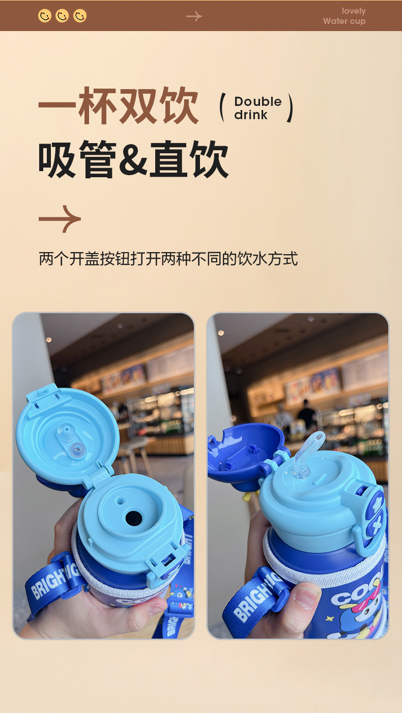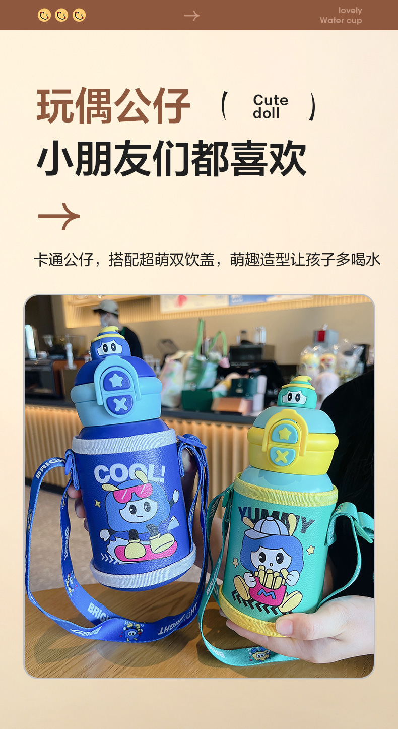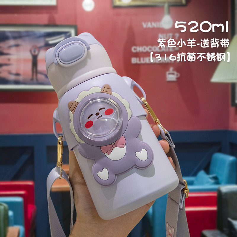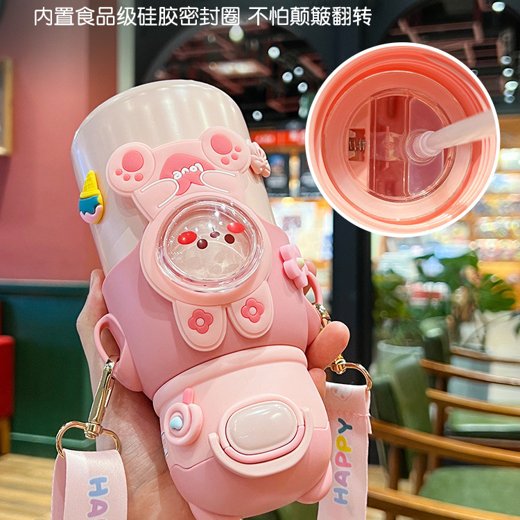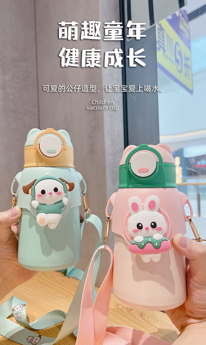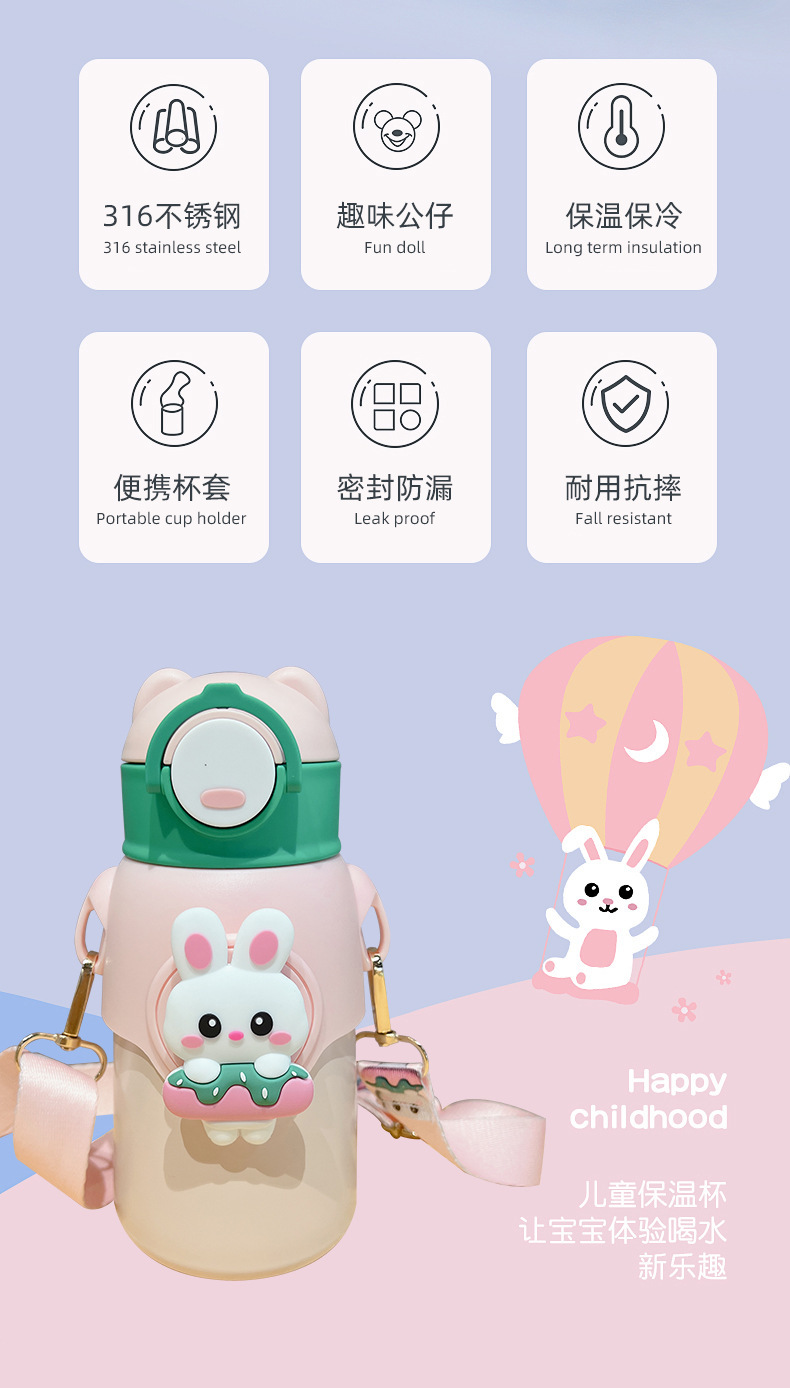 귀여운 재미 어린이 진공 컵 316 스테인레스 스틸 식품 학년 물 컵 만화 휴대용 학생 어린이 밀짚 컵