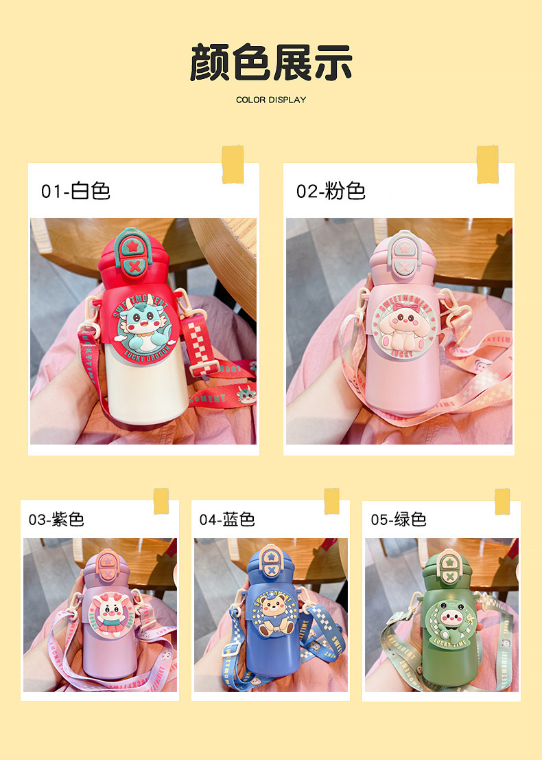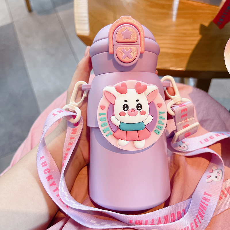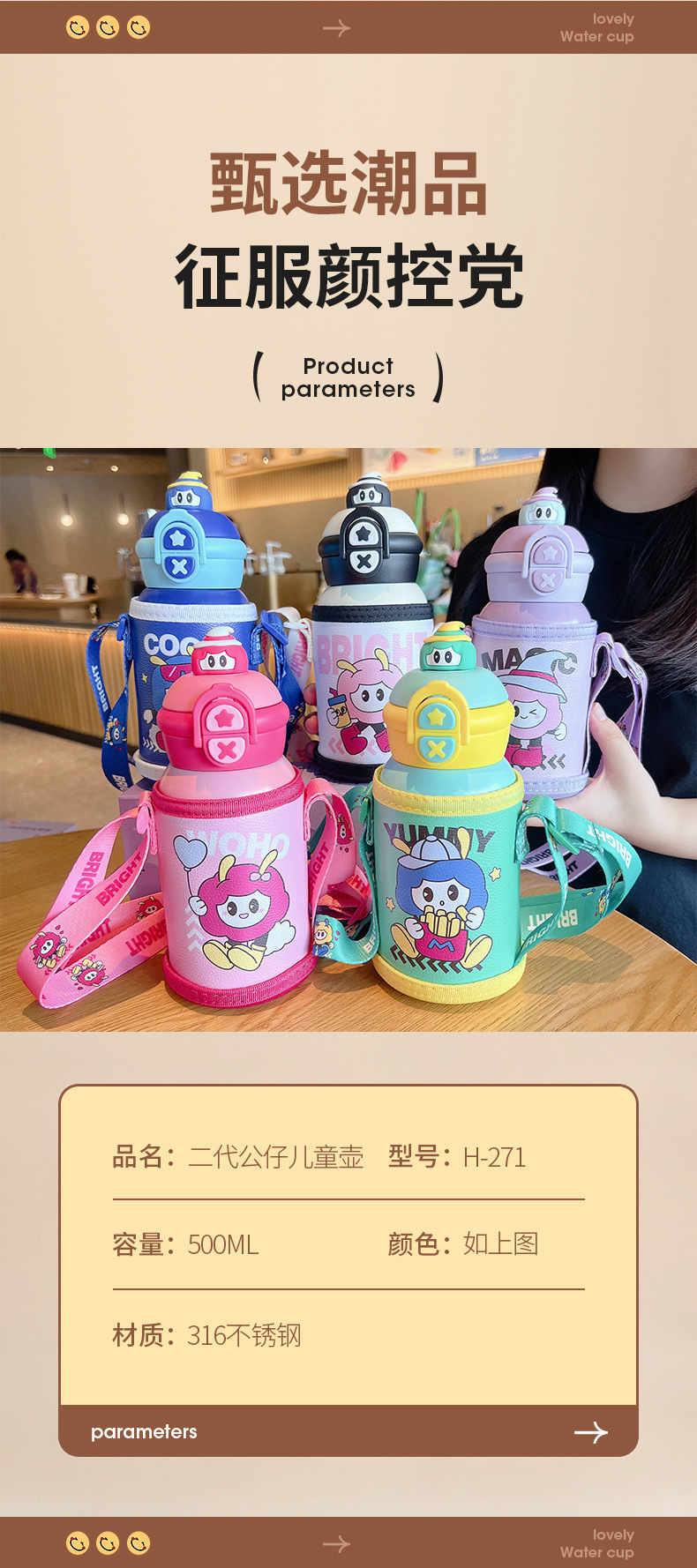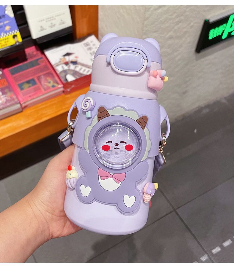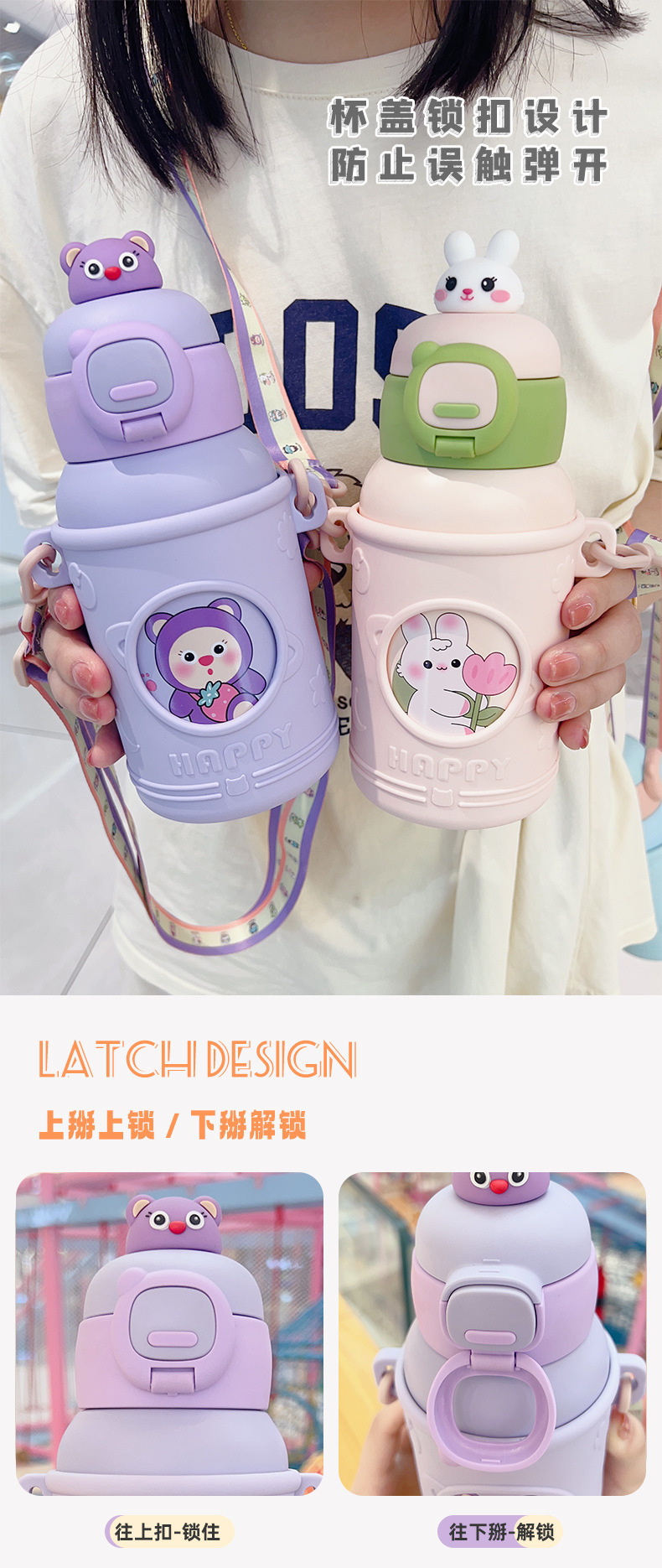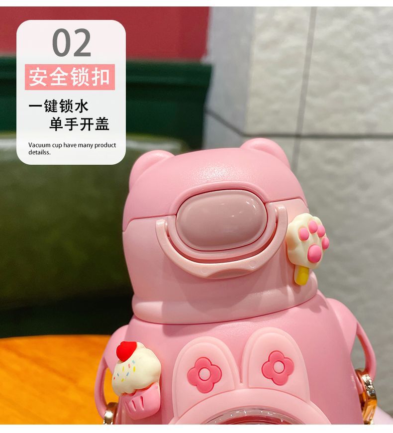 귀여운 재미 어린이 진공 컵 316 스테인레스 스틸 식품 학년 물 컵 만화 휴대용 학생 어린이 밀짚 컵